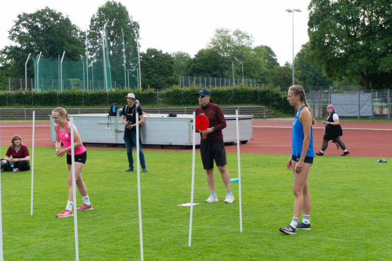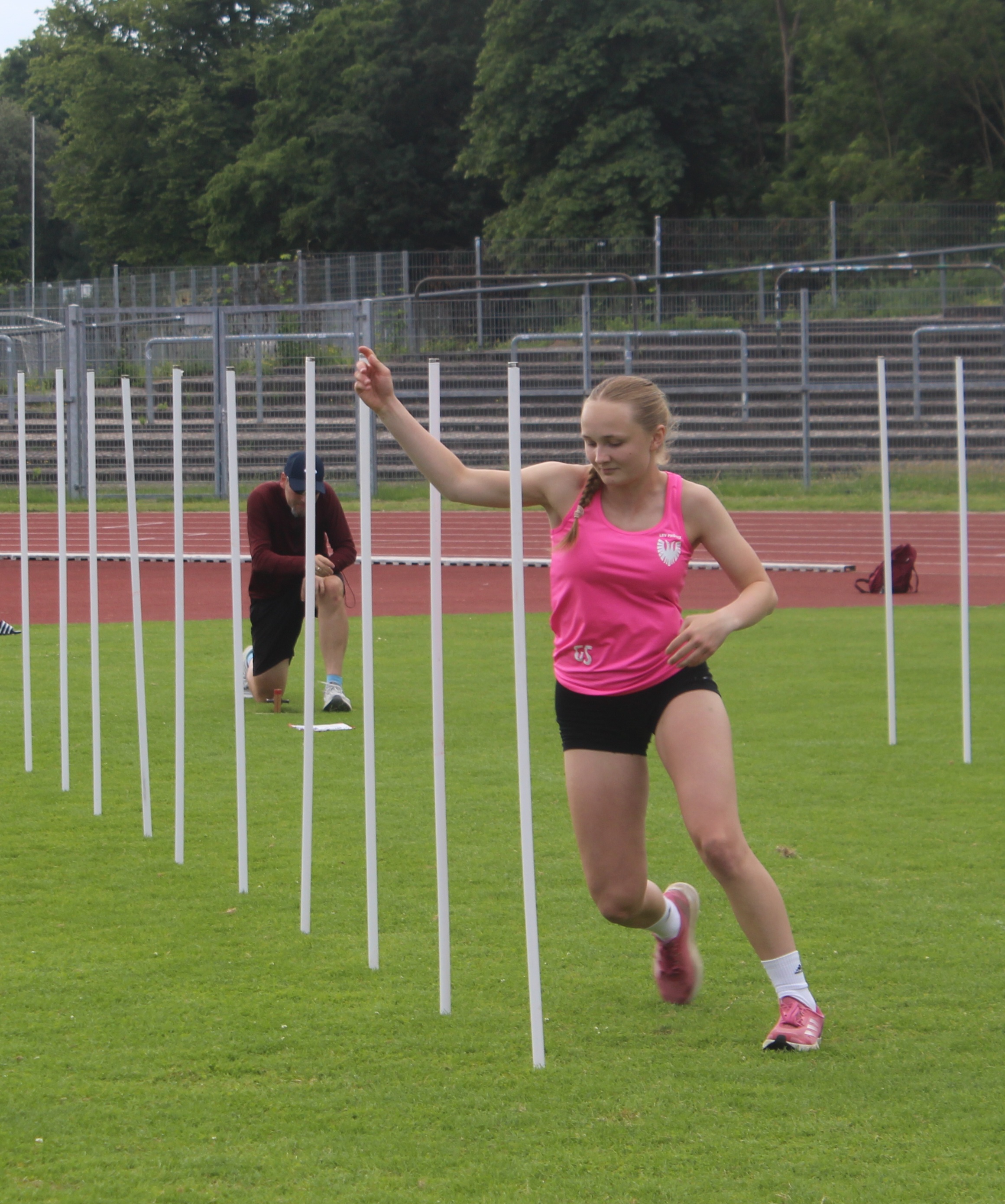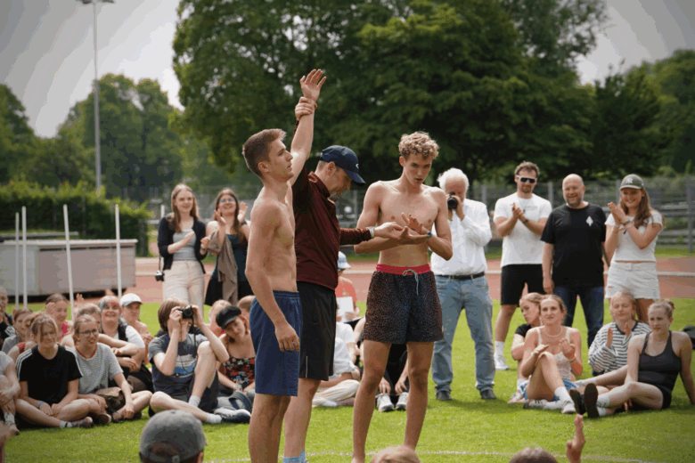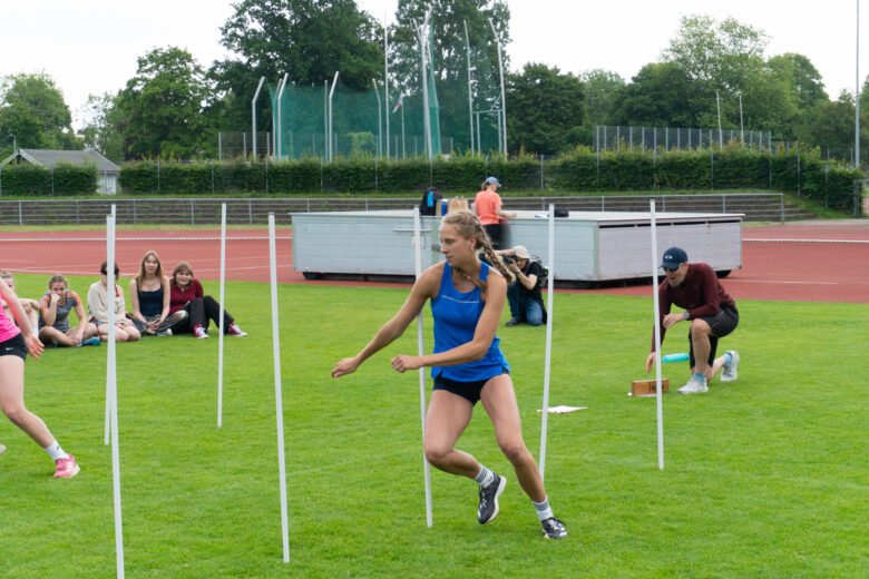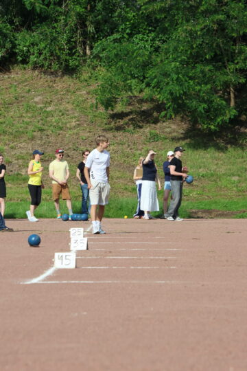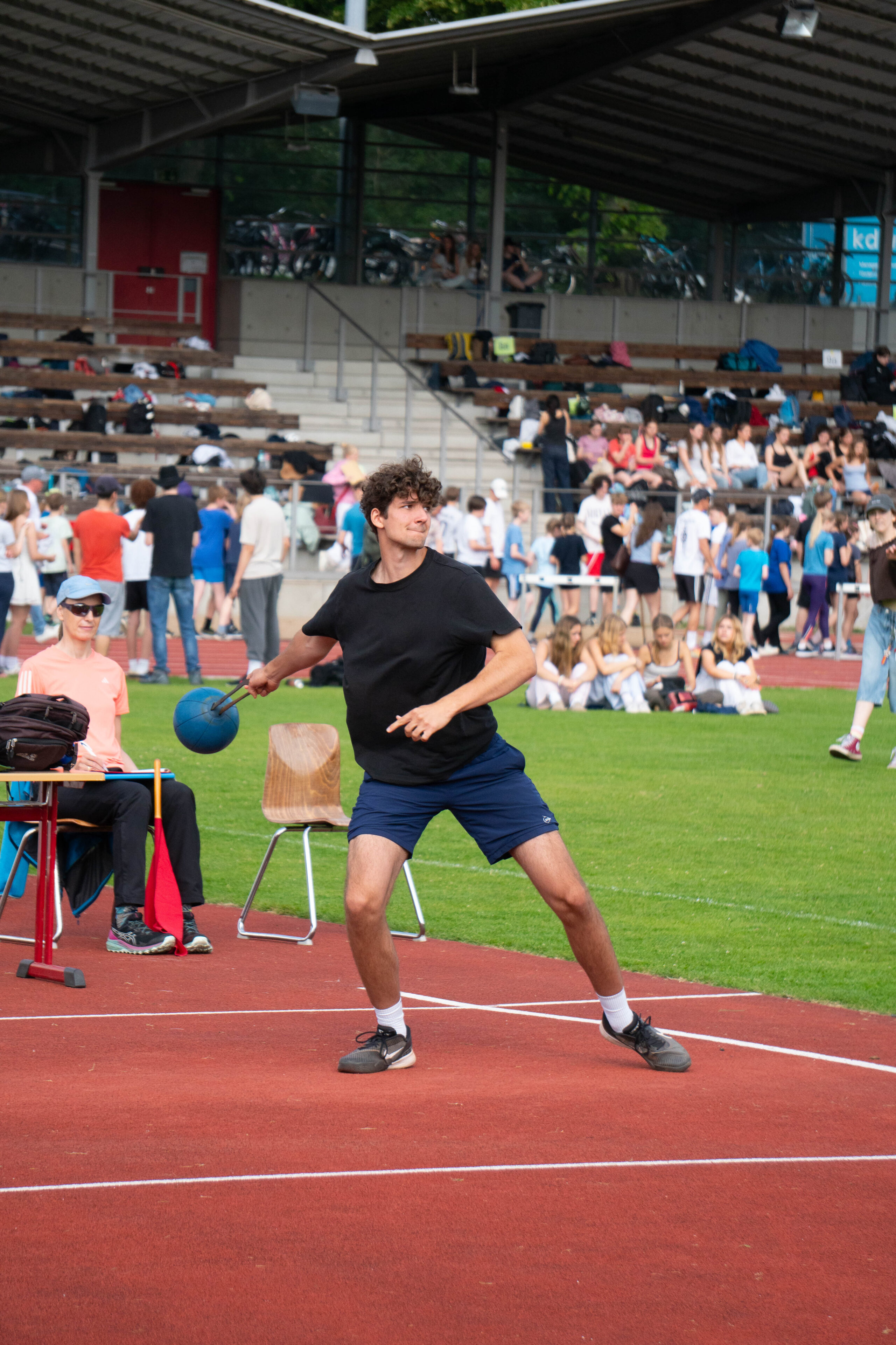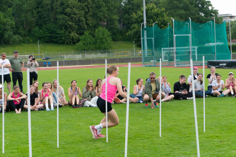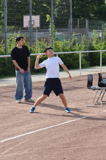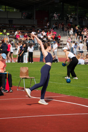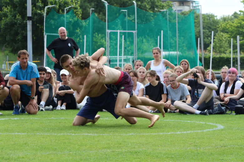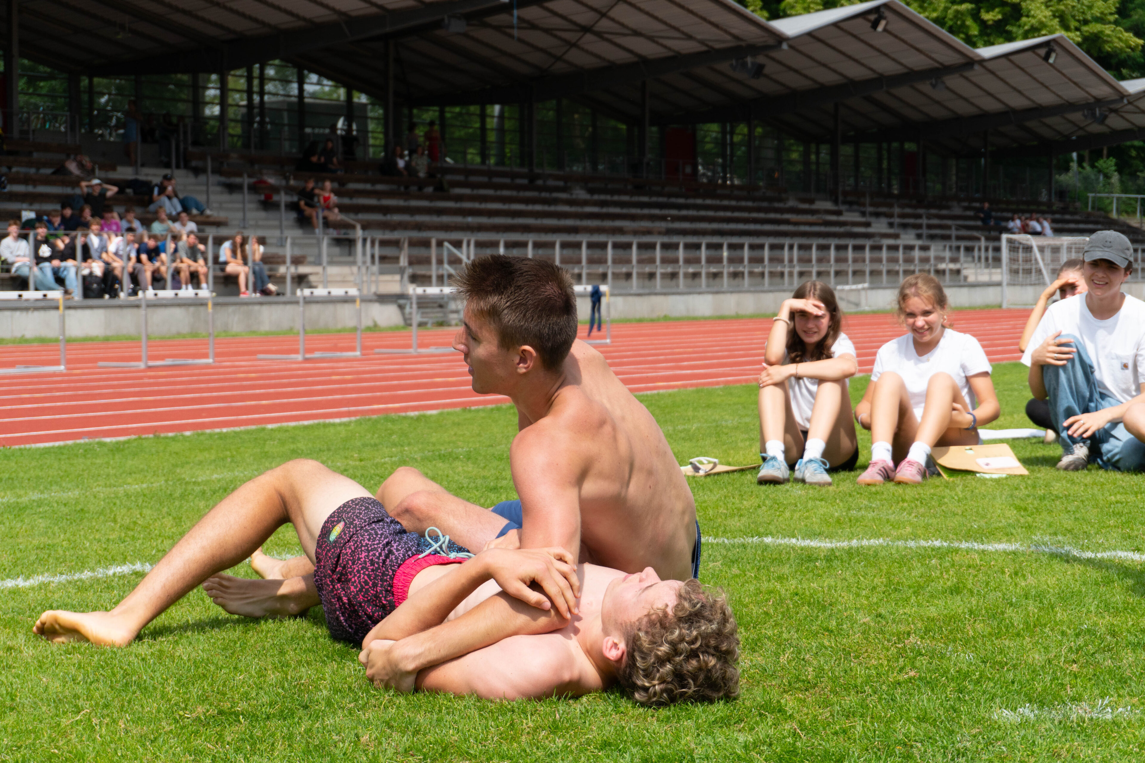 Parallel fand für die Oberstufe ein besonderes Highlight statt: der traditionelle Primaner-Fünfkampf. Die Teilnehmenden traten im Hochweitsprung, Schleuderball, Barfußlaufen und Sperrweitwurf gegeneinander an – bevor schließlich das Finale bei den Mädchen im Slalomlauf, bei den Jungen im Ringen ausgetragen wurde.