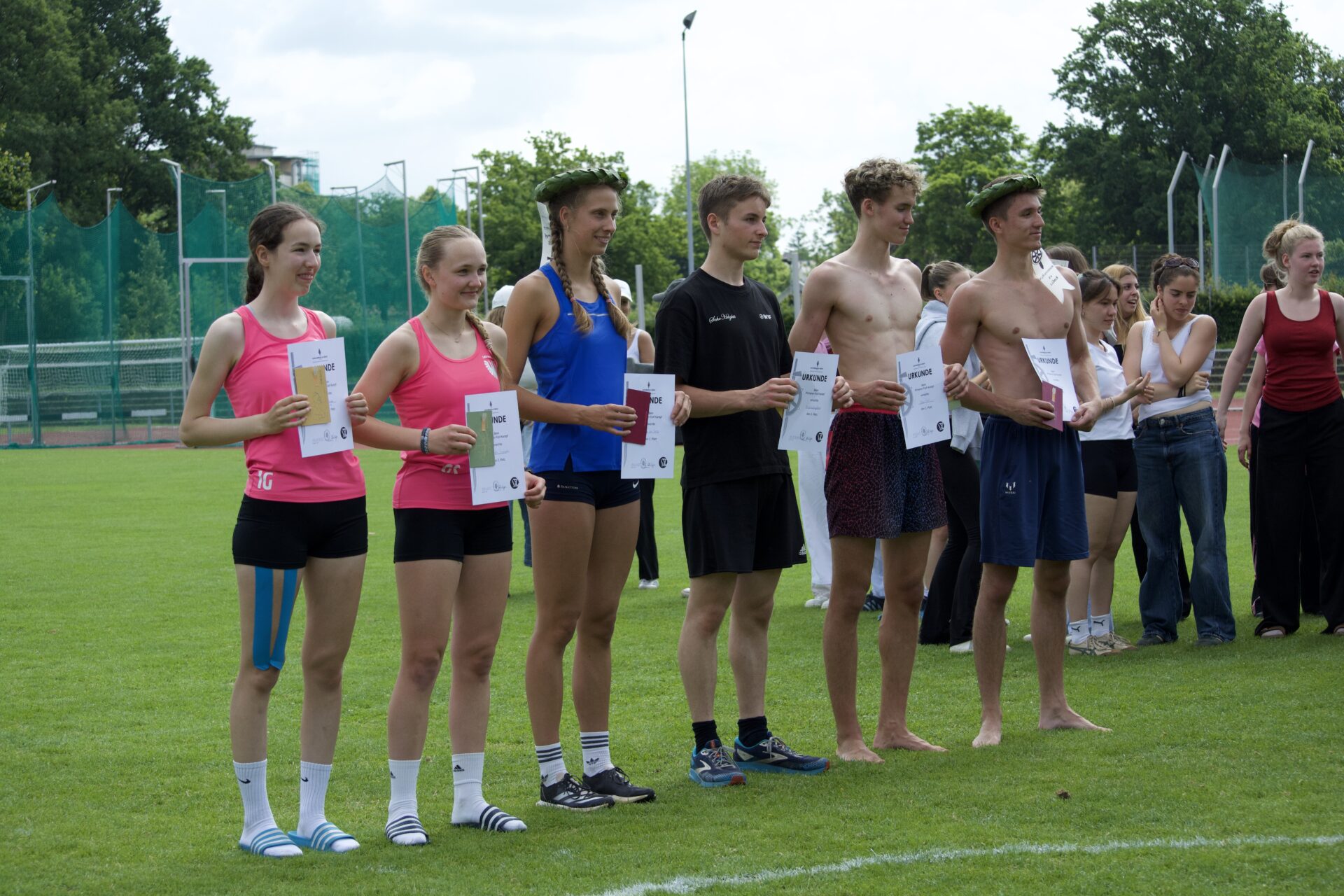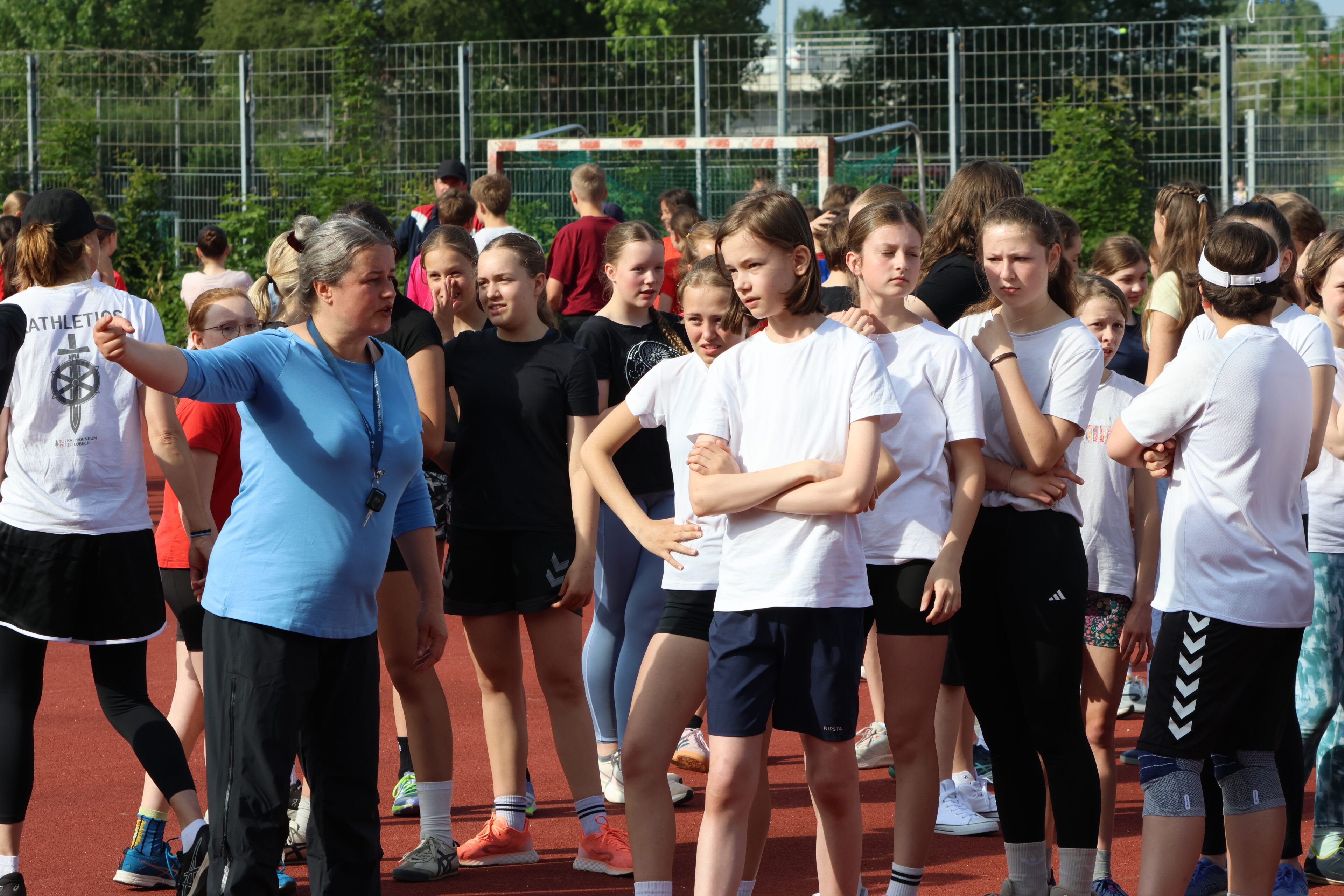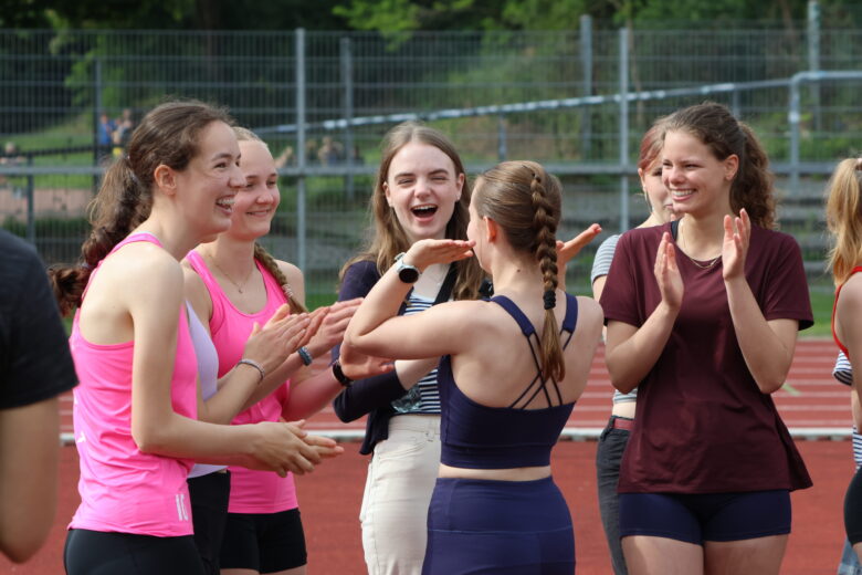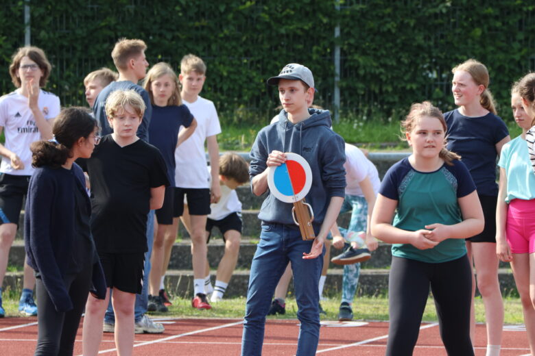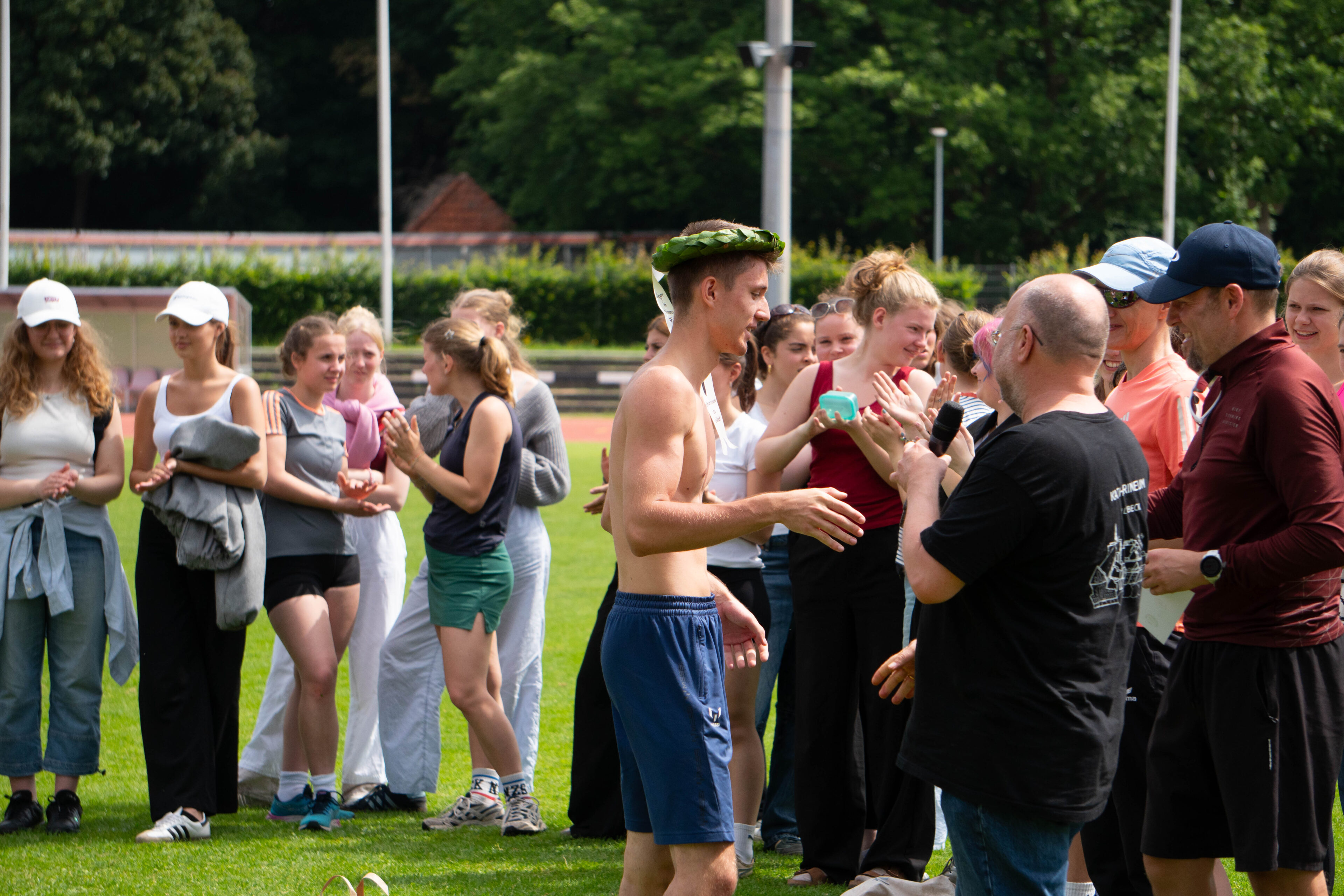 Ein großer Dank gilt allen Teilnehmenden für ihren sportlichen und fairen Ehrgeiz, dem E-Jahrgang und dem Lehrkörper, die die einzelnen Stationen betreut und die Riegen begleitet haben, unseren Schulsanitäter:innen, die die kleineren und größeren Wehwehchen so professionell betreut haben, und besonders der Sportfachschaft unter der Leitung von Frau Dreiling für die Organisation dieses tollen Tages.