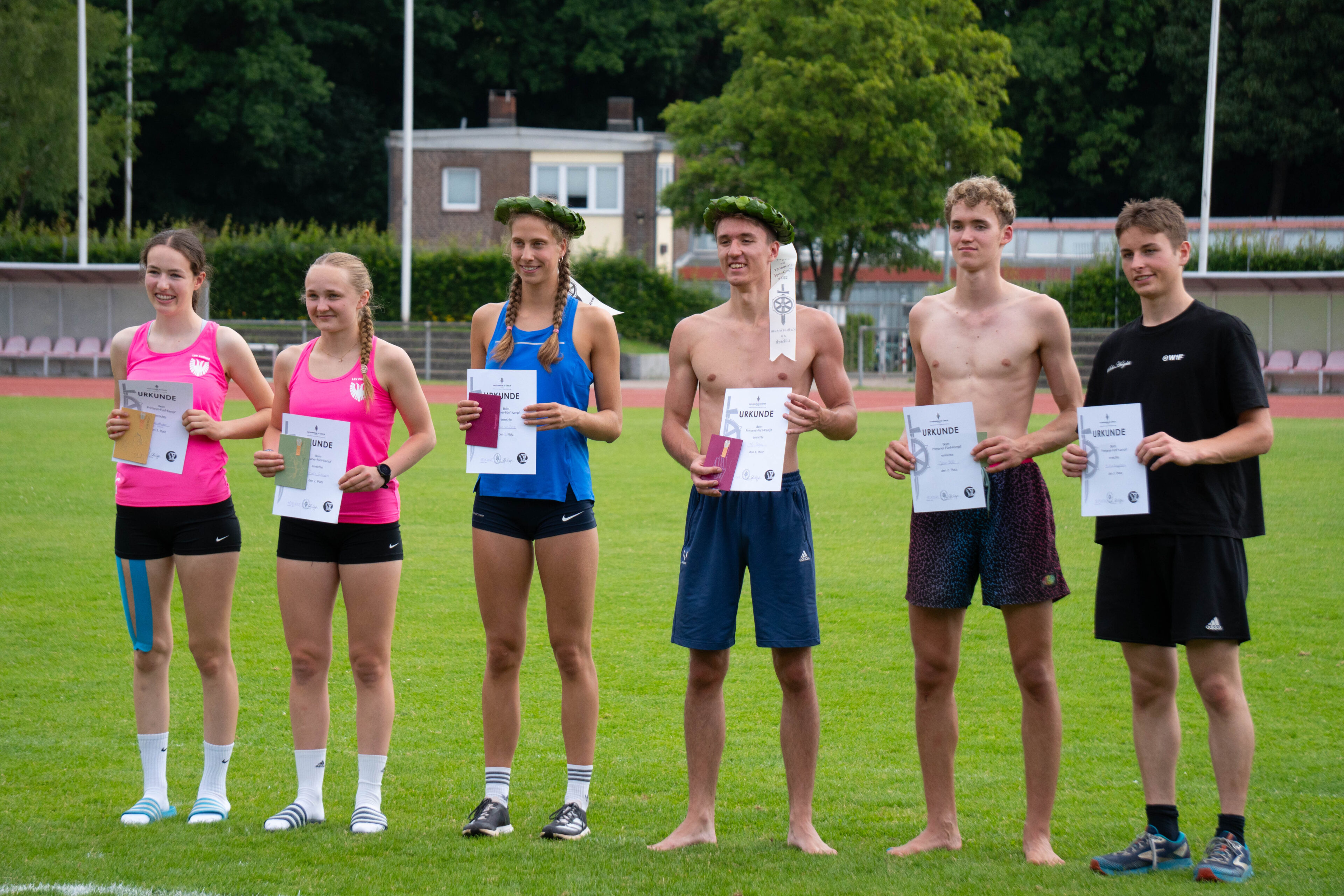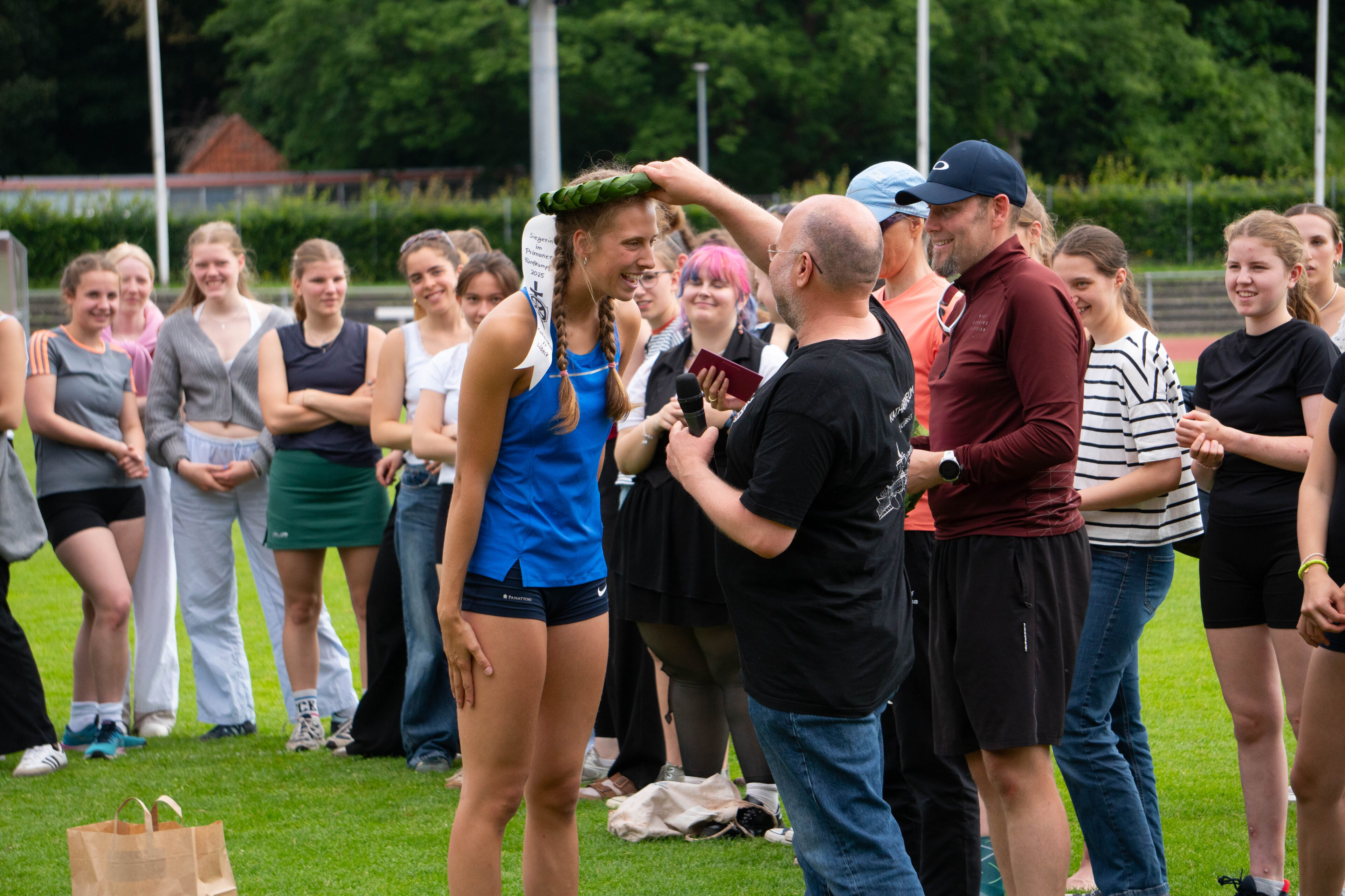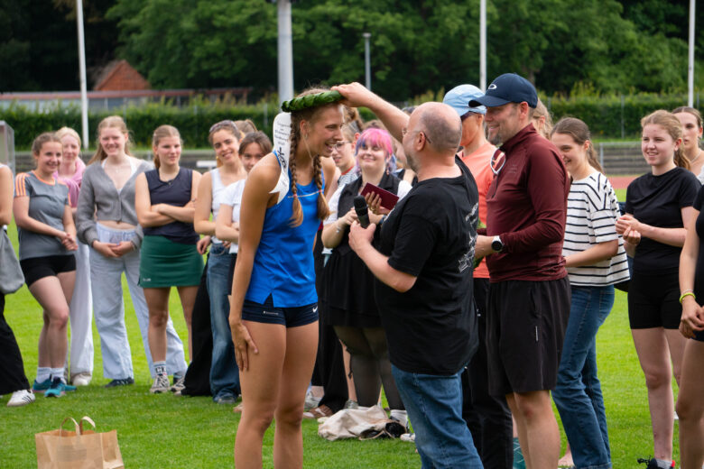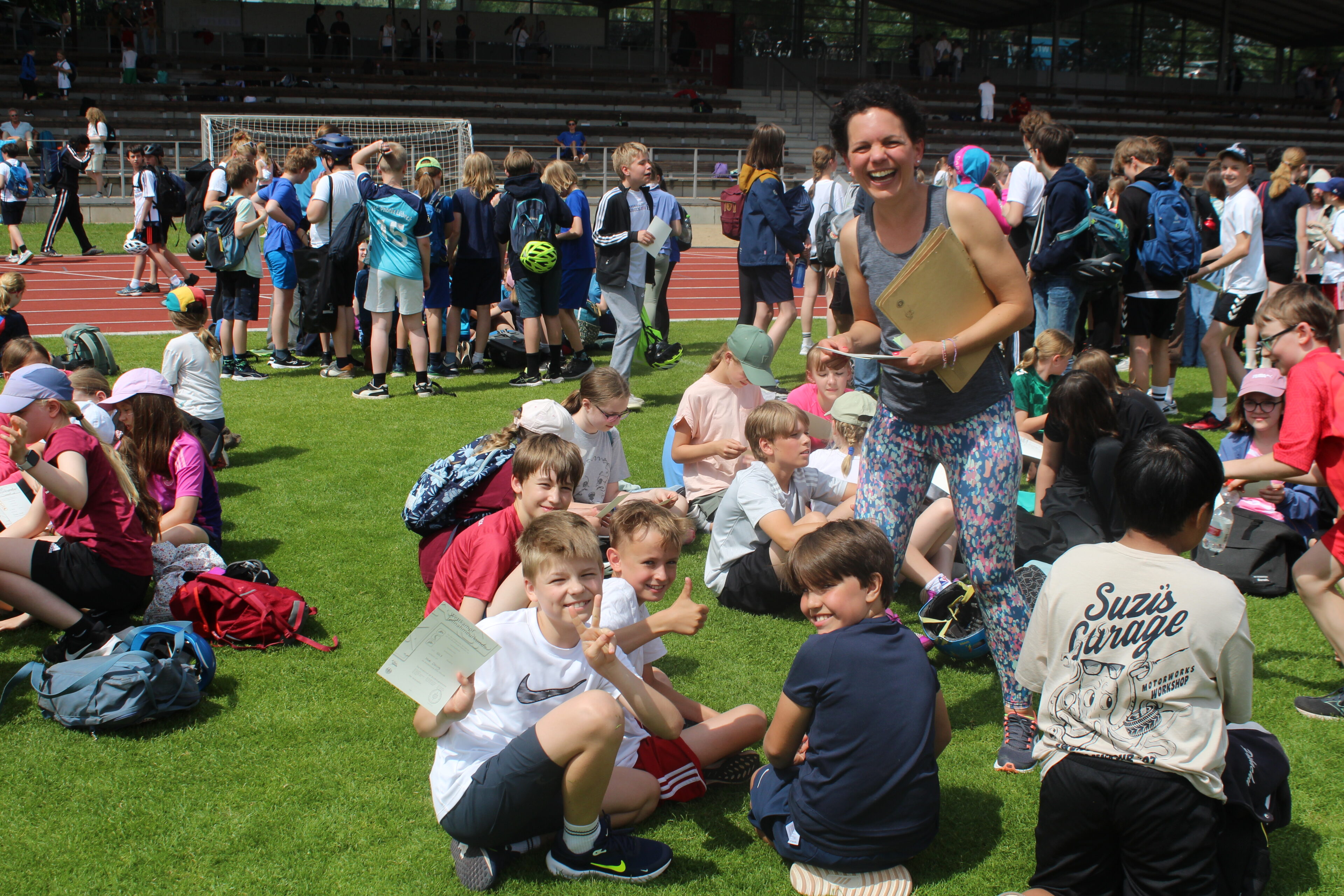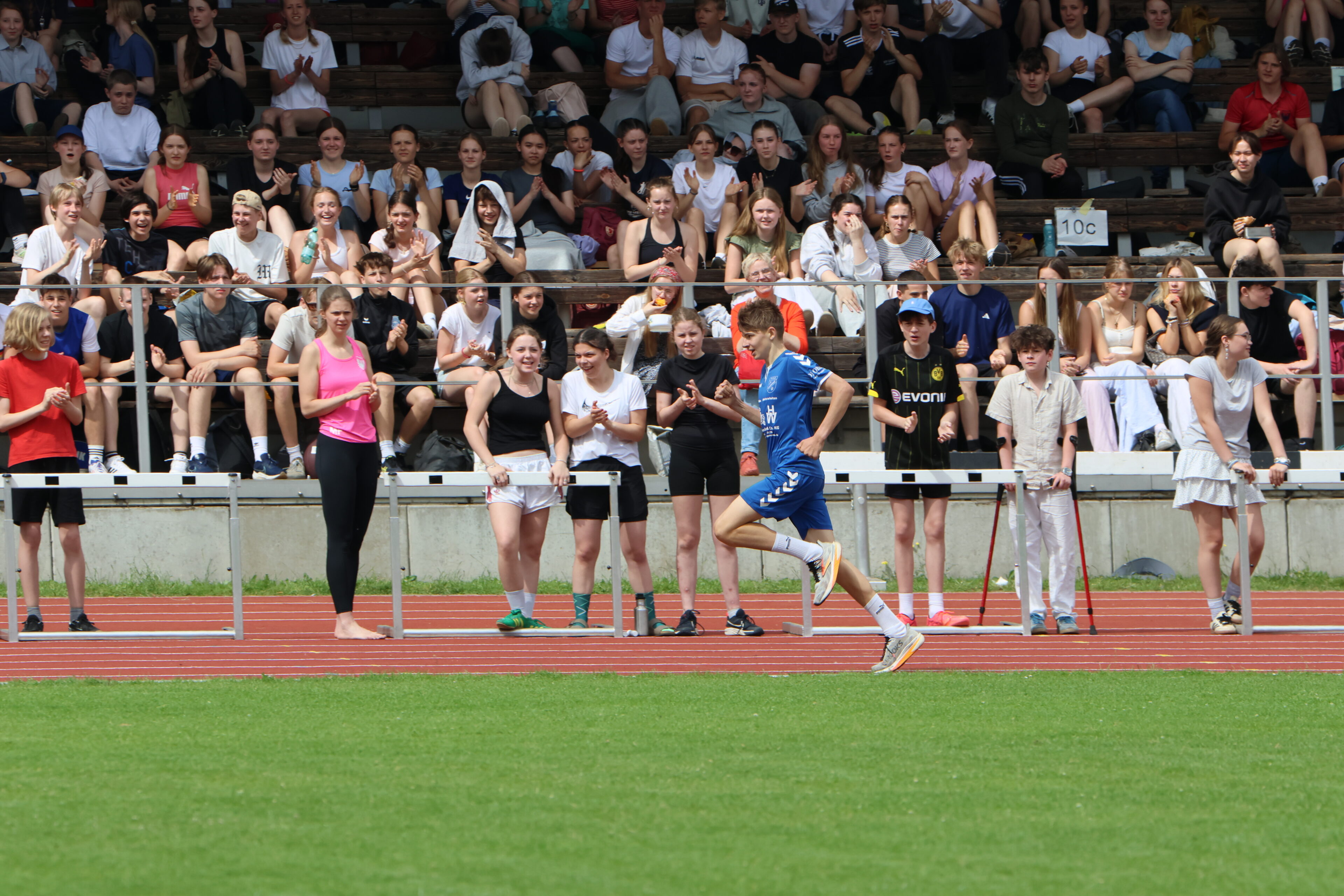 Ein großer Dank gilt allen Teilnehmenden für ihren sportlichen und fairen Ehrgeiz, dem E-Jahrgang und dem Lehrkörper, die die einzelnen Stationen betreut und die Riegen begleitet haben, unseren Schulsanitäter:innen, die die kleineren und größeren Wehwehchen so professionell betreut haben, und besonders der Sportfachschaft unter der Leitung von Frau Dreiling für die Organisation dieses tollen Tages.