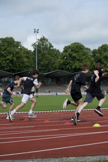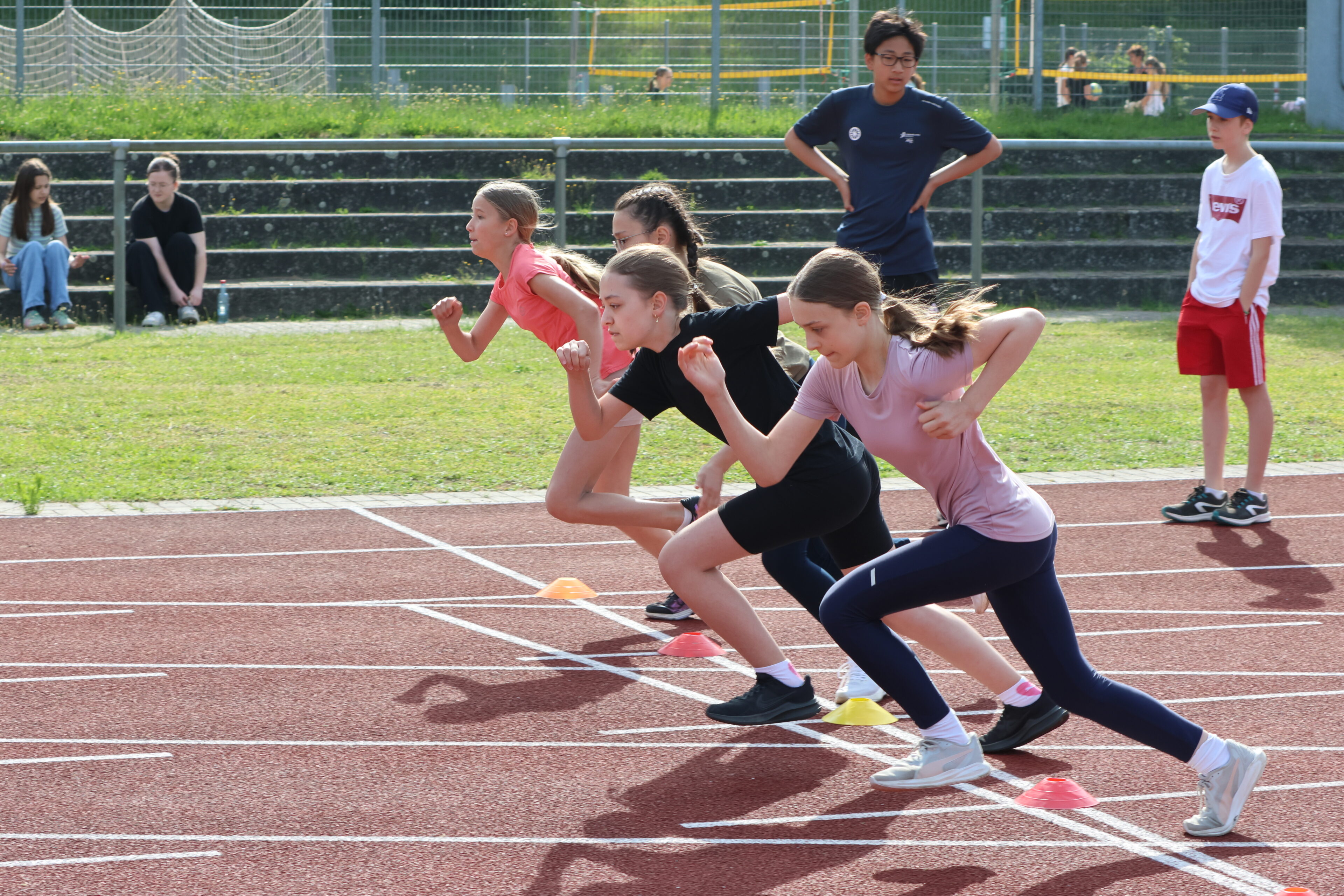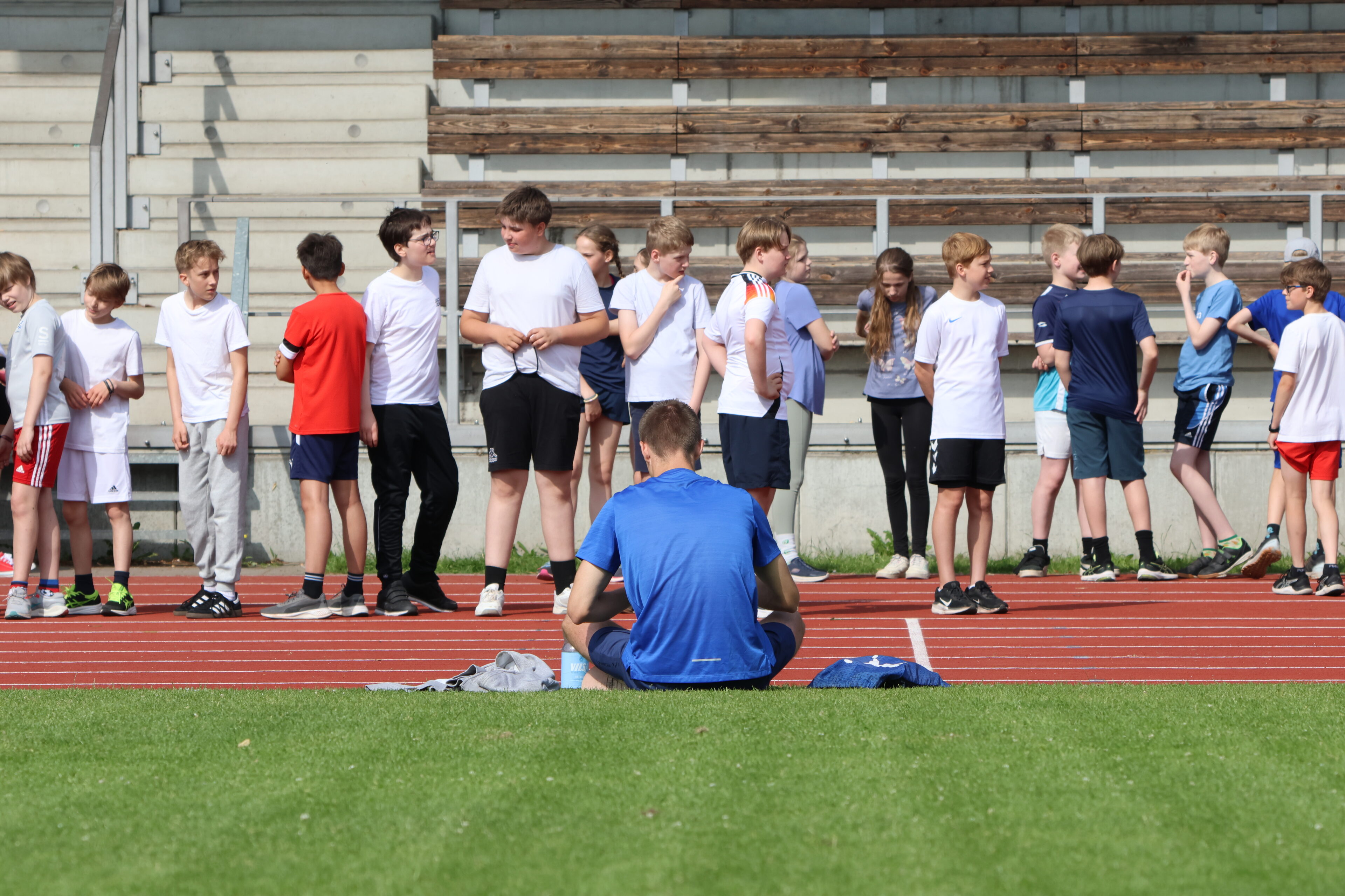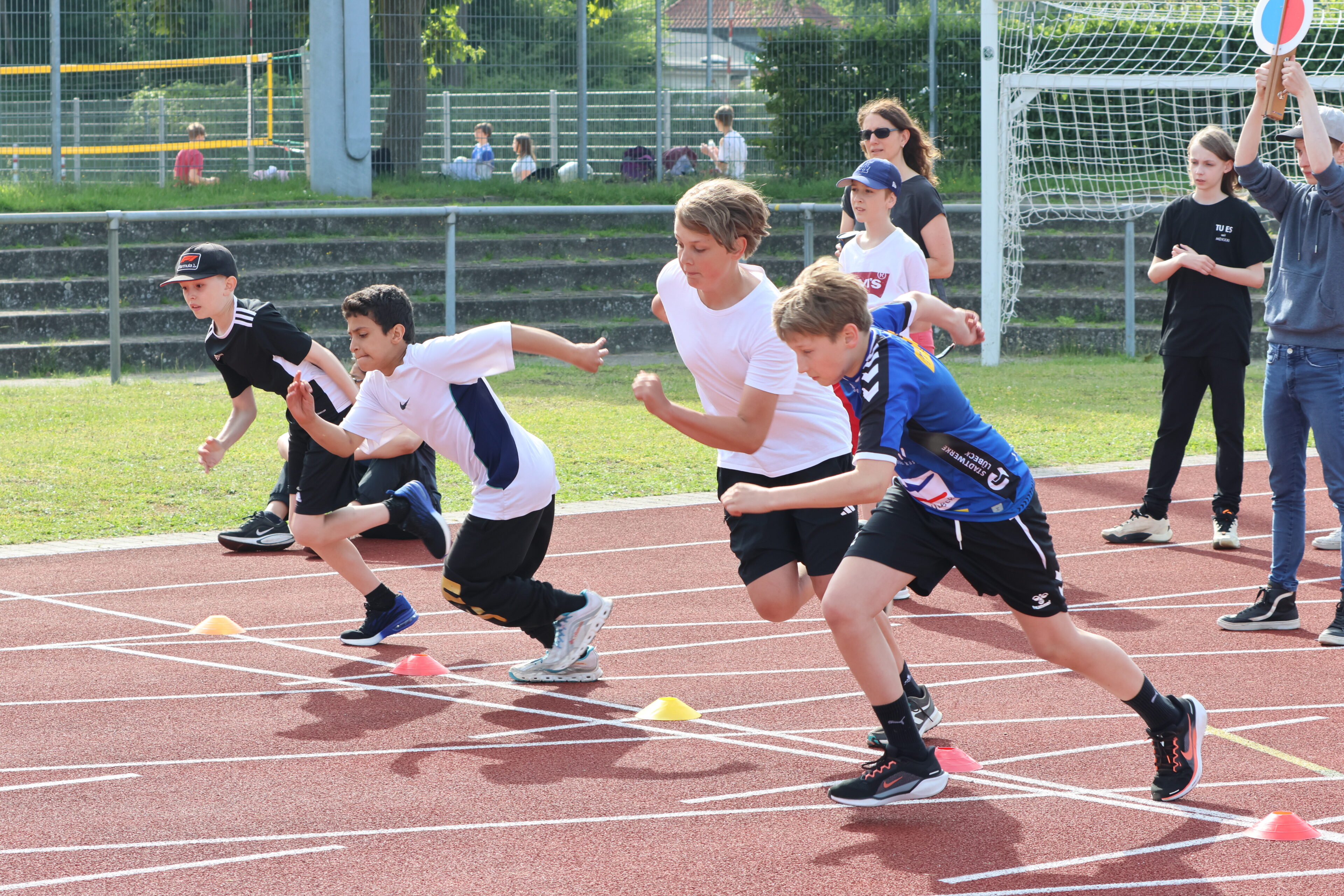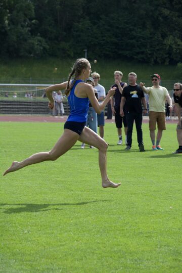 Die Stimmung war von Anfang an ausgelassen, Schülerinnen und Schüler hochmotiviert, alle waren gespannt und bereit, ihr Bestes zu geben. Begleitet mit Musik vom DJ Herrn Albert wurde sich aufgewärmt und vorbereitet für den anstehenden sportlichen Tag.