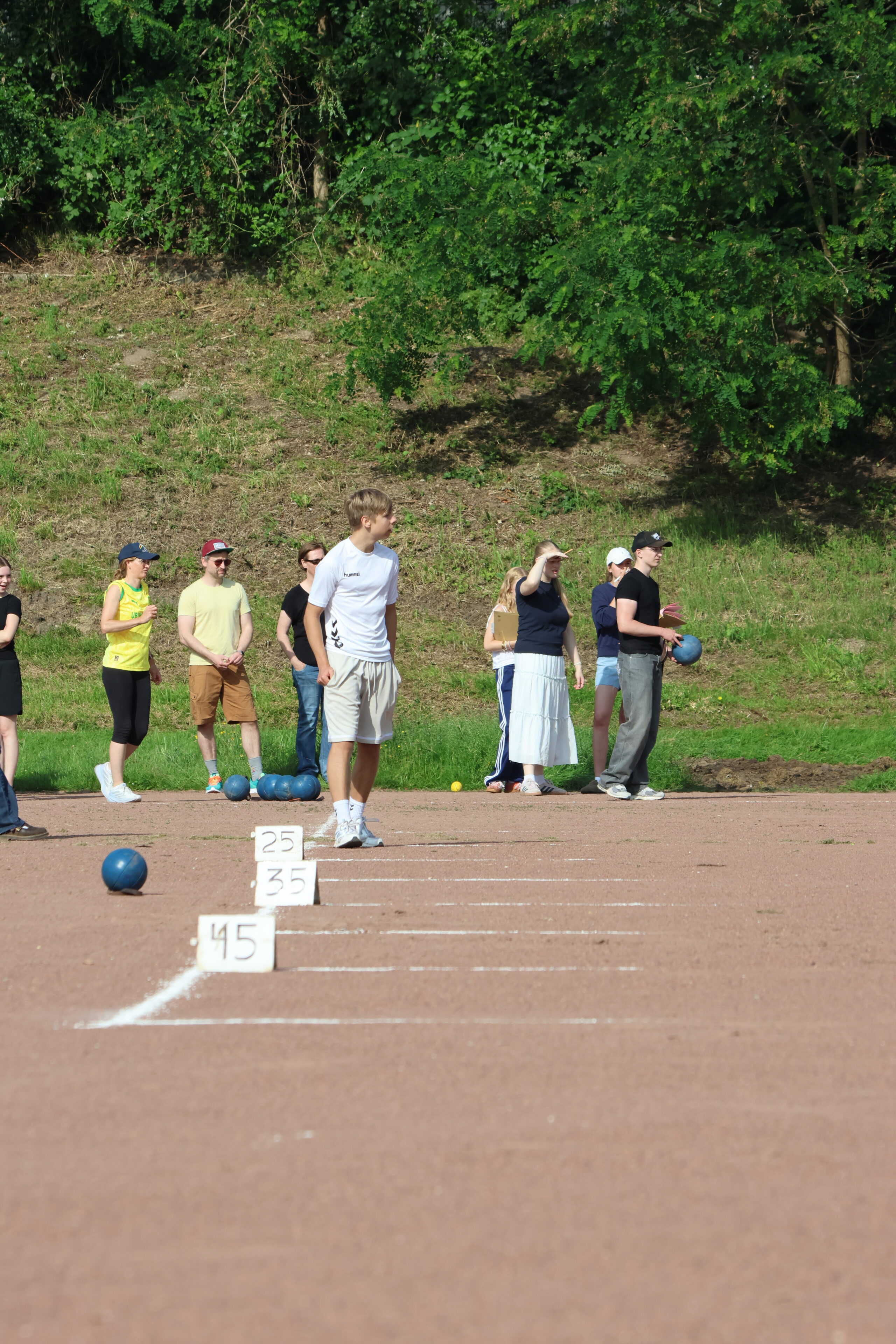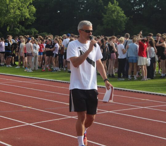 Der Moderator für den Tag, Herr Schrader, eröffnete das sportliche Großereignis mit einer kurzen Ansprache und erklärte den Ablauf. Kurz darauf ging es los: Die Riegenführer versammelten sich auf dem Rasen mit ihren Klassen, um anschließend zu ihren ersten Stationen zu gehen. Sprint, Weitsprung, Werfen und eine “kurze Langdistanz” wurden nacheinander mit Ehrgeiz, Teamgeist und viel Spaß absolviert.