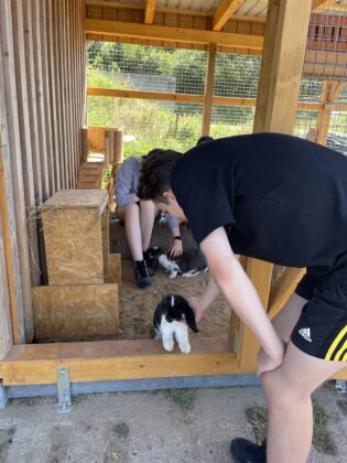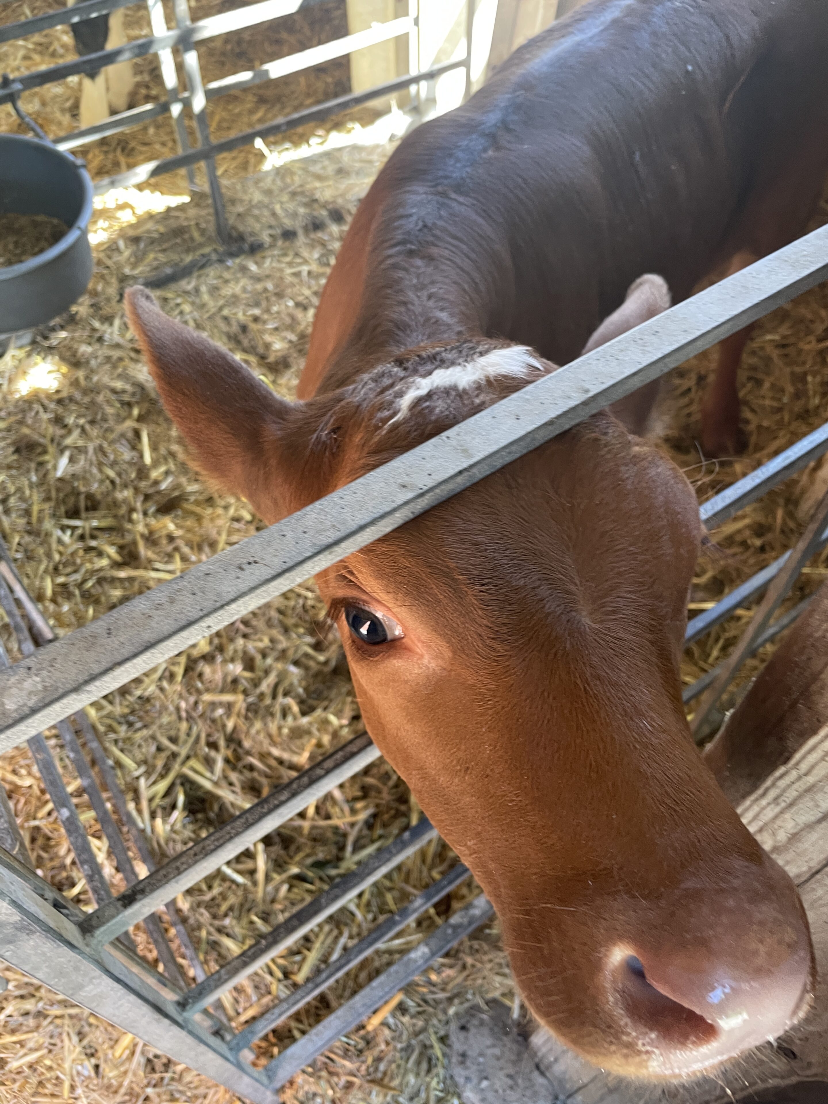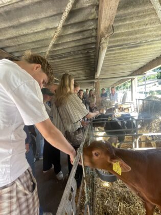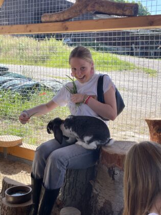 Besonders eindrucksvoll war die Begegnung mit den Tieren, da wir unter anderem Kälbchen und Hasen streicheln, aber auch Schafe und Hühner beobachten und füttern durften. Einige trauten sich sogar, die Hühner auf den Arm zu nehmen. Am Ende war es uns sogar möglich, eines der Kälber zu benennen. Wir haben dieses Kalb „Hunter“ genannt.