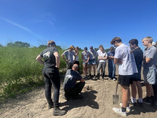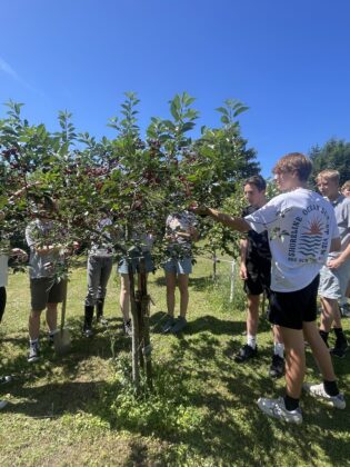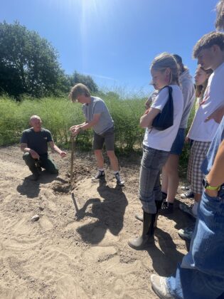 Ein besonderer Schwerpunkt während unserer Exkursion lag auf dem Thema “Boden”. Wir lernten, welche Rolle der Boden als Lebensgrundlage für verschiedene Pflanzen spielt. Dabei wurde uns erklärt, wie gesunder Boden entsteht, wie er gepflegt wird und warum er für den Ackerbau auf dem Hof so wichtig ist. Besonders spannend war es, den Boden auf den Feldern direkt untersuchen zu dürfen. Auf dem Rückweg vom Feld durften wir in einer kleinen Pause auch die selbst angebauten Kirschen probieren.