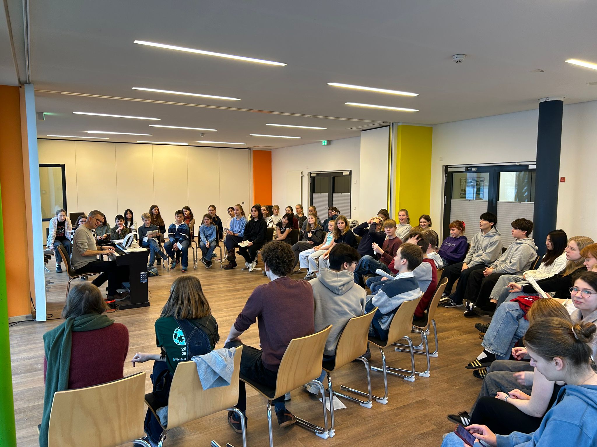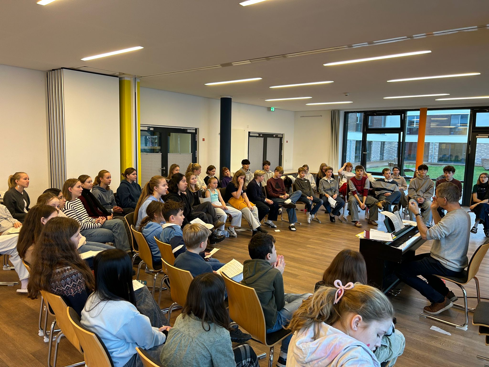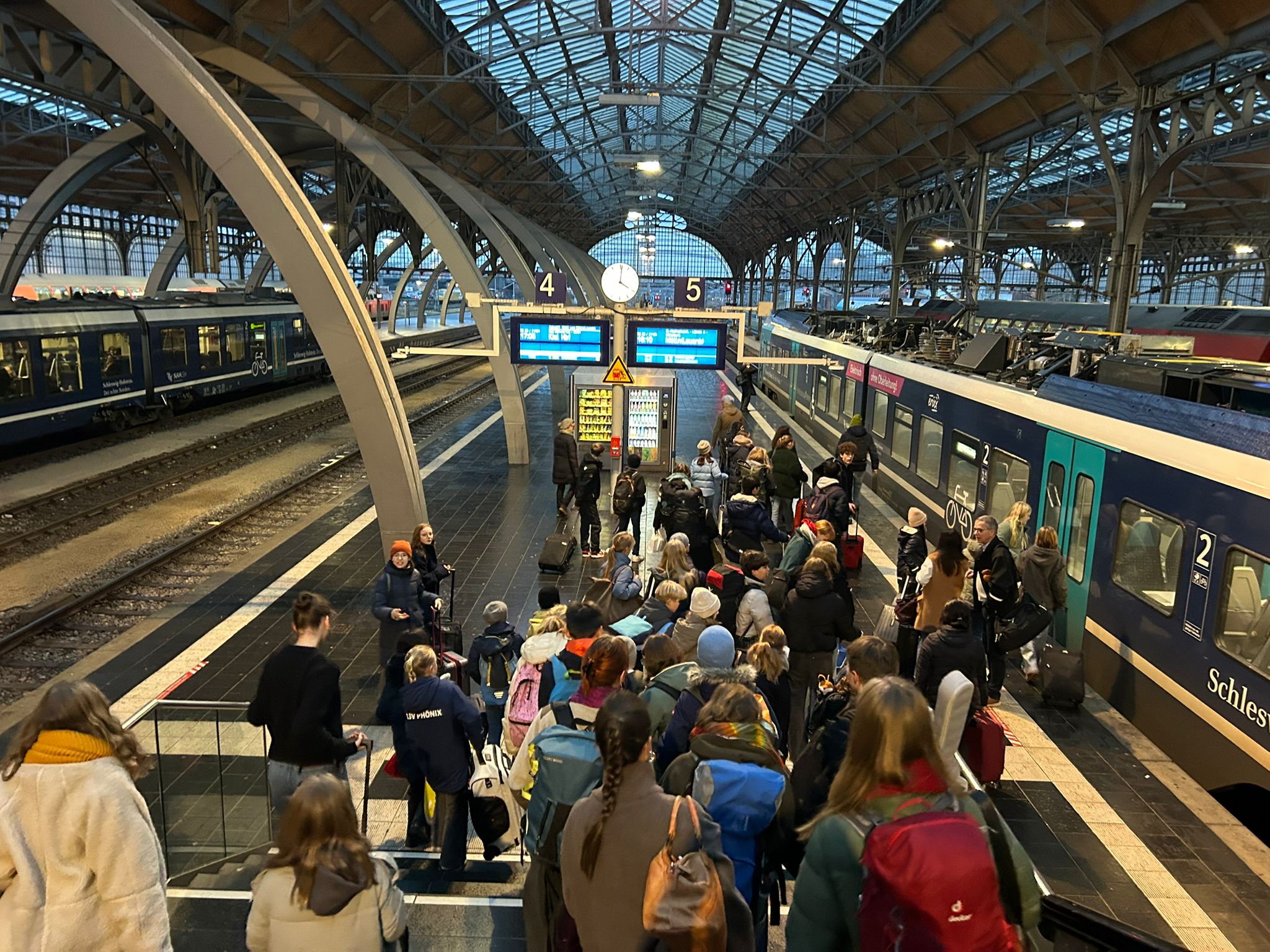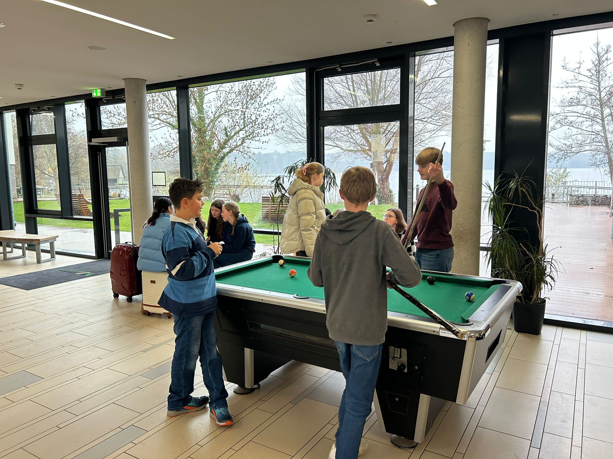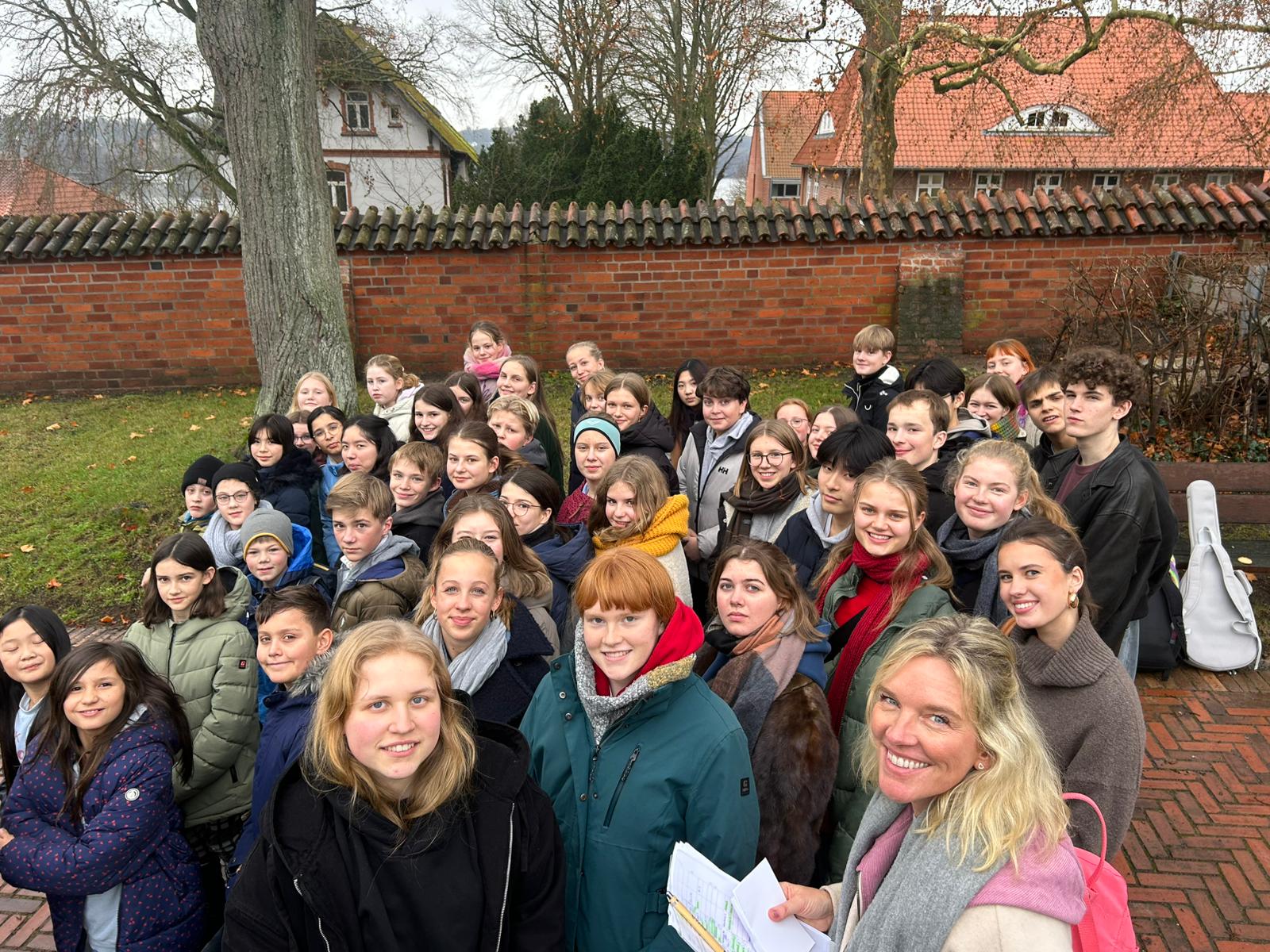Am Sonntagnachmittag trafen wir – 52 Krippenspieler:innen, Frau Behrend und Herr Hegge – uns am Bahnhof in Lübeck, um zusammen mit dem Zug nach Ratzeburg zu fahren. Als wir dann um 17:00 Uhr an der Jugendherberge eintrafen, haben wir die Zimmeraufteilung gemacht und sind anschließend auf unsere Zimmer gegangen, um die Betten zu beziehen und uns ein bisschen im Zimmer einzurichten. Danach gab es Abendessen. Nach dem Essen wurde noch zusammen gesungen und dann sind alle gegen 21:00 Uhr ins Bett gegangen.