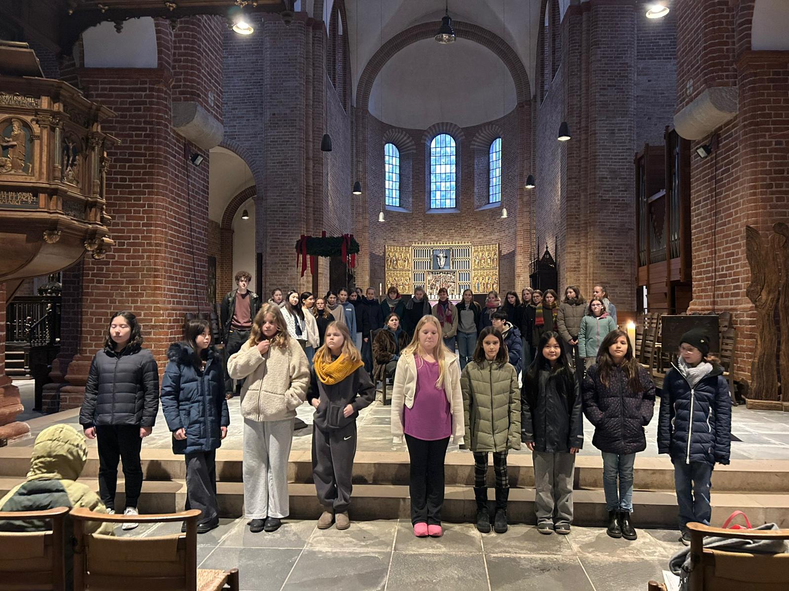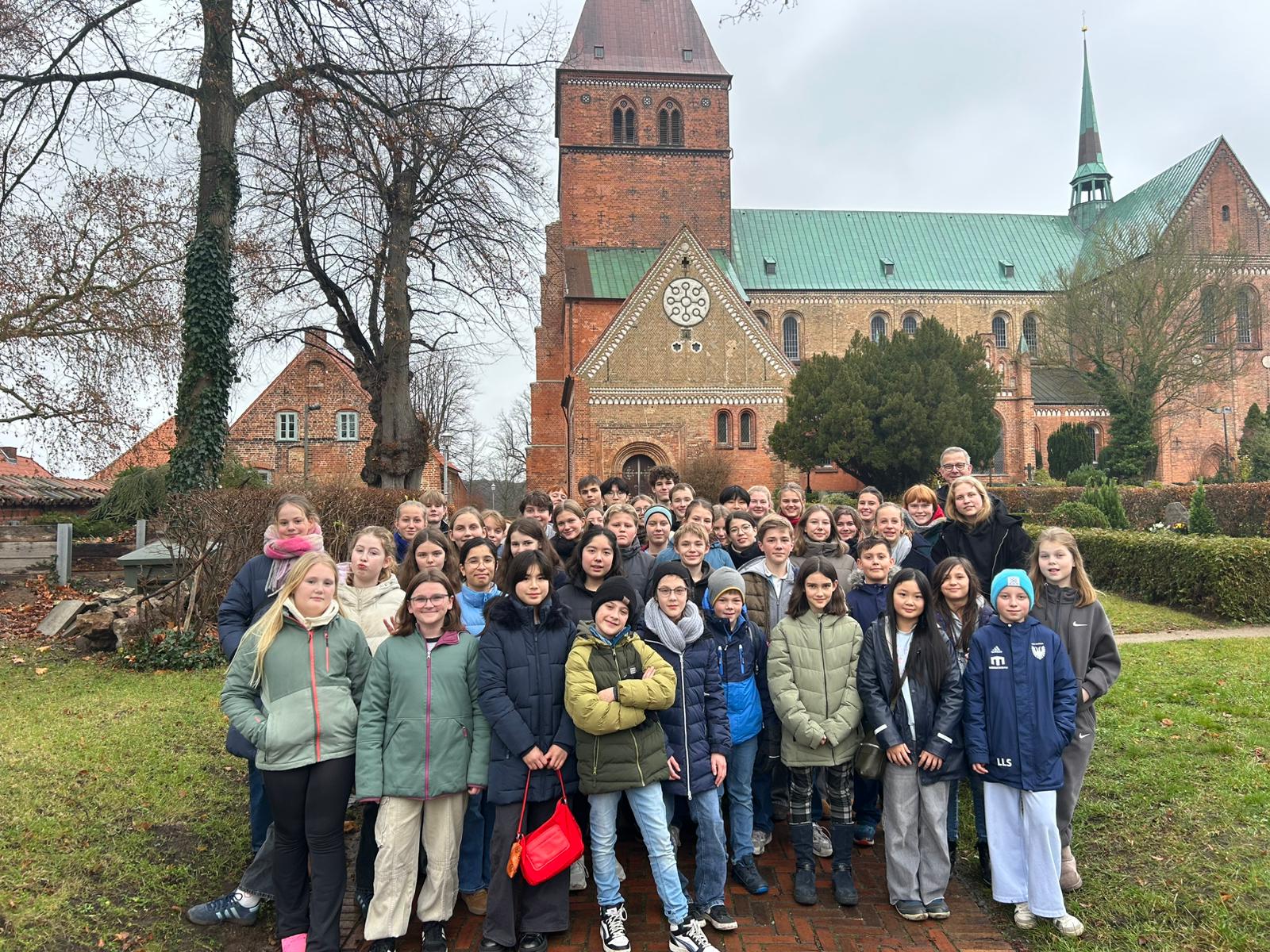 Der Dienstagmorgen startete etwas stressig, da es zwar ab 7:00 Uhr Frühstück gab, wir aber bis 9:45 Uhr gefrühstückt haben sollten, um pünktlich um 10:00 Uhr die Zimmer geräumt zu haben. Danach gab es nochmal Proben und es wurde festgelegt, wer wann spielt. Anschließend gab es Mittagessen. Um 14:30 Uhr hieß es warm einpacken, denn es ging in den Ratzeburger Dom, um uns schon mal mit der Akustik einer Kirche bekannt zu machen und einmal zu üben, wie wir in einer Kirche laut sprechen, damit man auch in der letzten Reihe noch verstehen kann, was vorne gesagt wird. Nach den Proben ging es noch ein letztes Mal, in diesem Jahr, zurück in die Jugendherberge, um zu Abend zu essen. Danach haben wir unser Gepäck aus dem Gepäckraum geholt und sind zu Fuß zum Bahnhof gegangen und anschließend mit dem Zug nach Hause gefahren. Zusammenfassend war es eine schöne Probenfahrt und wir sind uns sicher, dass wir nun gut vorbereitet sind, um gute Aufführungen zu machen.