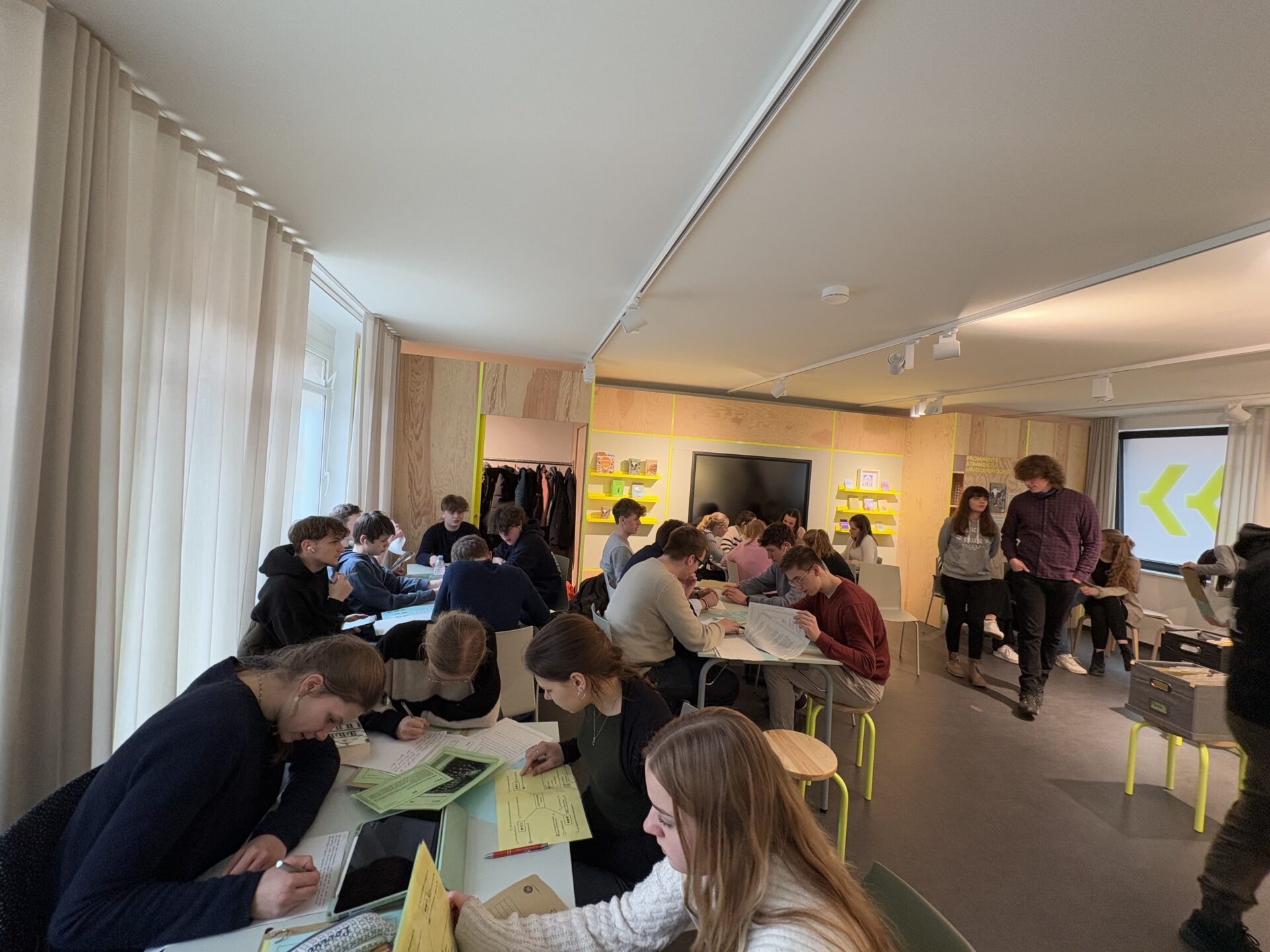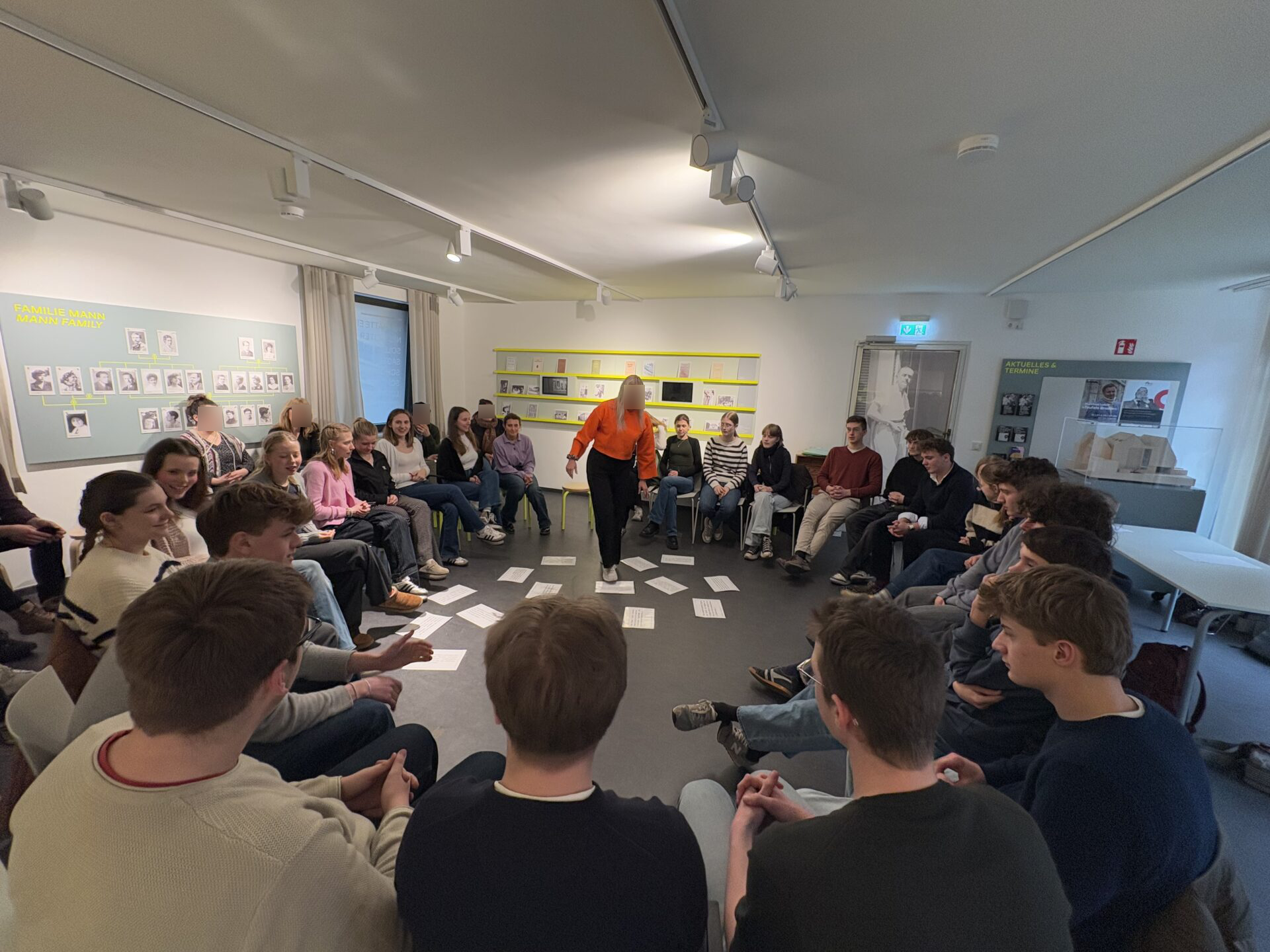 Um all diese und noch mehr Themen genauer in den Blick zu nehmen, haben wir, die Ec, am Freitag, den 14.3.25, an einem Workshop zum Schulkapitel teilnehmen dürfen. Ralph Olsen, Professor für Literatur und Literaturdidaktik an der Universität Ludwigsburg, hat zusammen mit Studierenden einen pädagogischen Baustein zu dem Schulkapitel aus den „Buddenbrooks“ entwickelt. In Kooperation mit dem Buddenbrookhaus haben sie verschiedenes Material erarbeitet, das wir als Klasse ausprobieren durften, weil wir die Handlungsorte im Katharineum genau kennen.