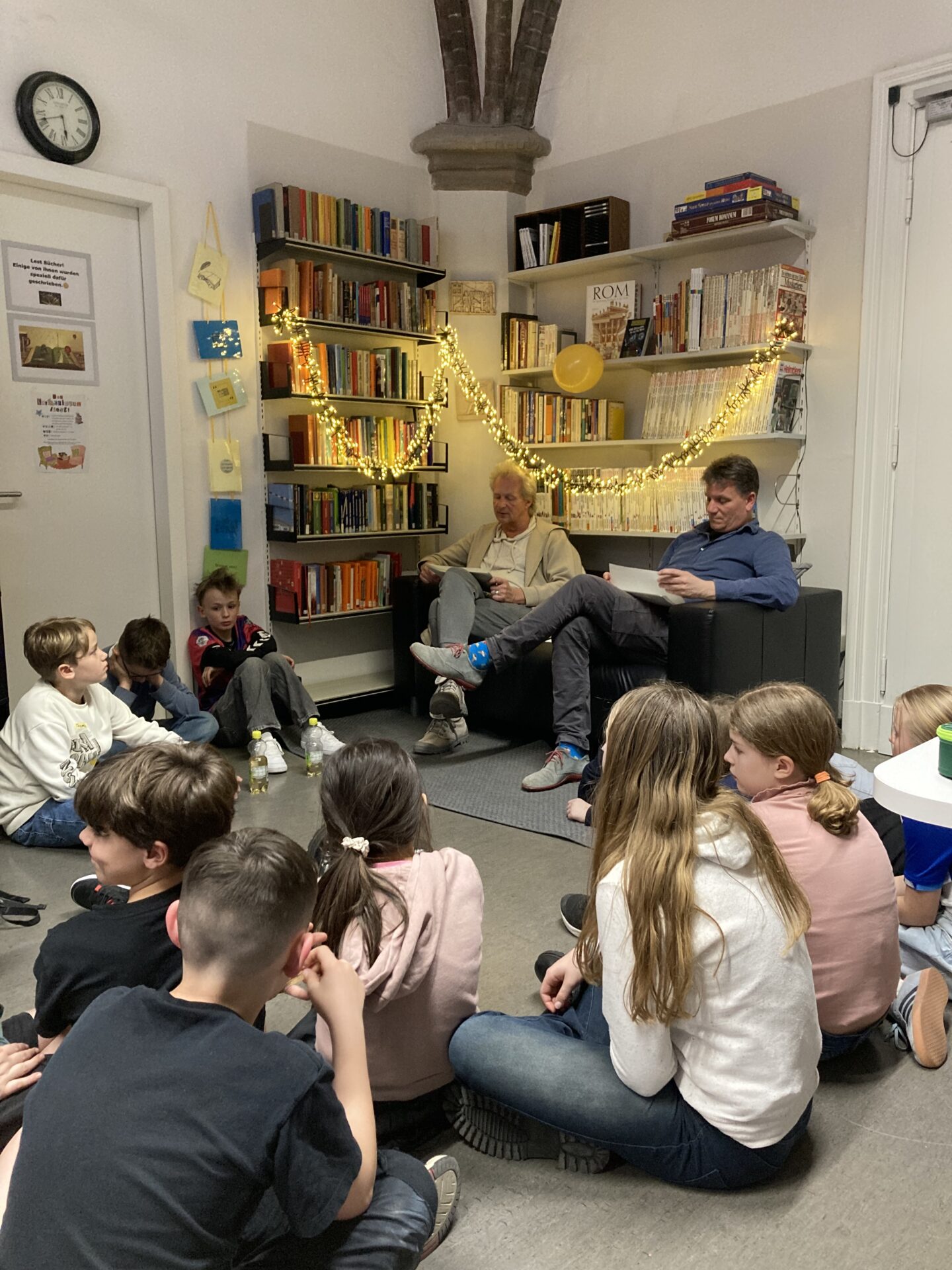 Gebannt lauschten die Schülerinnen und Schüler den lebhaften Stimmen der Lehrkräfte, die die Figuren der Geschichte zum Leben erweckten. Besonders schön war, dass die Schüler:innen selbst miträtseln durften und immer wieder wurden Hinweise gemeinsam entschlüsselt und Theorien über einen möglichen Täter aufgestellt.
