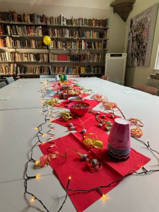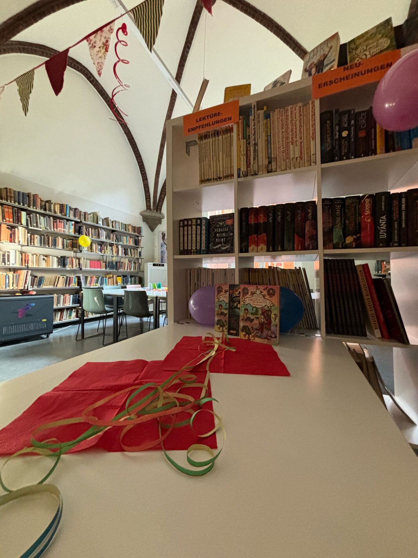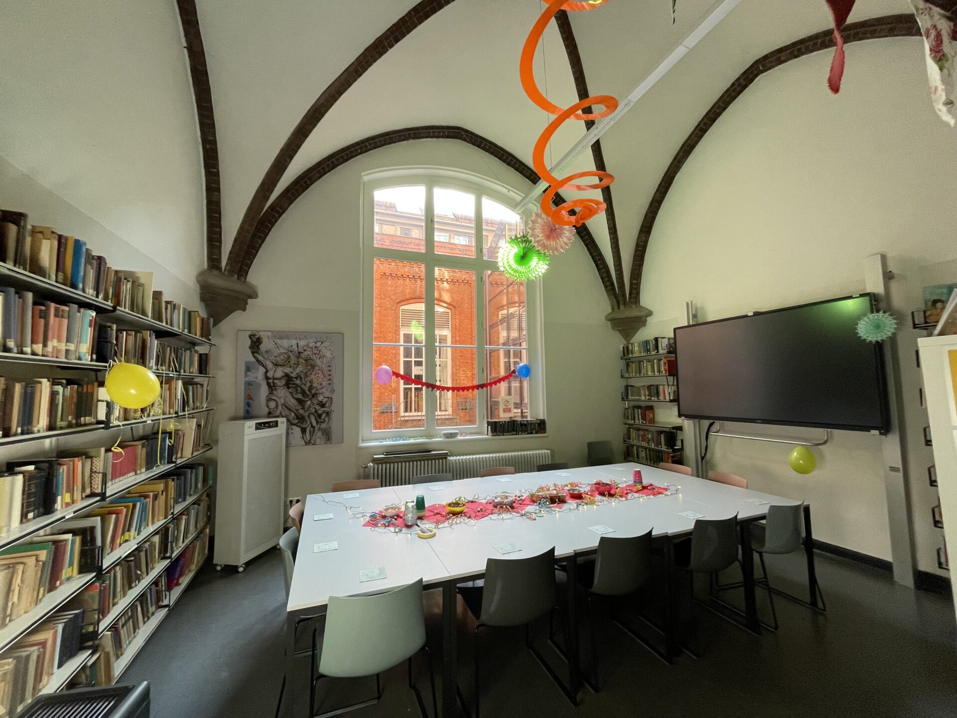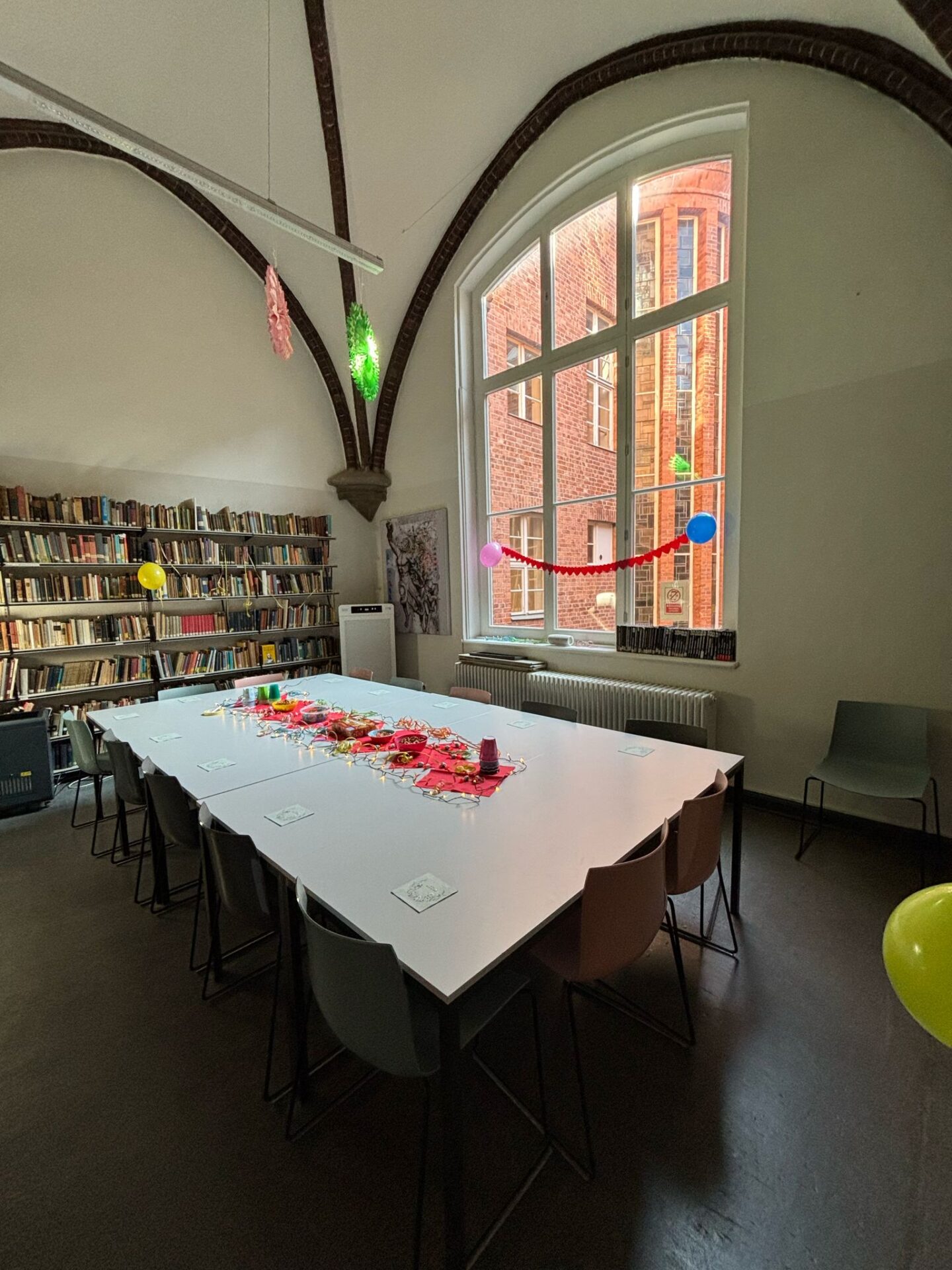 Der Nachmittag begann mit viel Freude und Begeisterung. Das Lektorium war liebevoll geschmückt: Bunte Girlanden schlängelten sich quer durch den Raum, während leuchtende Ballons in den Ecken für eine fröhliche Stimmung sorgten. Lichterketten schufen eine warme Atmosphäre und auch die sanfte Hintergrundmusik sorgte für eine entspannte Umgebung.