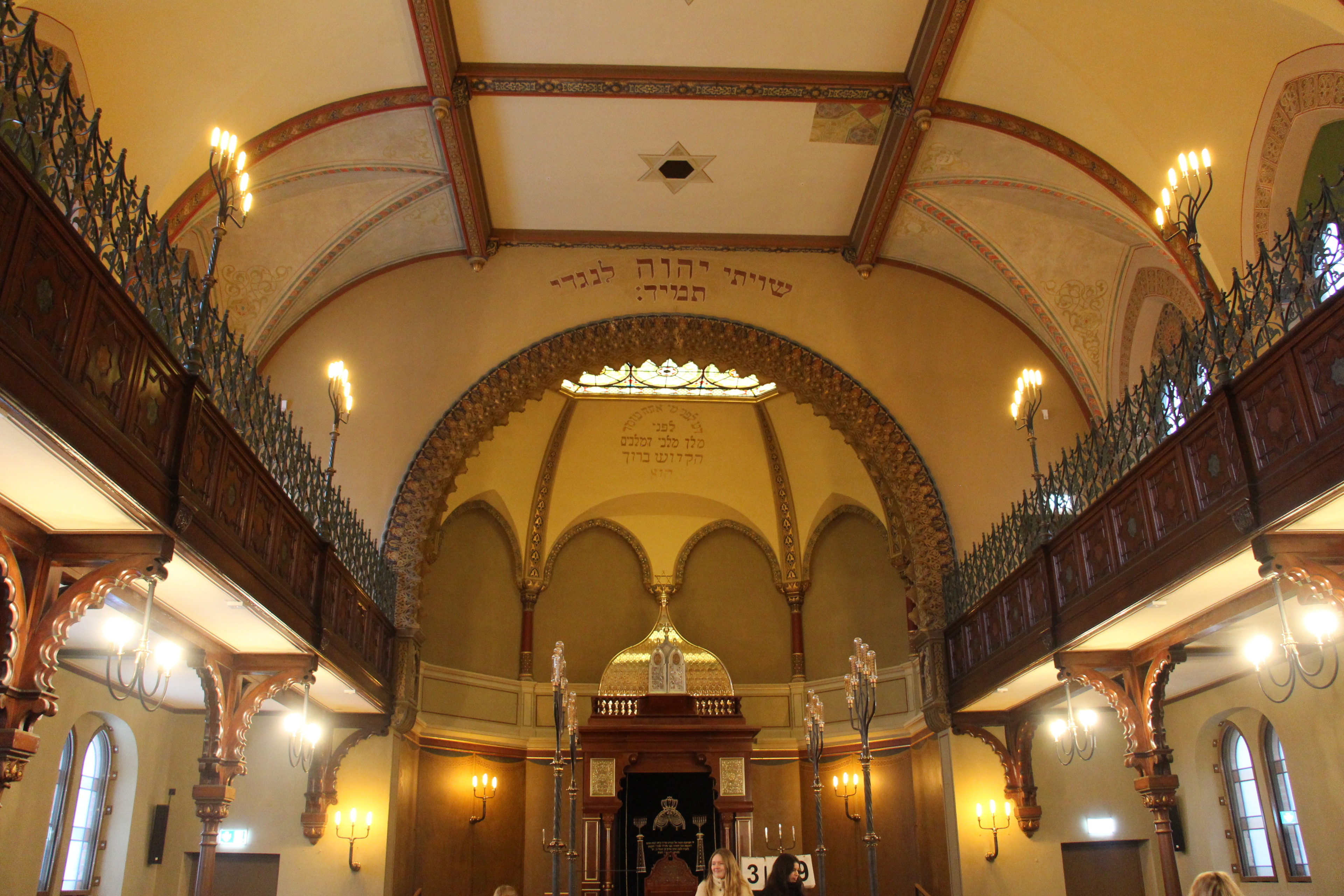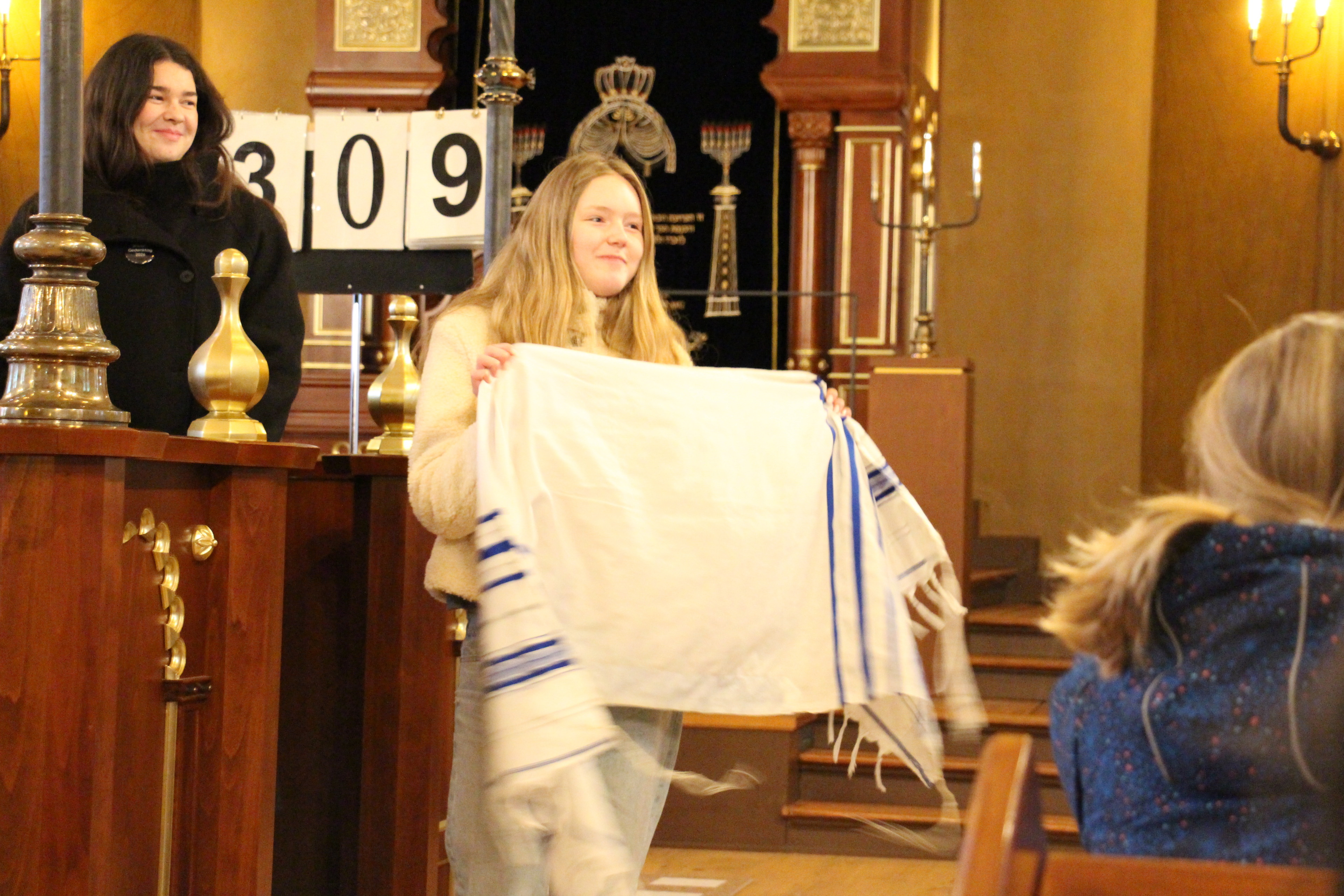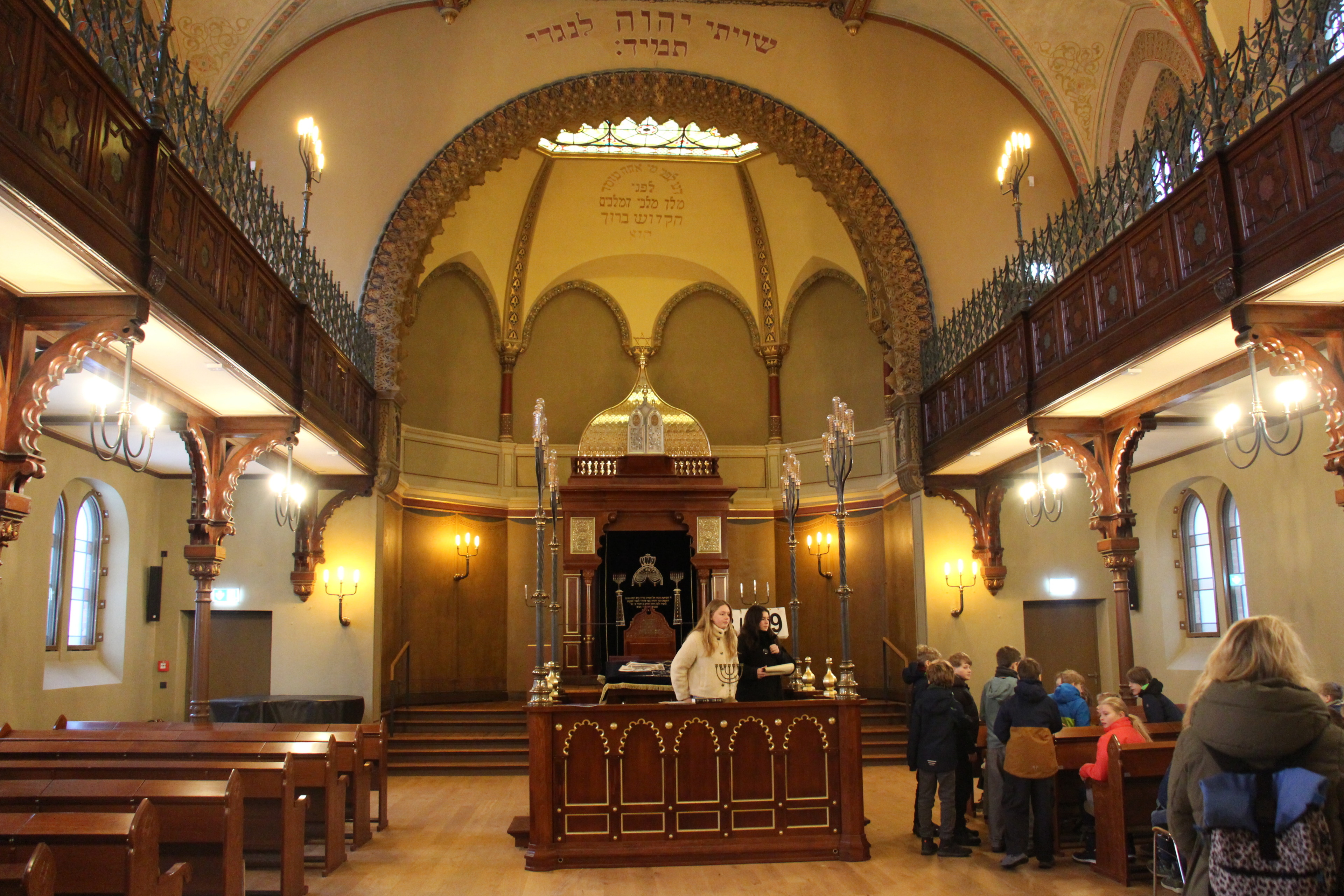 Am Gedenktag führten wir die 5. Klassen durch die Carlebach-Synagoge. Dabei konnten die Schülerinnen und Schüler unter anderem den beeindruckenden Gebetssaal sowie die verschiedenen Ausstellungsräume entdecken. Durch den Religionsunterricht verfügten sie bereits über viel Vorwissen, sodass wir mit ihnen gut über das Judentum und die Geschichte der Synagoge ins Gespräch kommen konnten. Teilweise wurden die Führungen auch von Herrn Kogan, einem Mitglied der jüdischen Gemeinde Lübecks, begleitet. Die Fünftklässler waren stets motiviert und interessiert dabei, weshalb wir die Führungen insgesamt als sehr gelungen empfanden. (Marlene Kitzrow)