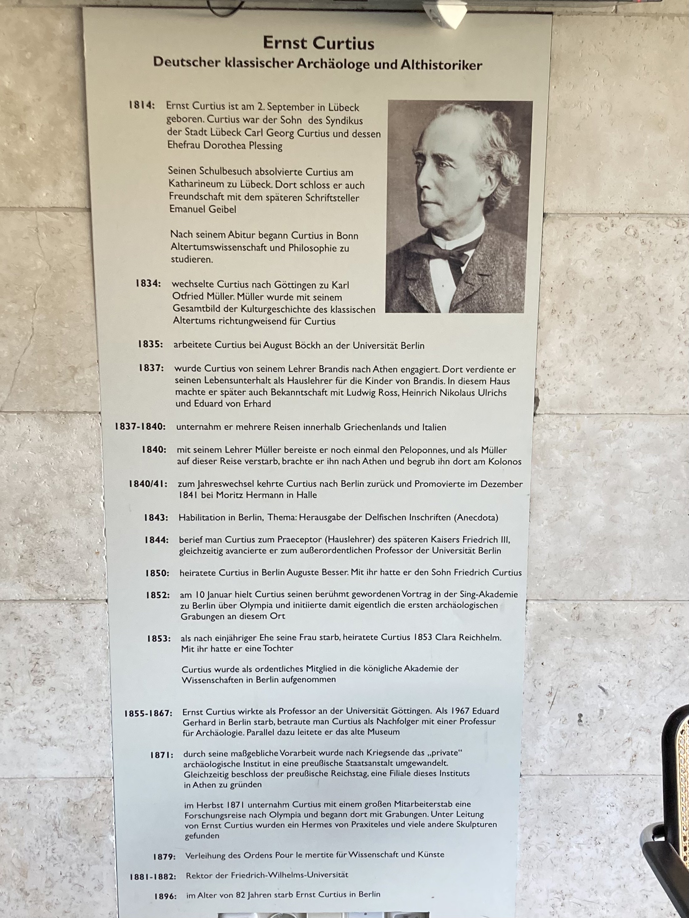 Eine andere Art von Highlight erwartet uns am Donnerstagvormittag in Ruhleben. Wir besichtigen das Olympiastadion. Hier gibt es mehr als nur Sportgeschichte zu sehen. Wer wusste schon, dass das Katharineum etwas mit den Olympischen Spielen und dem Berliner Olympiastadion zu tun hat? Otto aus dem Lateinkurs von Frau Saage! Der Archäologe und ehemalige Katharineer Ernst Curtius war im 19. Jh. am Freilegen des antiken Olympia beteiligt. Für ihn gibt es bis heute eine Tafel im Stadion.