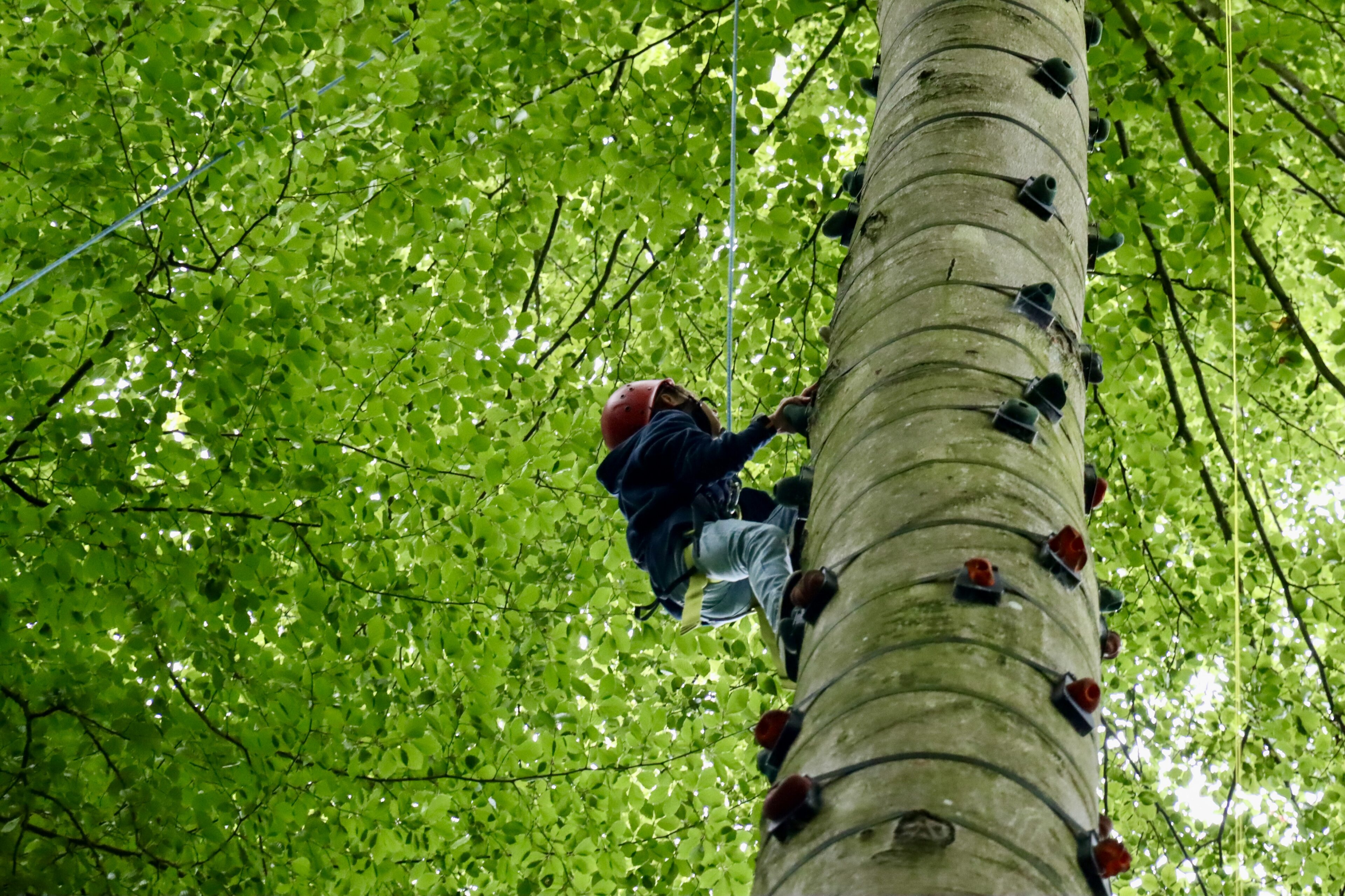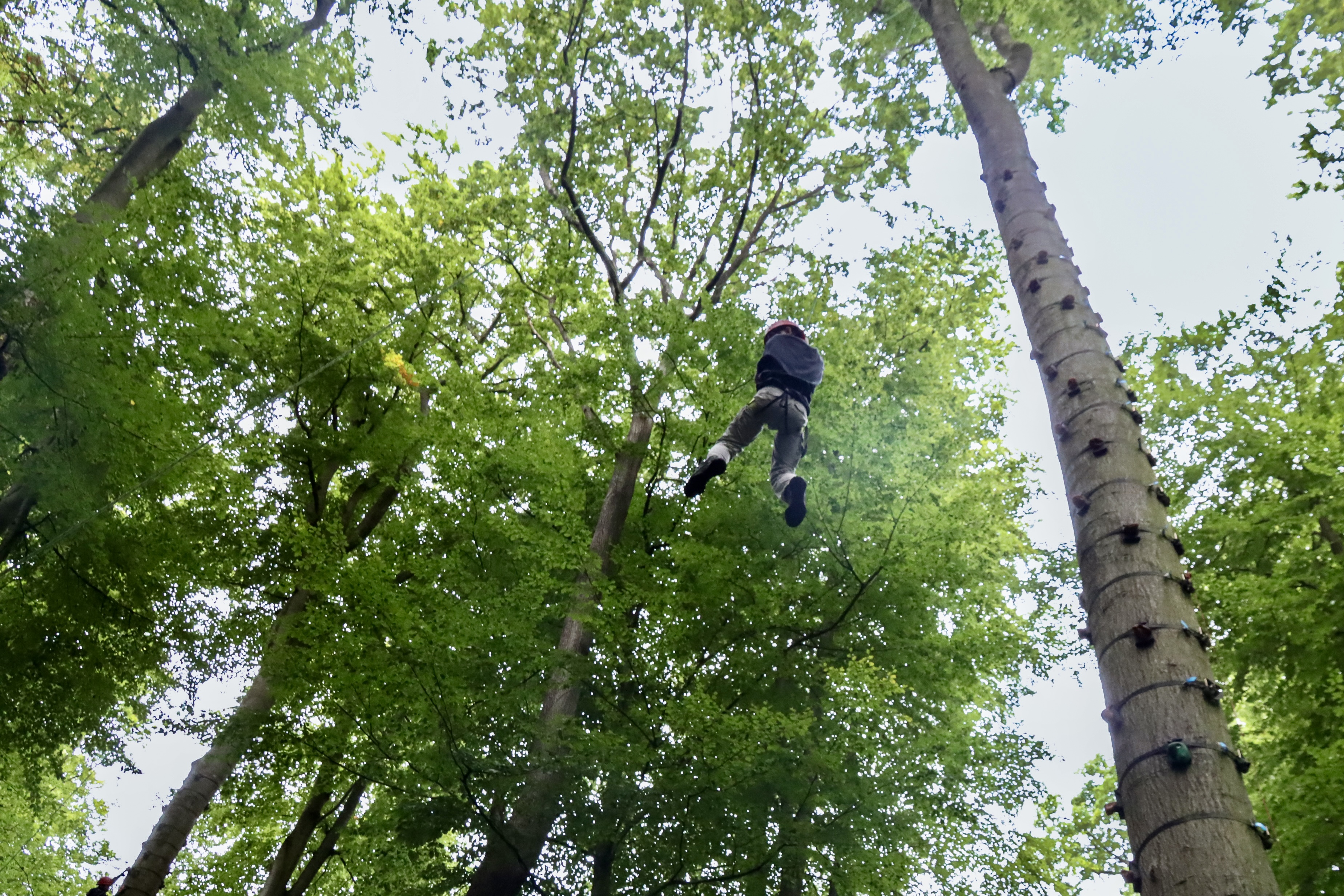 Das dritte „Spiel“ war freiwillig, aber für viele das Highlight: An einem Baum waren Klettersteine befestigt, und wer wollte, durfte, natürlich professionell gesichert, daran hochklettern. Einige von uns haben ihre Höhenangst überwunden, andere sind bis ganz nach oben geklettert. Es war beeindruckend zu sehen, wie sich alle gegenseitig motiviert und angefeuert haben.