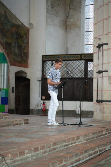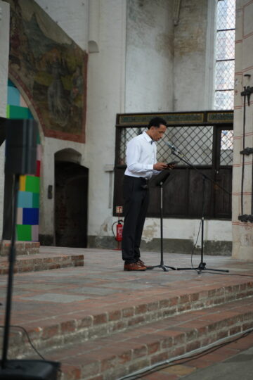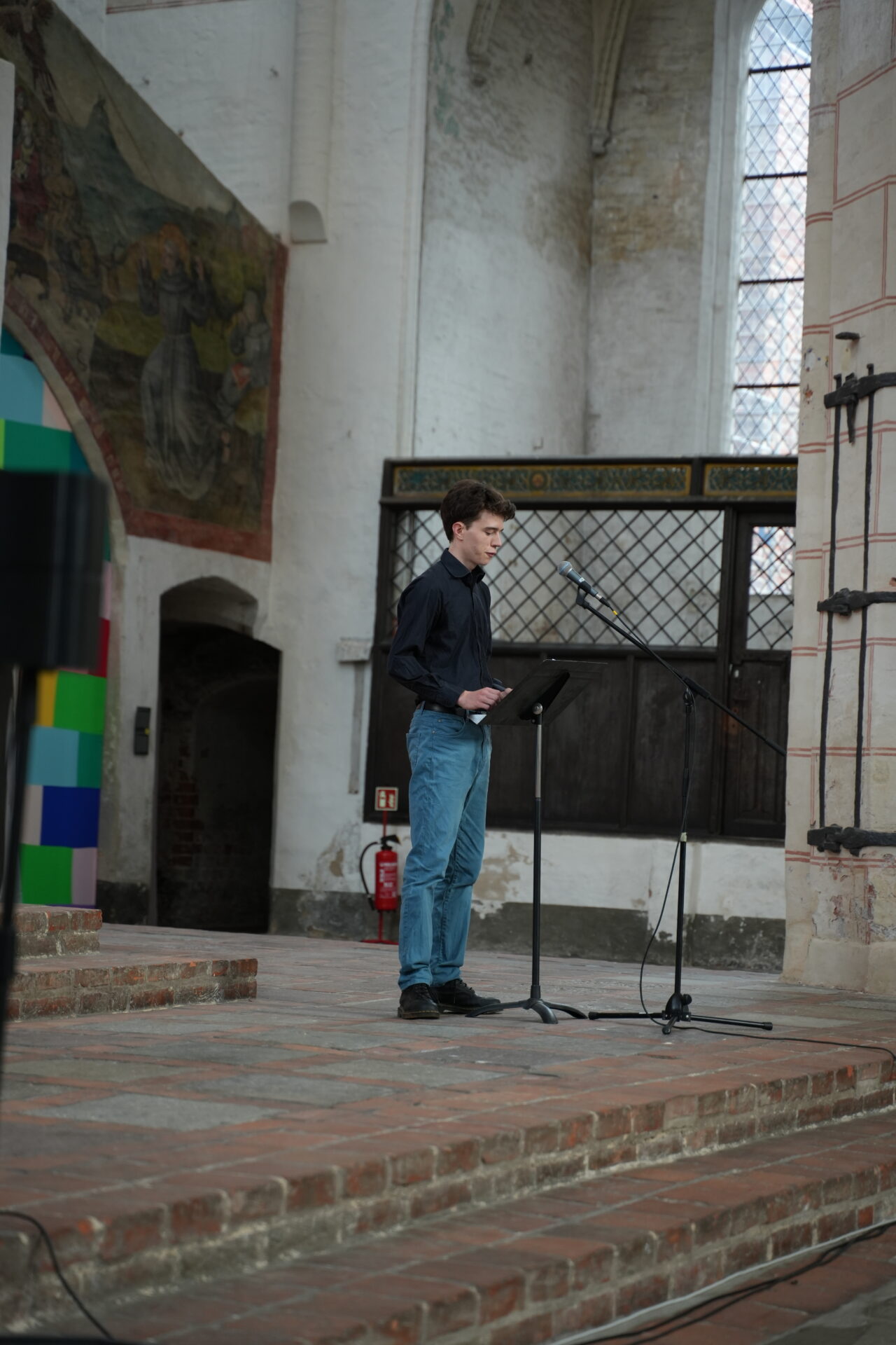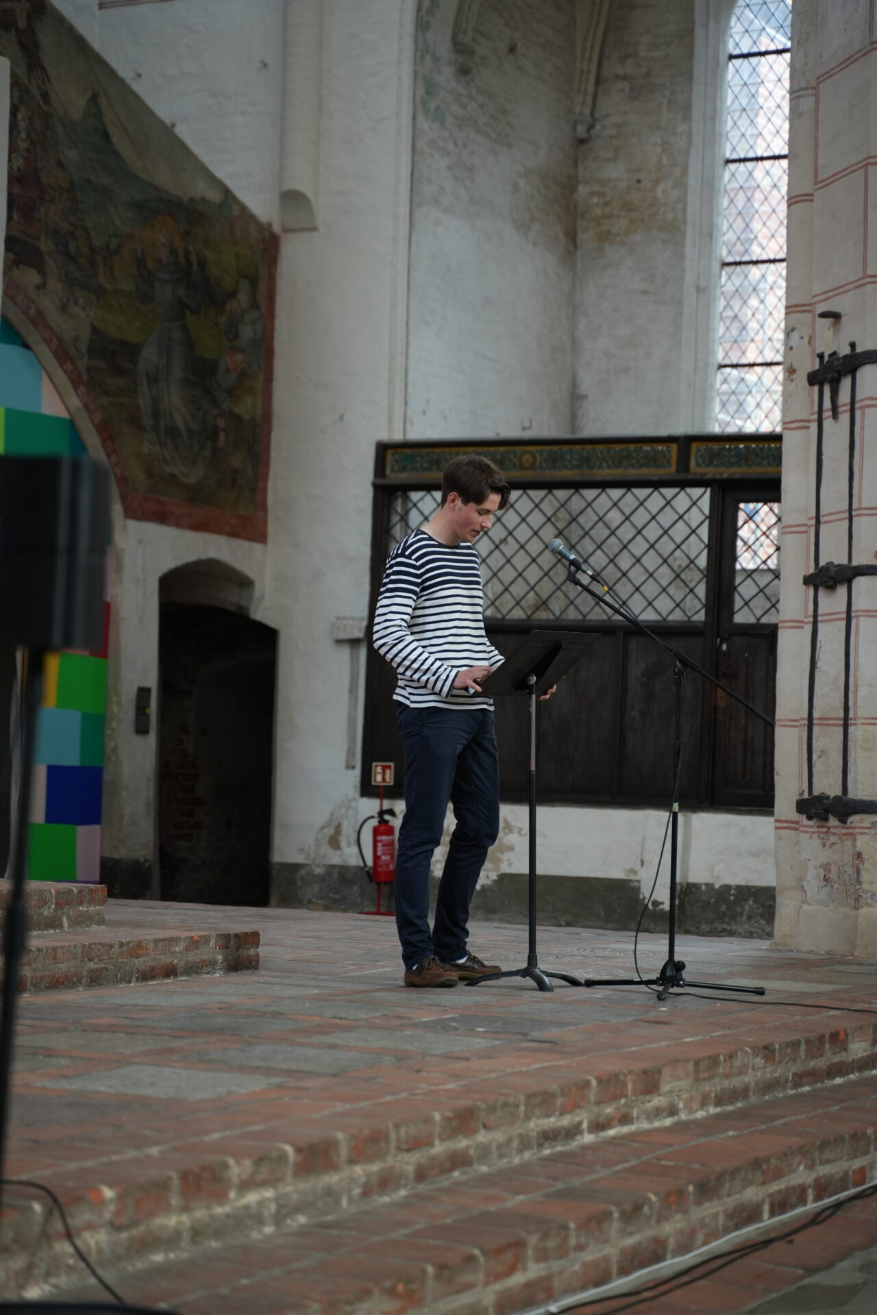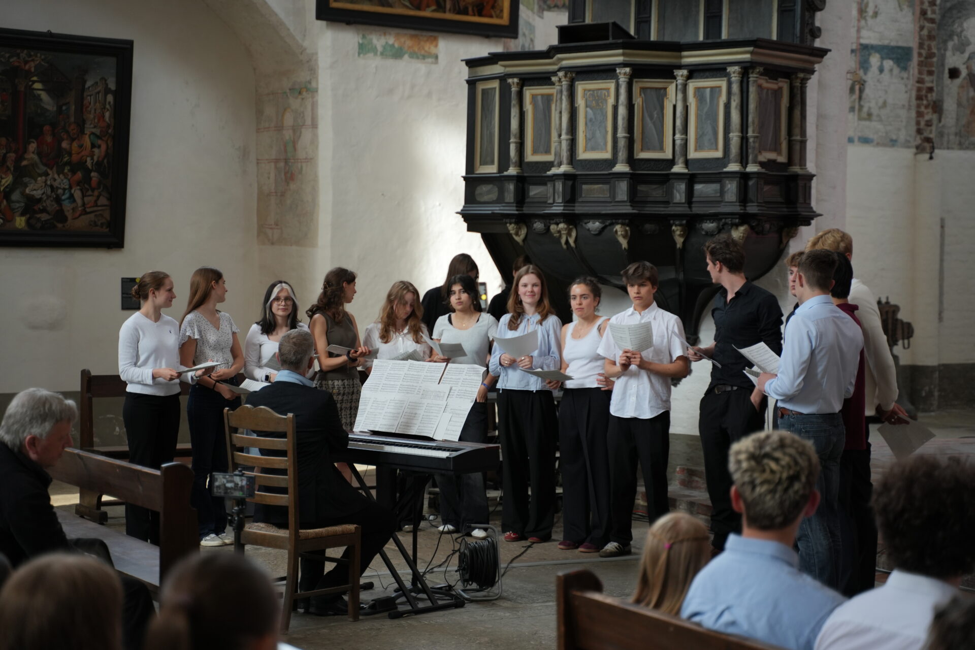 Die Gestaltung der Andacht übernahm Pastor Asmussen, der mit seiner Predigt persönliche und hoffnungsvolle Worte an die Abiturientinnen und Abiturienten richtete. Für die musikalische Begleitung sorgte das Kantorat und verlieh der Veranstaltung eine würdige, festliche Atmosphäre. Auch einige Schüler trugen dazu bei, indem sie die Kirche mit Liedern wie “What a wonderfull world” gesanglich füllten.