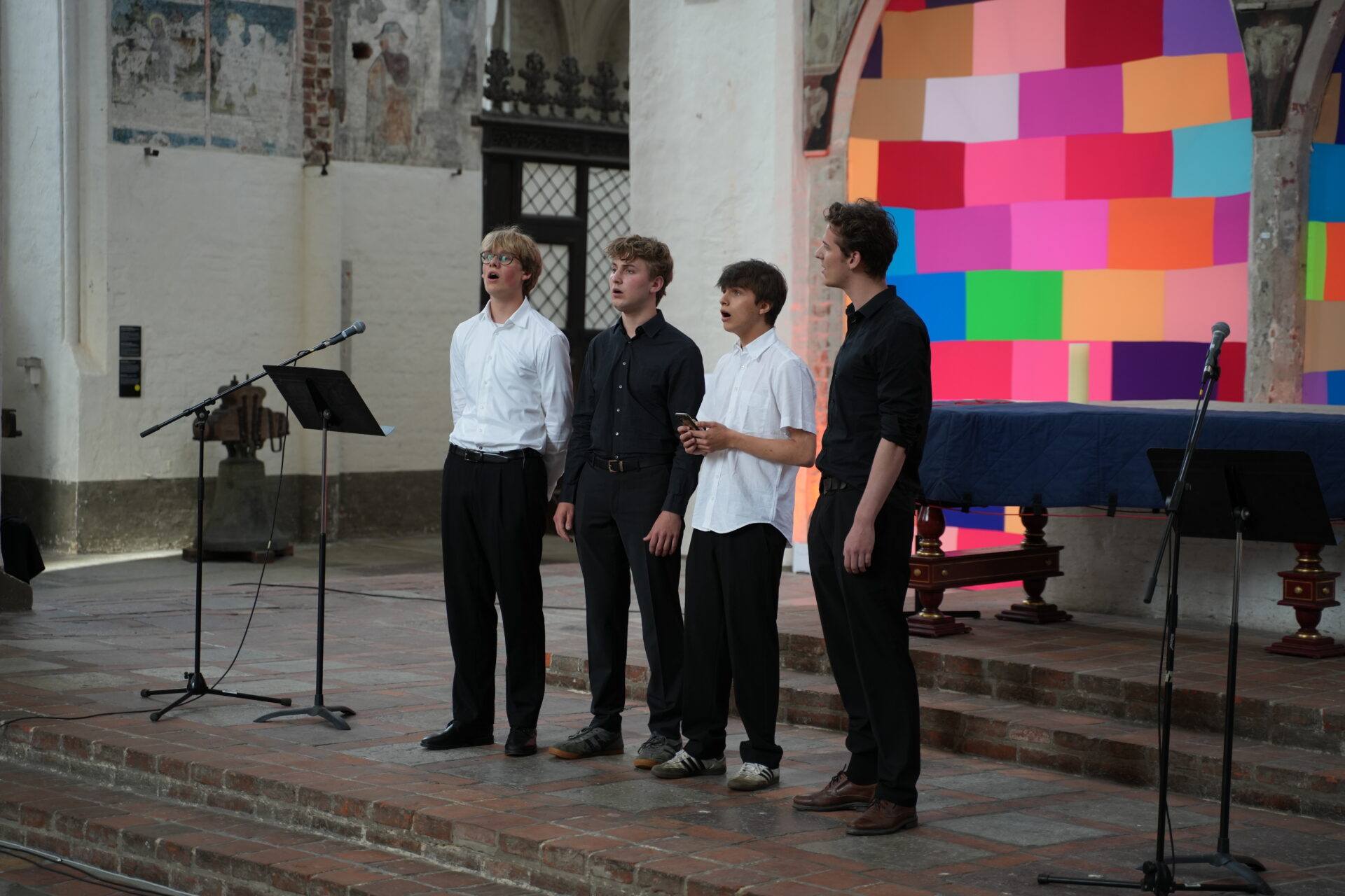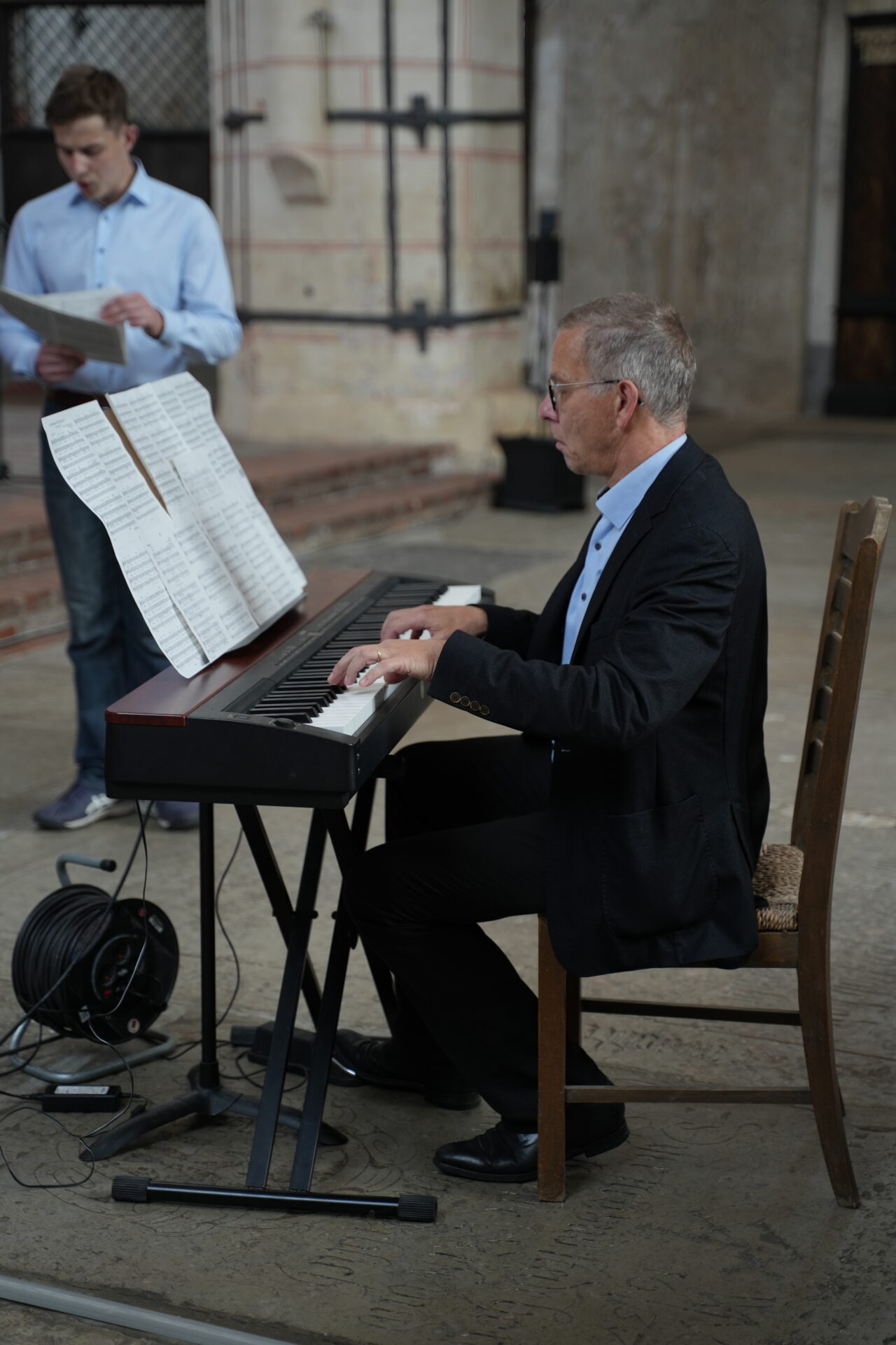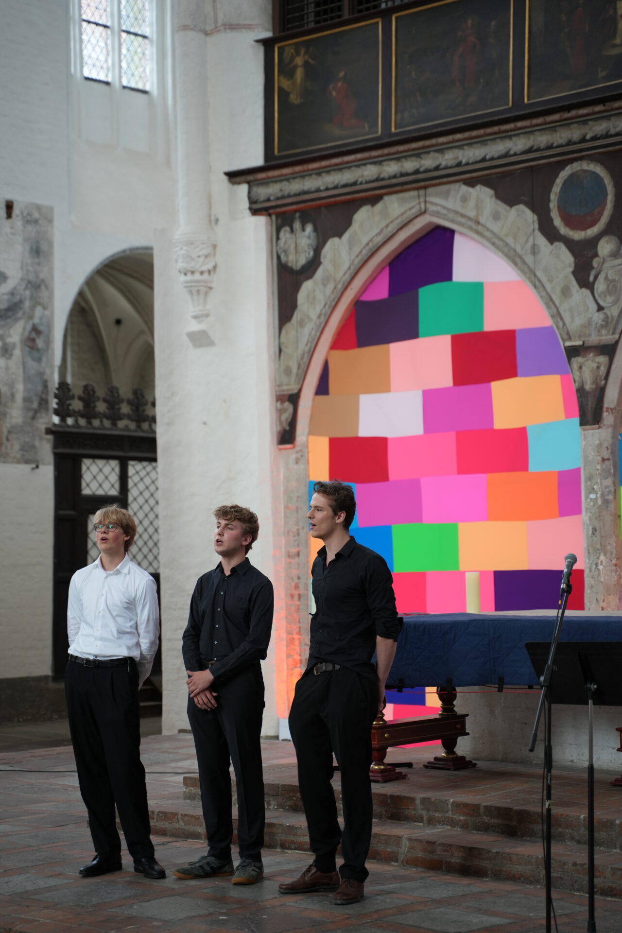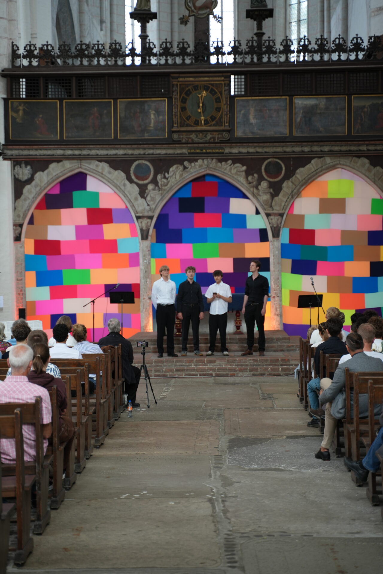 Die Gestaltung der Andacht übernahm Pastor Asmussen, der mit seiner Predigt persönliche und hoffnungsvolle Worte an die Abiturientinnen und Abiturienten richtete. Für die musikalische Begleitung sorgte das Kantorat und verlieh der Veranstaltung eine würdige, festliche Atmosphäre. Auch einige Schüler trugen dazu bei, indem sie die Kirche mit Liedern wie “What a wonderfull world” gesanglich füllten.