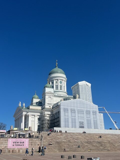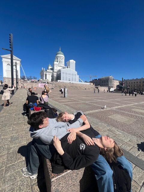 Beim Frühstück am Montagmorgen konnte man durch die Fenster des Restaurants die vielen kleinen Inseln in der Nähe des Hafens betrachten. Nachdem wir angelegt hatten, sind wir mit dem Bus und der U-Bahn in die Stadt gefahren. Dort schauten wir uns im Zentrum von Helsinki mehrere beeindruckende Gebäude (wie z.B. Kampin Kappelli, den Dom von Helsinki, die Felsenkirche, die Markthalle, den Hafen usw.) an. Auch ein Vintage-Shop wurde von uns besucht. Zudem hatten wir noch zwei Stunden Freizeit, in denen wir uns die Stadt alleine anschauen und etwas essen gehen konnten. Gegen 17 Uhr nahmen wir einen Überland-Bus, der etwa zwei Stunden fuhr und uns nach Kotka brachte. Am Busbahnhof wurden wir von unseren finnischen Austauschschülern abgeholt und lernten abends die Familien kennen.