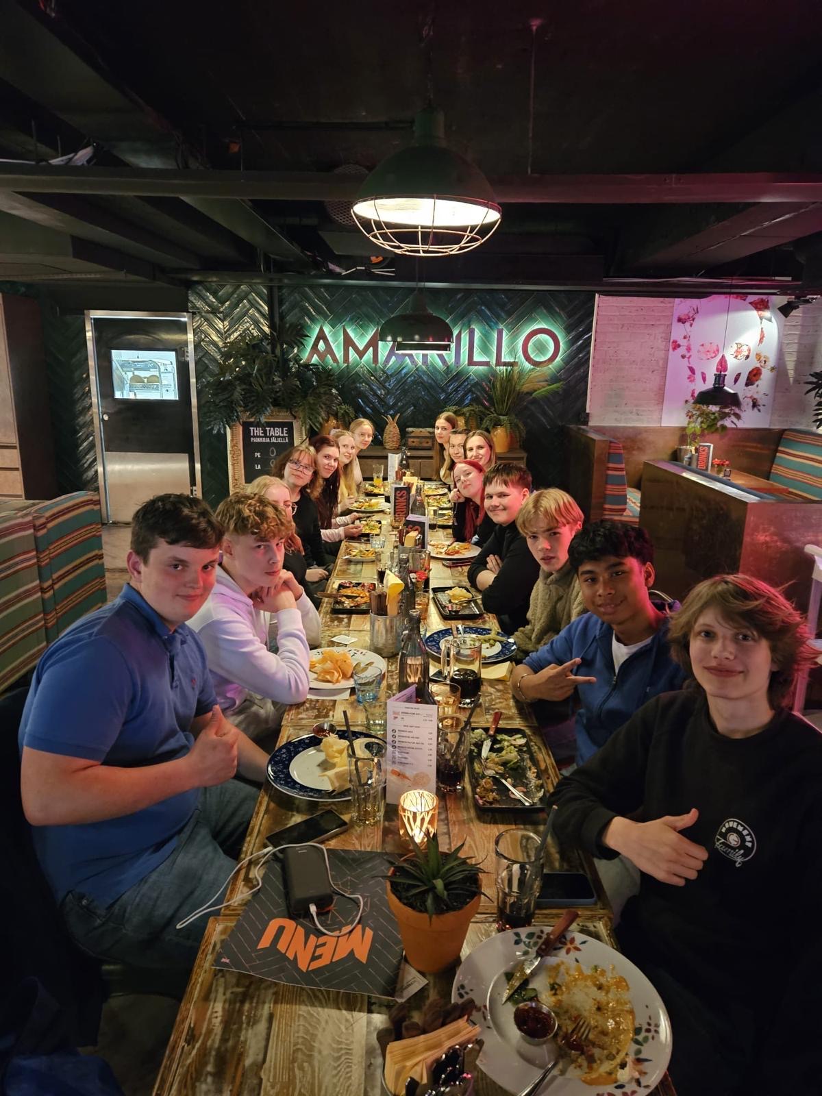 Am Nachmittag hatten wir noch eine Stunde Englisch mit dem Fokus auf Umweltaspekte. Dies war sehr spannend, da wir alles verstehen und somit auch mitmachen konnten. Am späten Nachmittag hatten wir dann eine Führung von unseren Austauschschülern durch Kotka. Abends sind wir gemeinsam mit den finnischen Schülern und der finnischen Schulleiterin von Kotka in einem mexikanischen Restaurant gewesen und wurden dort von unseren Gastgebern zum Essen eingeladen. Der Tag war sehr ereignisreich und wir konnten viele neue Eindrücke sammeln.