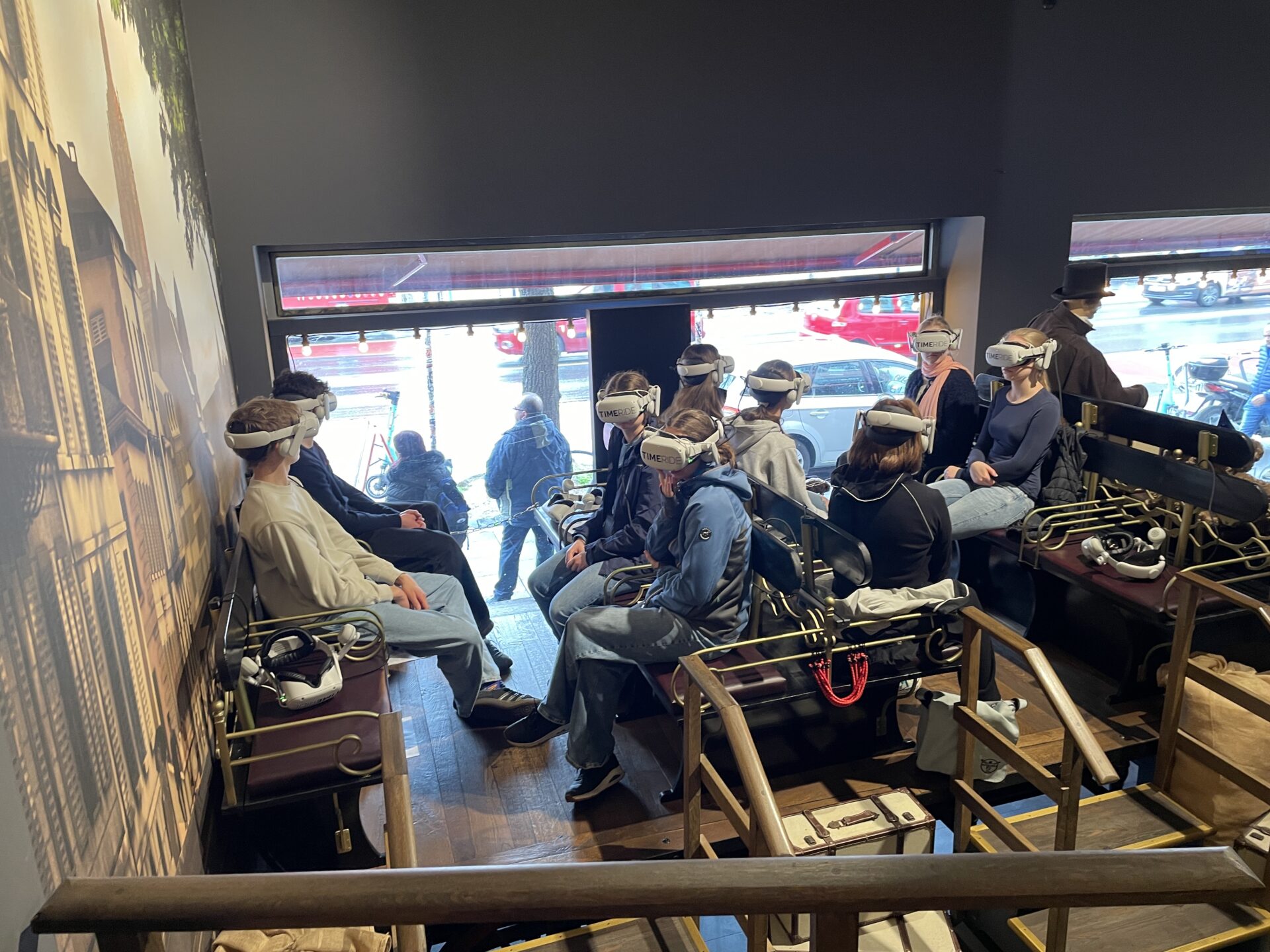Eine weitere besondere Erfahrung, die uns half, das historische Frankfurt besser zu verstehen, war eine VR-Tour durch das alte Frankfurt, bei der wir die Stadt aus der Perspektive einer Handelsfamilie im 19. Jahrhundert erlebten. Anfangs war diese Art der Führung für viele von uns etwas gewöhnungsbedürftig, da wir zuvor noch nie eine solche Tour gemacht hatten. Doch schnell lernten wir, in die virtuelle Welt der Vergangenheit einzutauchen und konnten so Frankfurt auf eine ganz neue Weise entdecken.