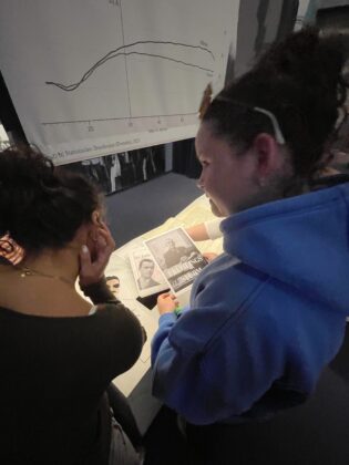 Unsere Ergebnisse haben wir dann dem Buddenbookhaus übergeben mit der Hoffnung darauf, dass diese in der Ausstellung ausgestellt werden. Am 9. Juli 2025 bekamen wir dann eine Führung durch die nun Ausstellung, bei der wir mit Staunen und nicht ohne Stolz erblickten, dass tatsächlich die Cover von Isa Sengül, Maya Puck, Elisa Phillipsen und Julian Byl Teil der Ausstellung sind.