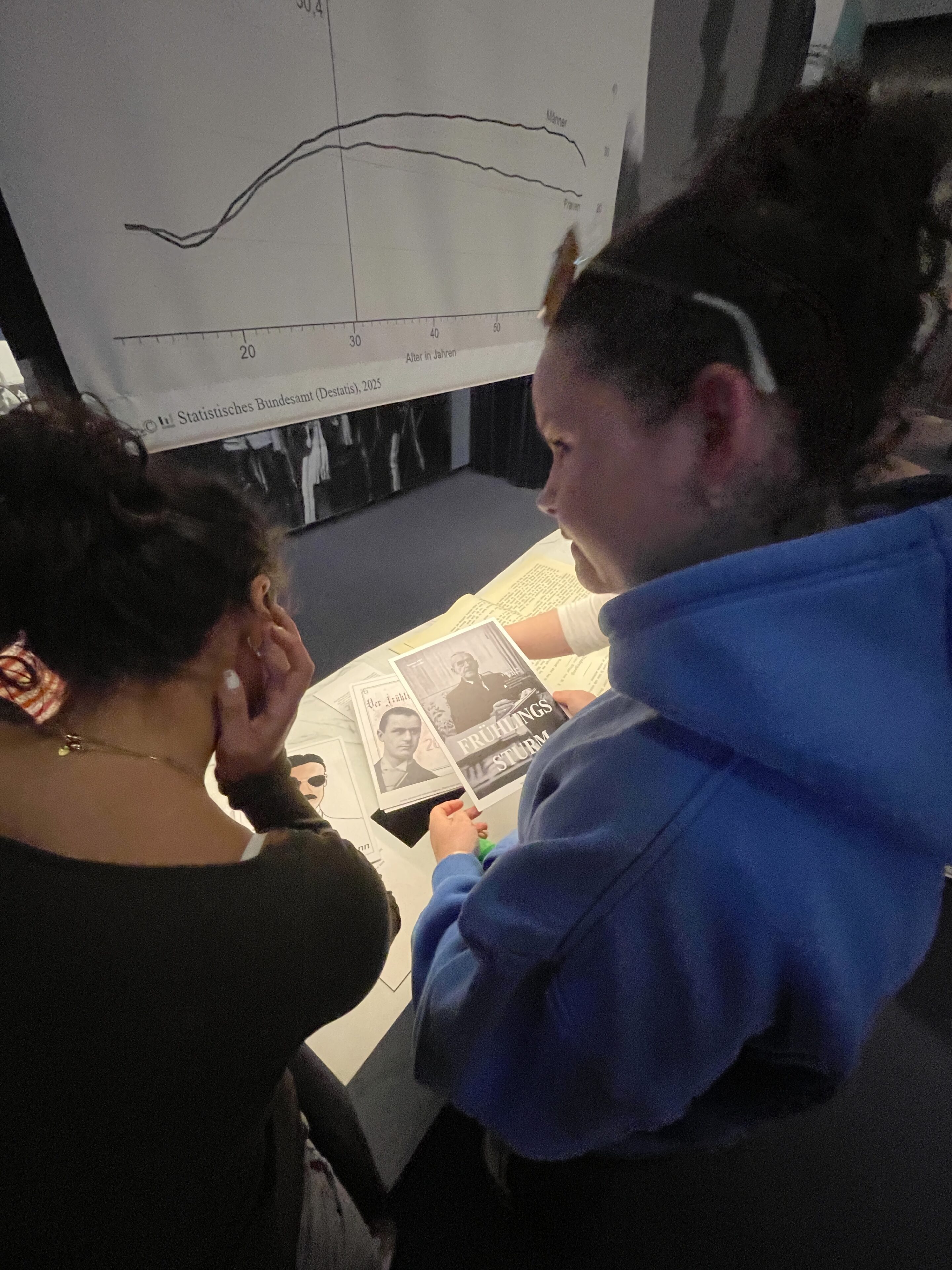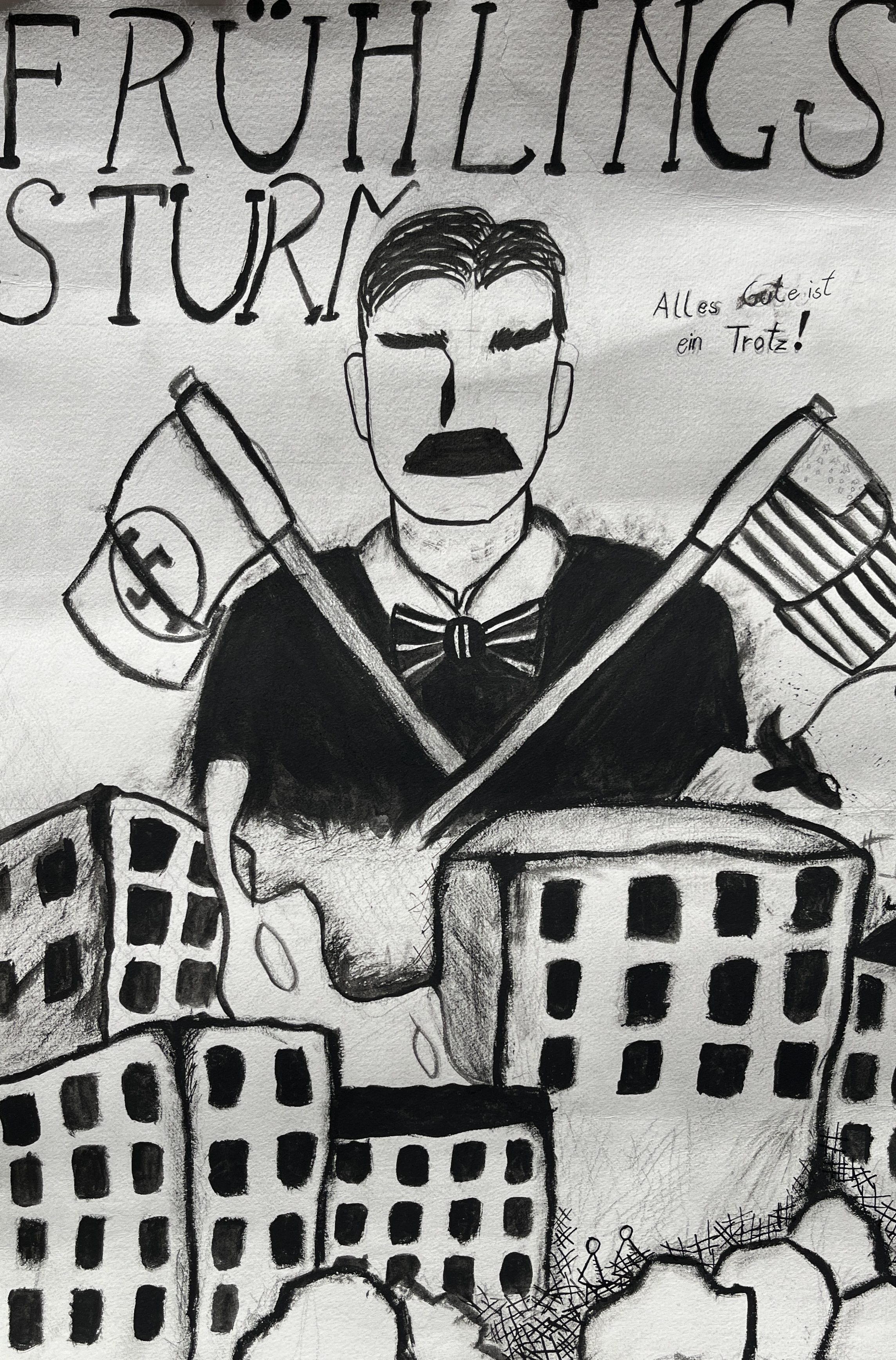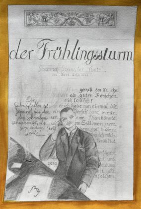 Unsere Aufgabe war es, einen „Frühlingssturm 2.0“ zu entwickeln und digital und analog umzusetzen. Frau Asmussen brachte uns dazu den Großen Dichter in Leben und Werk nahe und Frau Limbourg vom Buddenbookhaus vertiefte das Gelernte mit Anschauungsmaterial. So erhielten wir einen tiefen Einblick in sein Leben, in sein literarisches und politisches Arbeiten und darin, wie er seine Zeit prägte.