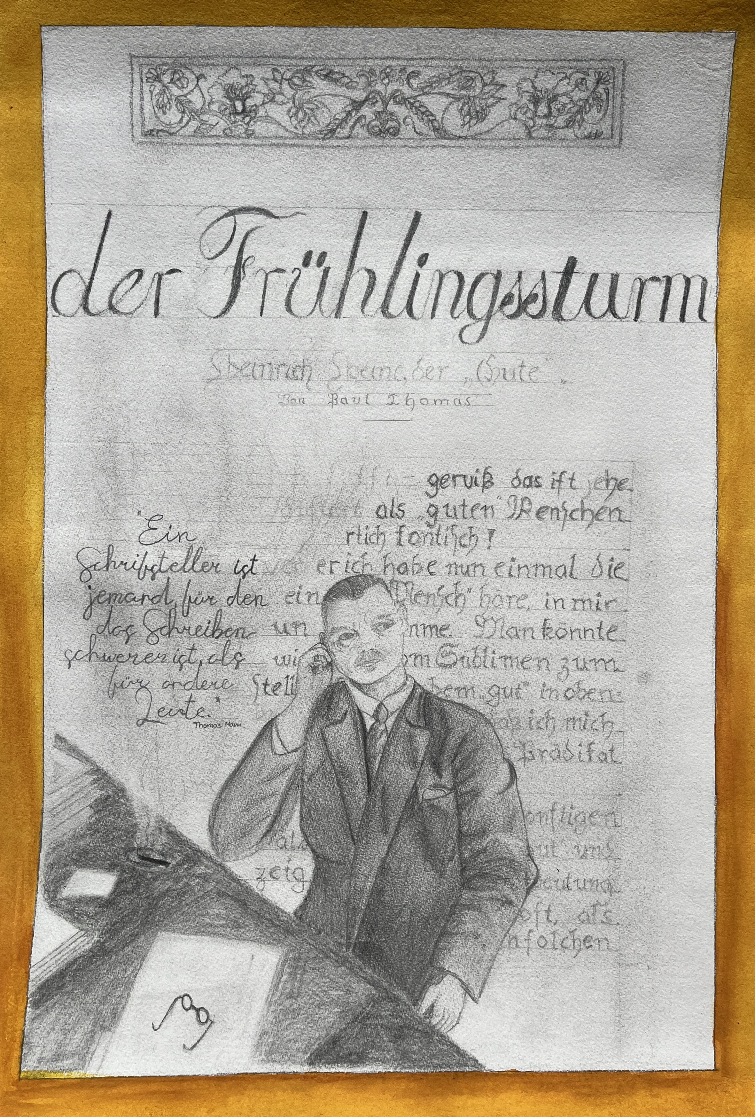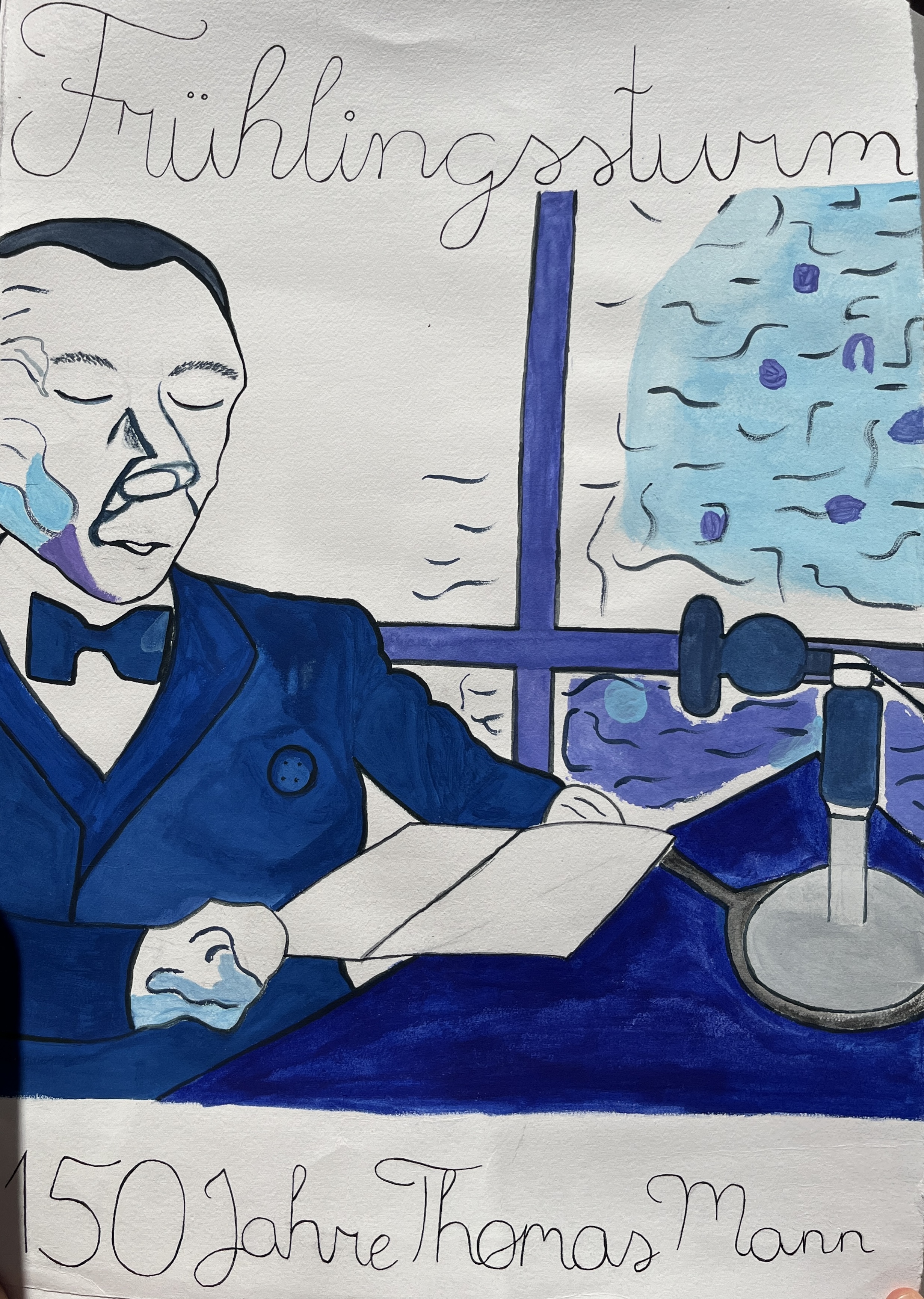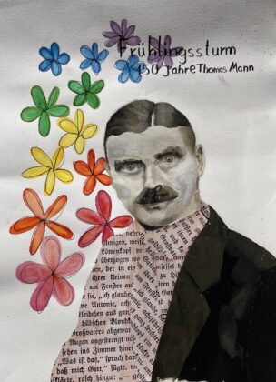 Anlässlich von Thomas Manns 150. Geburtstag haben wir als Kunstprofil mit Frau Asmussen Cover für eine (fiktive) Sonderausgabe des „Frühlingssturms“ erstellt und damit einen Beitrag zu der aktuell im St. Annen- Museum gezeigten Ausstellung „Meine Zeit. Thomas Mann und die Demokratie“ geleistet.