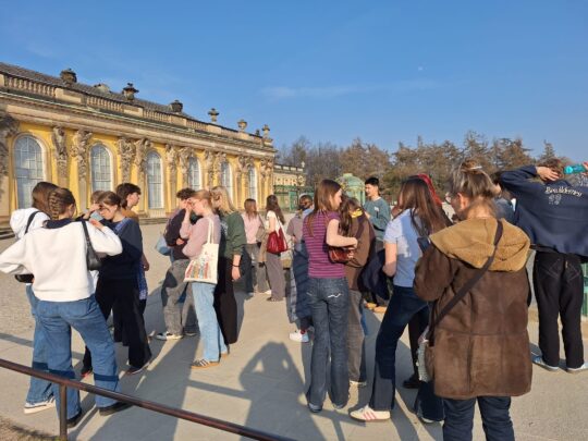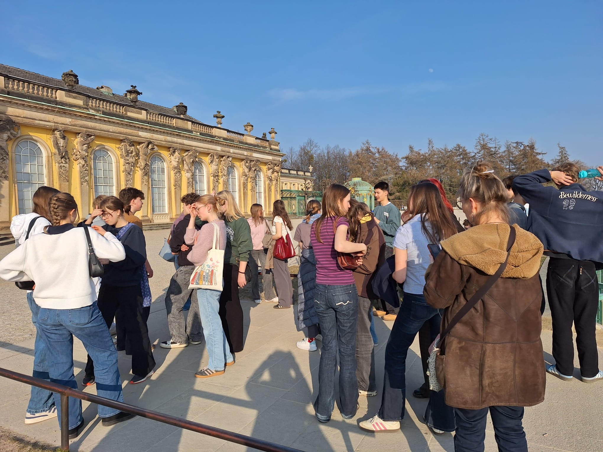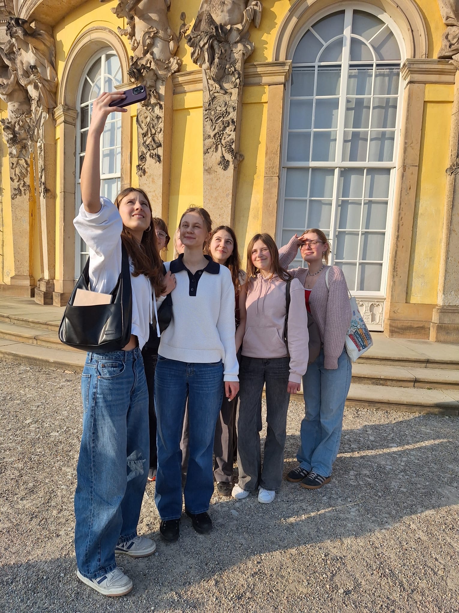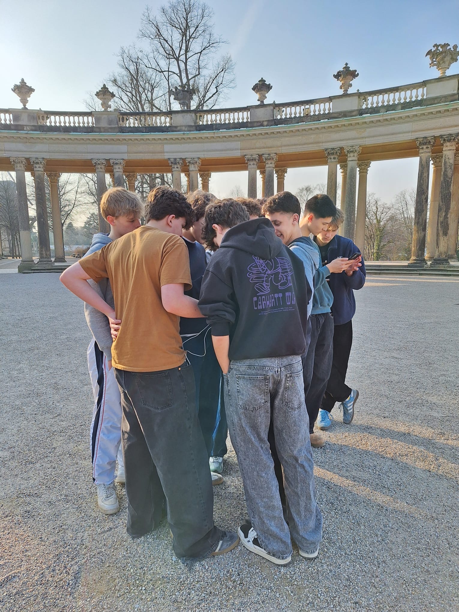 Nachdem wir unsere Zimmer erkundet und unsere Betten bedeckt hatten, ging es für uns in den Schlossgarten des berühmten “Sanssouci” (was übersetzt auf Deutsch so viel, wie “ohne Sorgen” bedeutet). Dort machten wir in Kleingruppen mithilfe einer App namens Action Bound eine kleine Schlossgartenrallye. Das wunderschöne sonnige Wetter ließ das ganze noch hübscher wirken. Anschließend gingen wir zurück zur Jugendherberge, aßen zu Abend und gingen ins Bett.