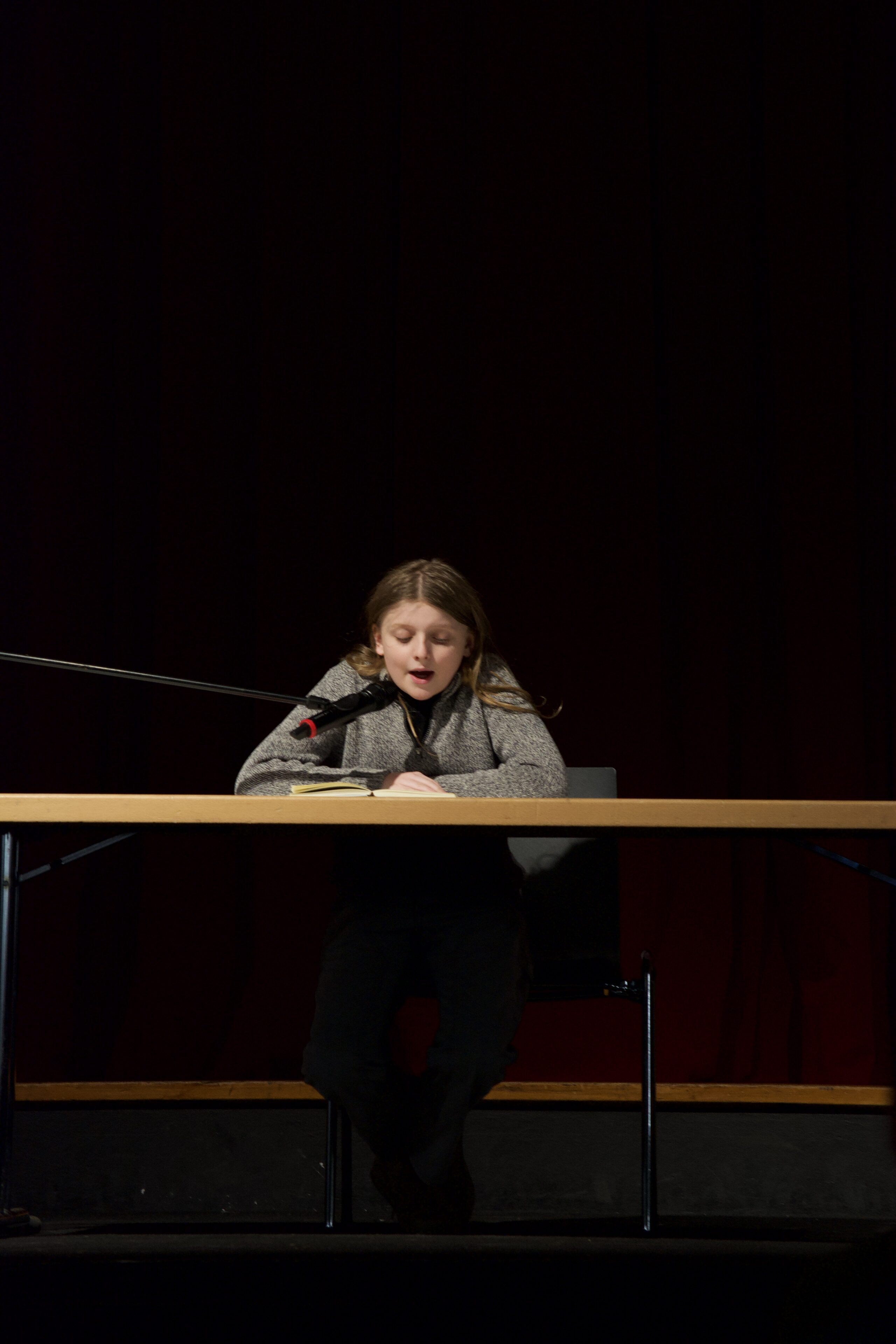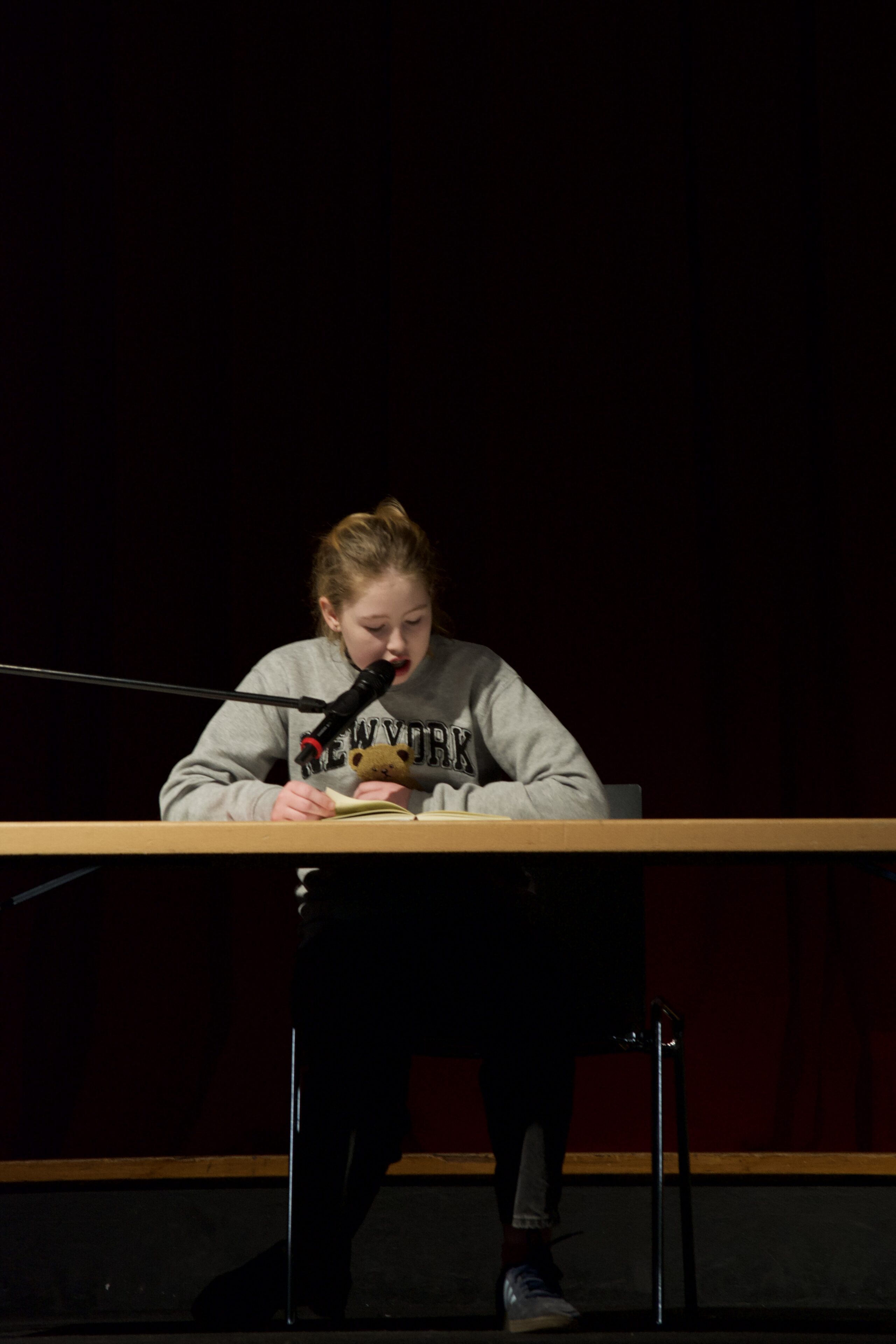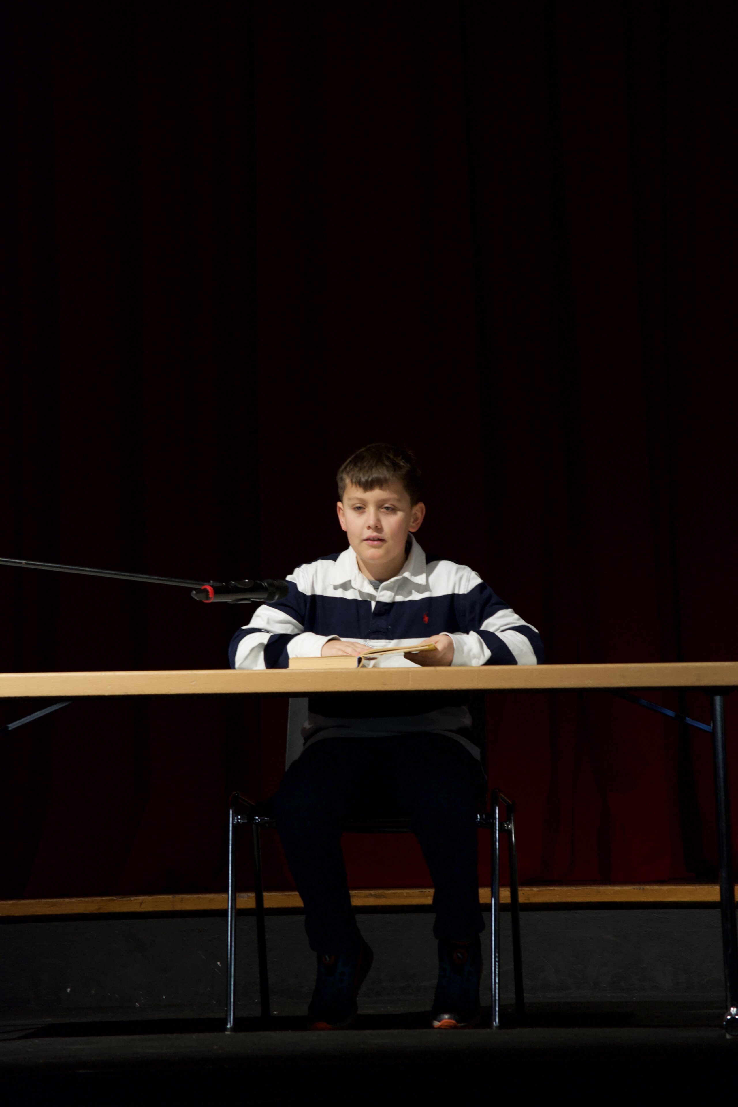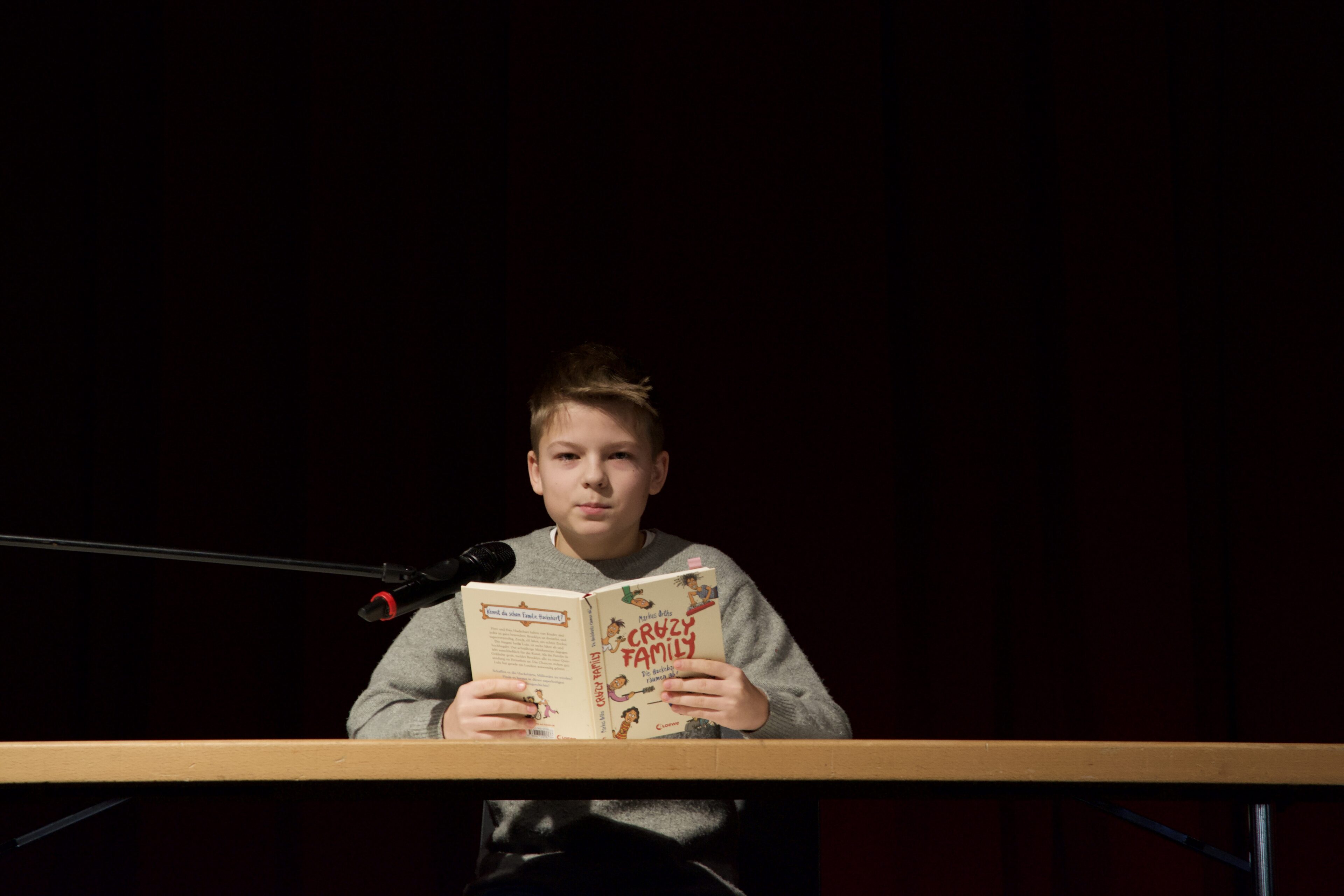 „Schockschwerenot“ und „Himmelsapperlott“ sorgten am vergangenen Mittwoch in der Aula für aufmerksames Zuhören: Der alljährliche Vorlesewettbewerb der sechsten Klassen stand wieder auf dem Programm. Nach einer weihnachtlichen Ansprache von Frau Müschen waren Publikum und Teilnehmende bestens auf einen besonderen Vormittag eingestimmt.