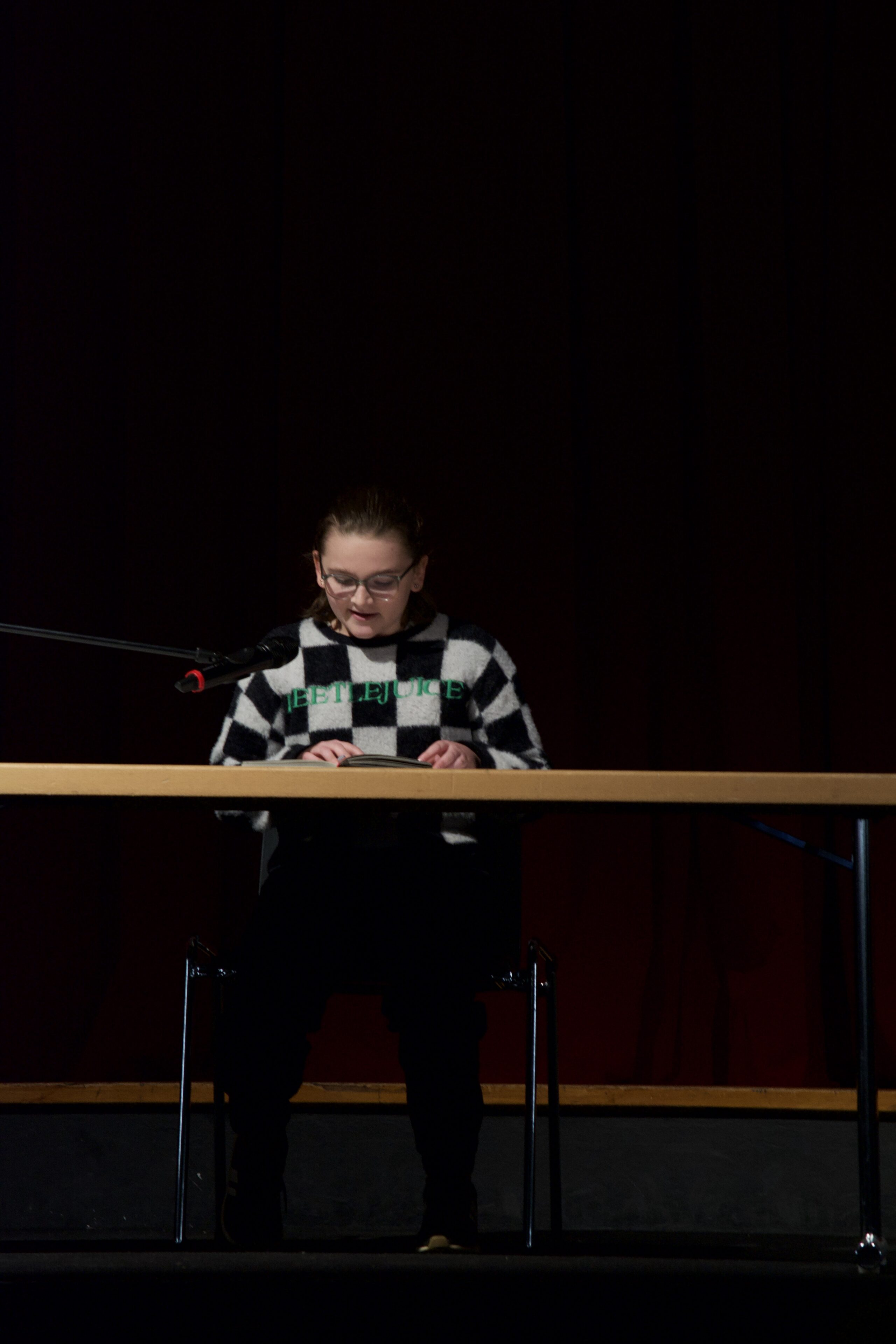 Auch die übrigen Teilnehmenden zeigten starke Leistungen: Paulina Gottschewski (6a), Jette Neumann und Merle Klages-Sprenger (6b) sowie Matti Düring und Oda Spielmann (6d) trugen ihre Texte sicher vor und erhielten dafür großen Applaus.