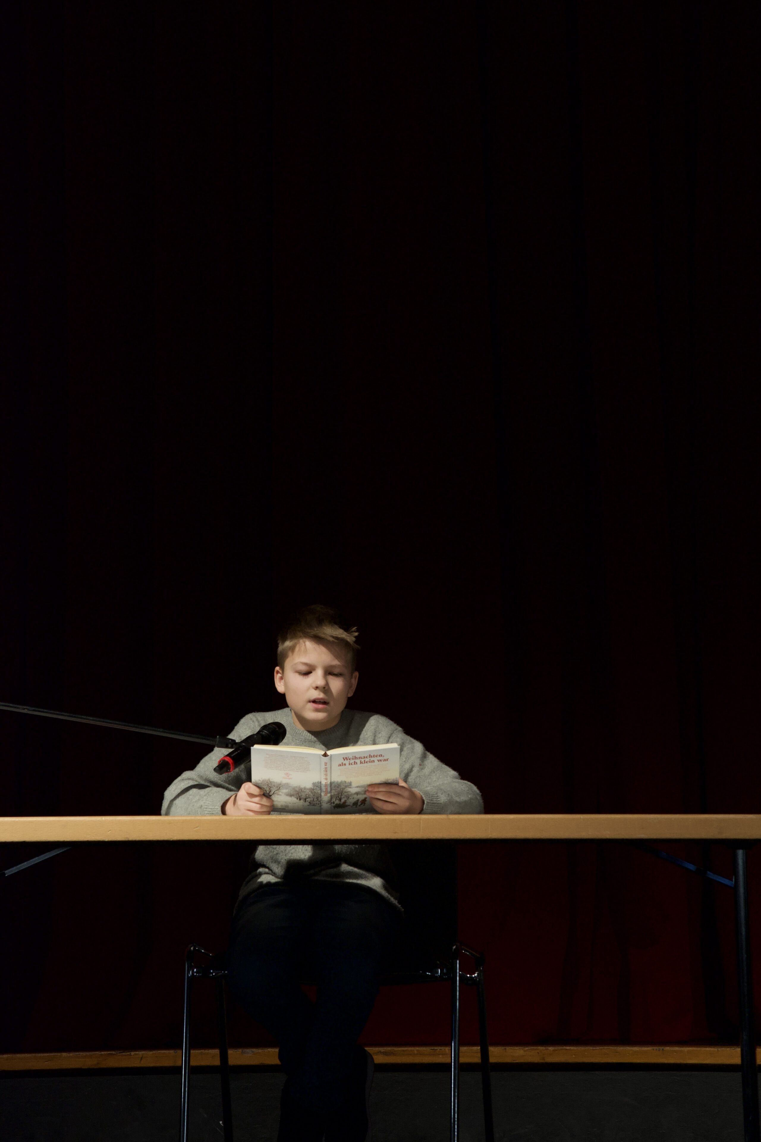 Am überzeugendsten meisterte diese Aufgabe Arthur Brabant aus der 6c. Mit einem Ausschnitt aus „Glennkill“ von Leonie Swann zeigte er eine außergewöhnlich starke Ausdruckskraft. Dafür wurde er mit dem ersten Platz ausgezeichnet und wird unsere Schule beim Stadtentscheid vertreten! Den zweiten Platz erreichte Valentin Rackwitz aus der 6a, den dritten Lou Nürnberg aus der 6c, die sich beide über einen Buchpreis als Anerkennung freuen konnten.
