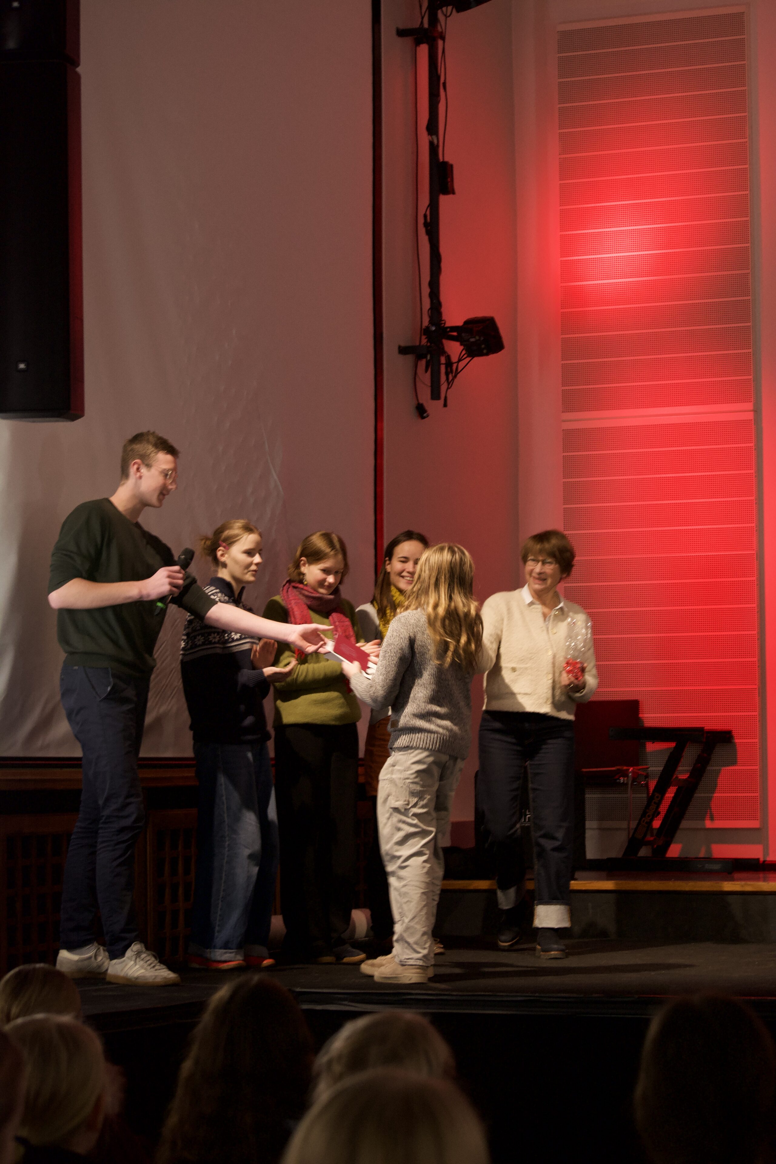 Über die Platzierungen entschied die Jury aus dem Q1-Jahrgang bestehend aus Helene Maetzel, Jacob Pritzkuleit, Charlotte Grundey und Lilly Staude. Während die Jury sich zur Beratung zurückzog, sorgte Herr Albert mit gemeinsamen Weihnachtsliedern für eine entspannte und fröhliche Atmosphäre in der Aula.