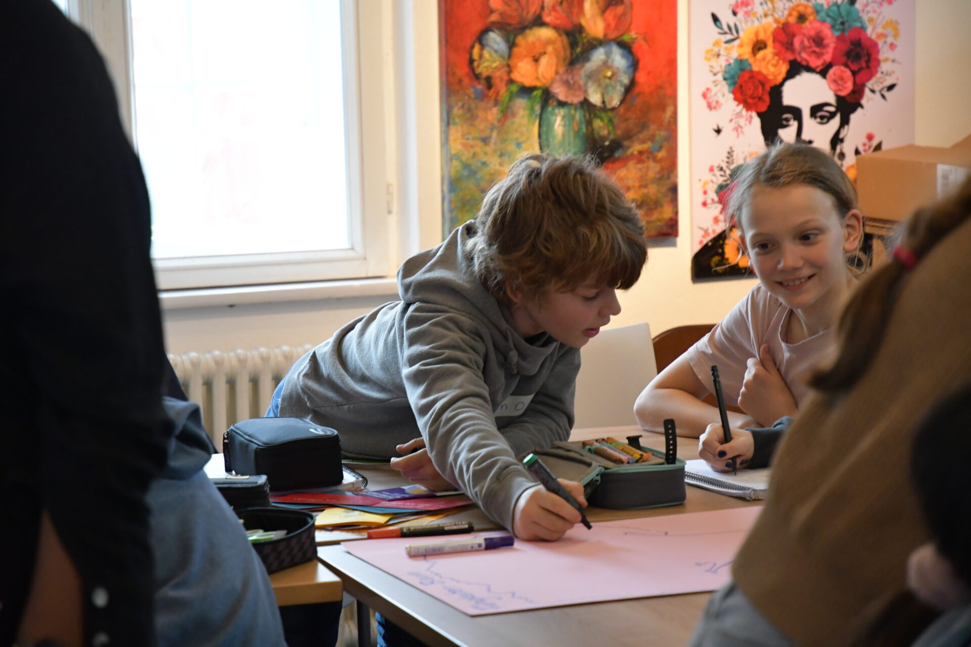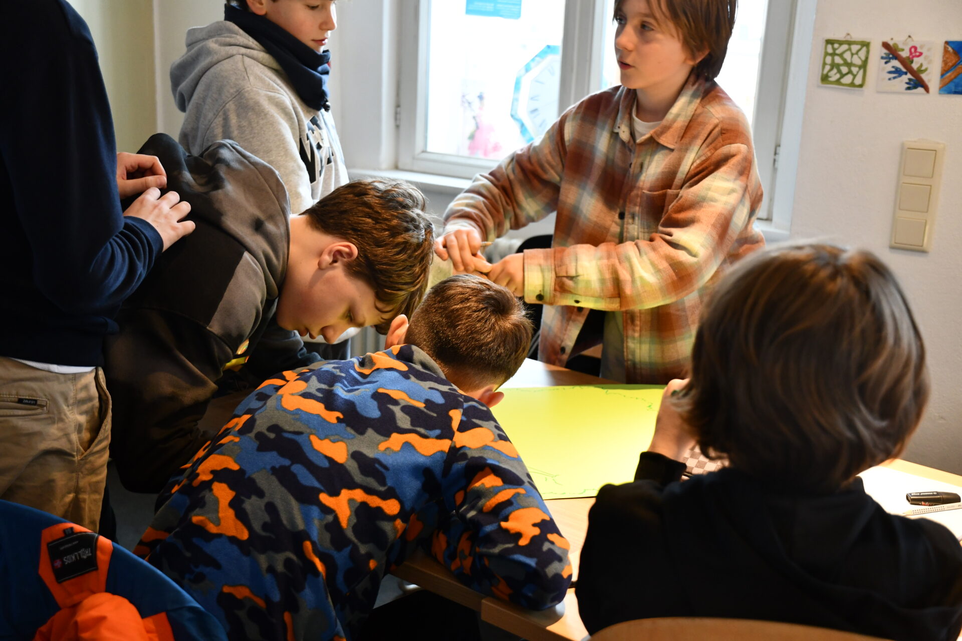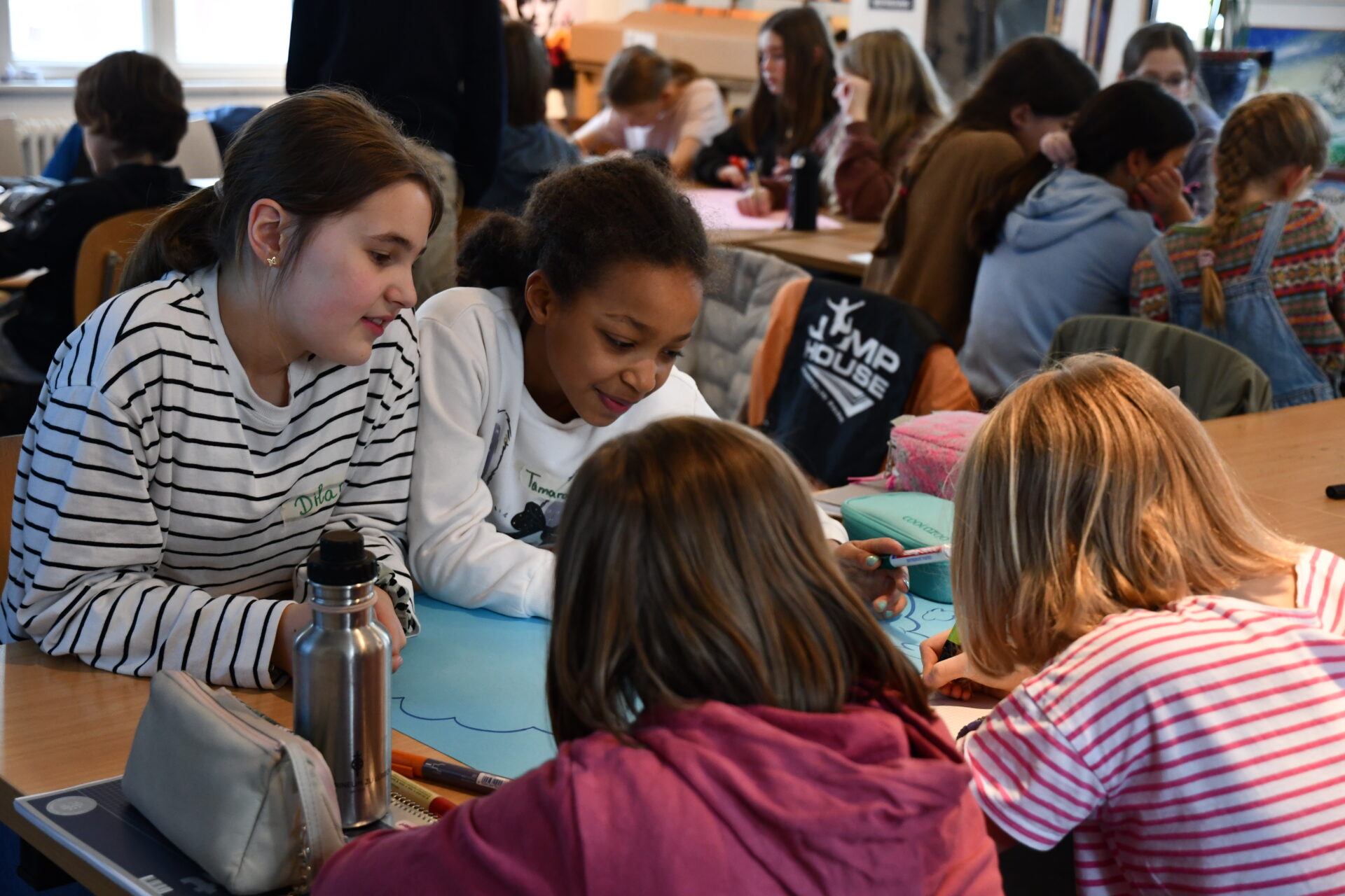 Zwar waren einige Wörter sehr anspruchsvoll, doch durch viele Beispiele und ausdrücklich erwünschte Fragen wurde auch die schwierigste Formulierung von den aufmerksam Zuhörenden geknackt. Zwischendurch gab es auch immer wieder interaktive Teile, in denen die Kinder mitteilen konnten, was sie schon wussten. Frau Yeboah und Frau Klüver freuten sich deutlich über die Antworten zu diesen Fragen, denn viele aus der 5a hatten schon tolle Ideen und ein großes Repertoire an Vorwissen, und auch von neugierigen Nachfragen blieben die Workshopleiterinnen nicht verschont.