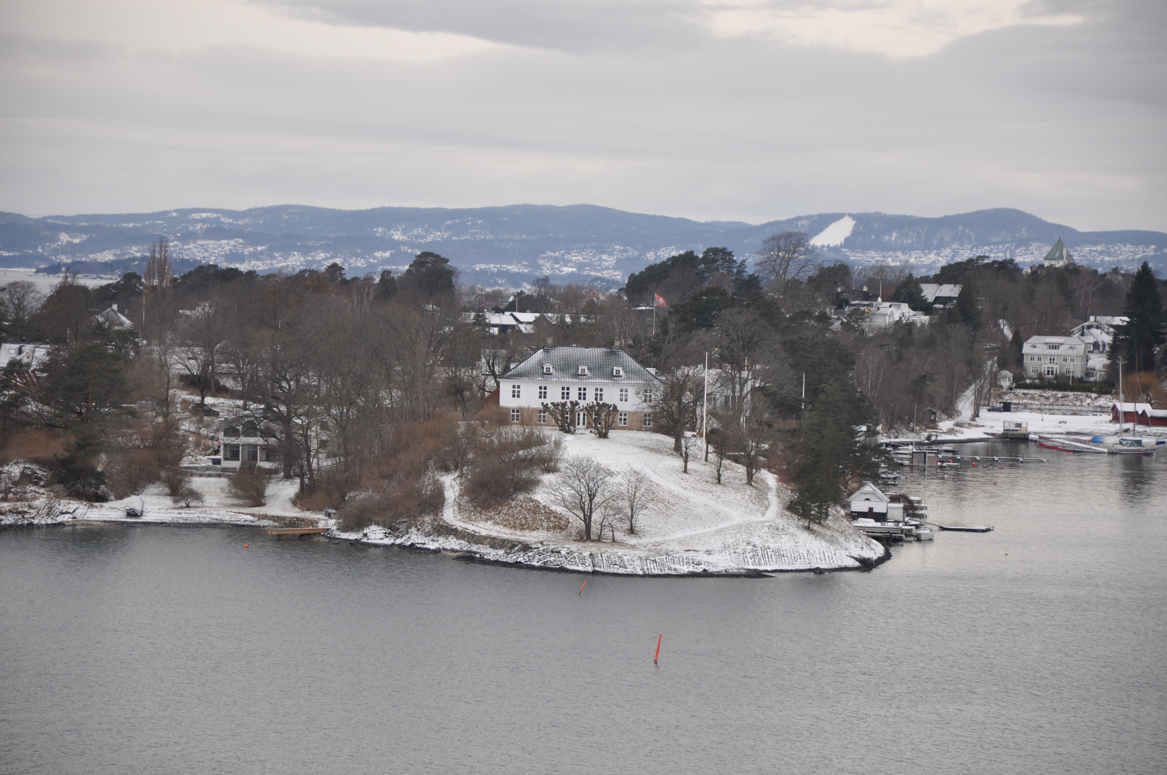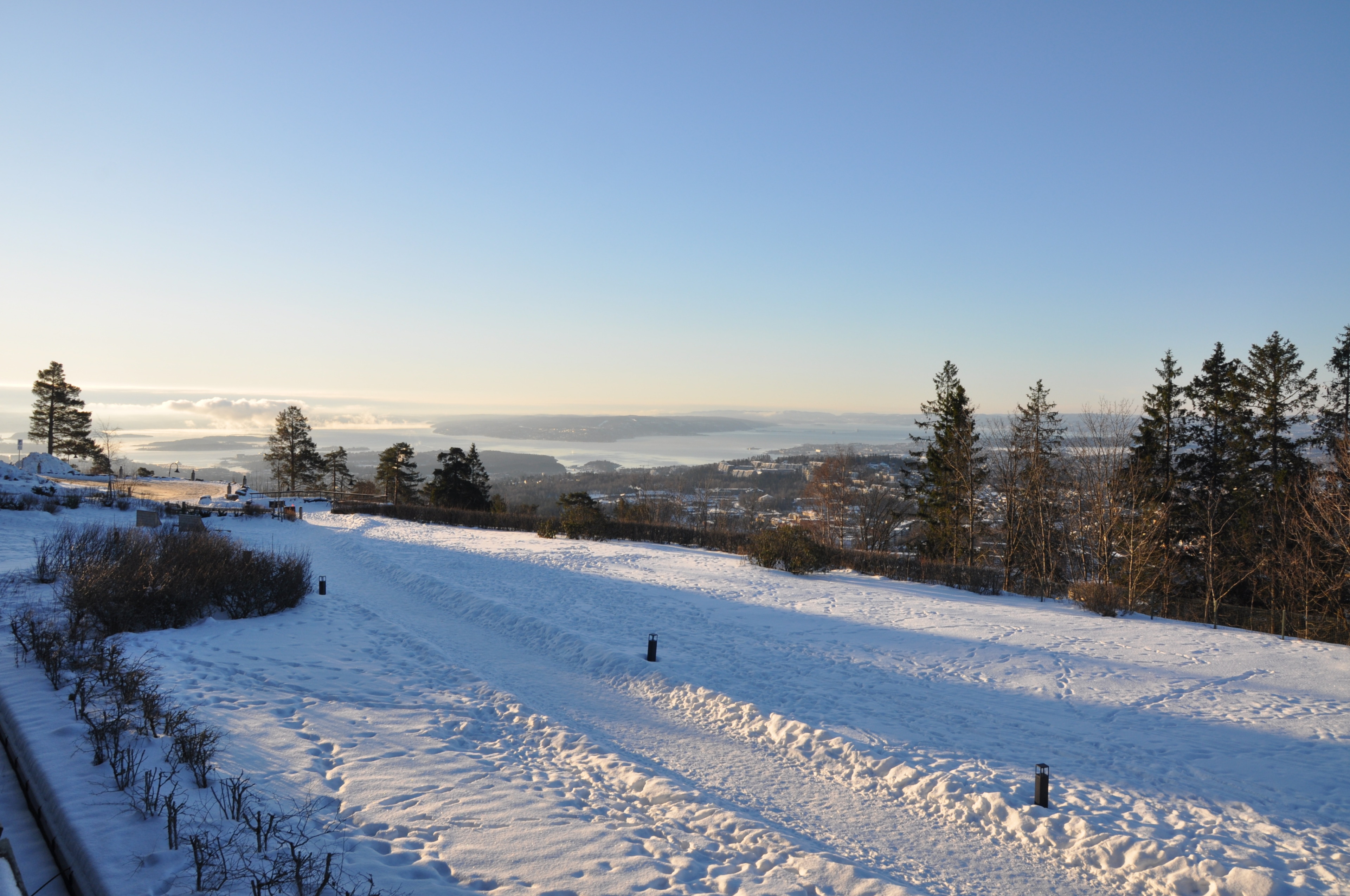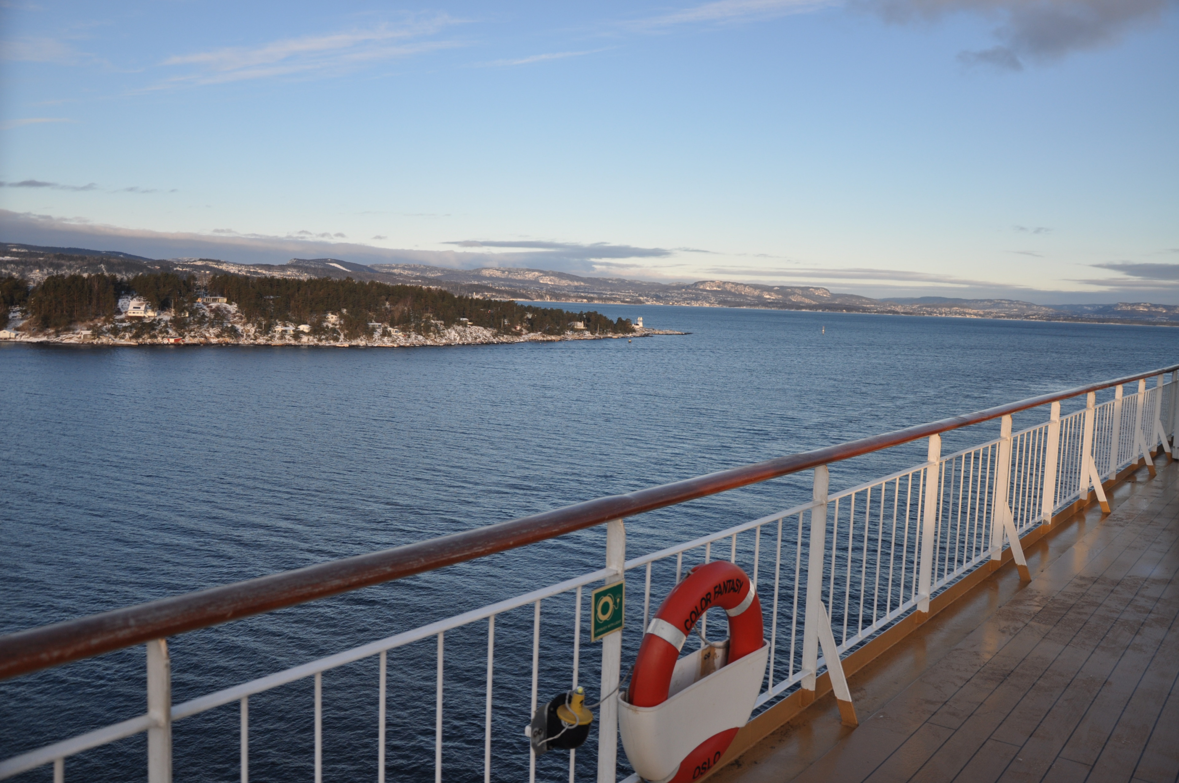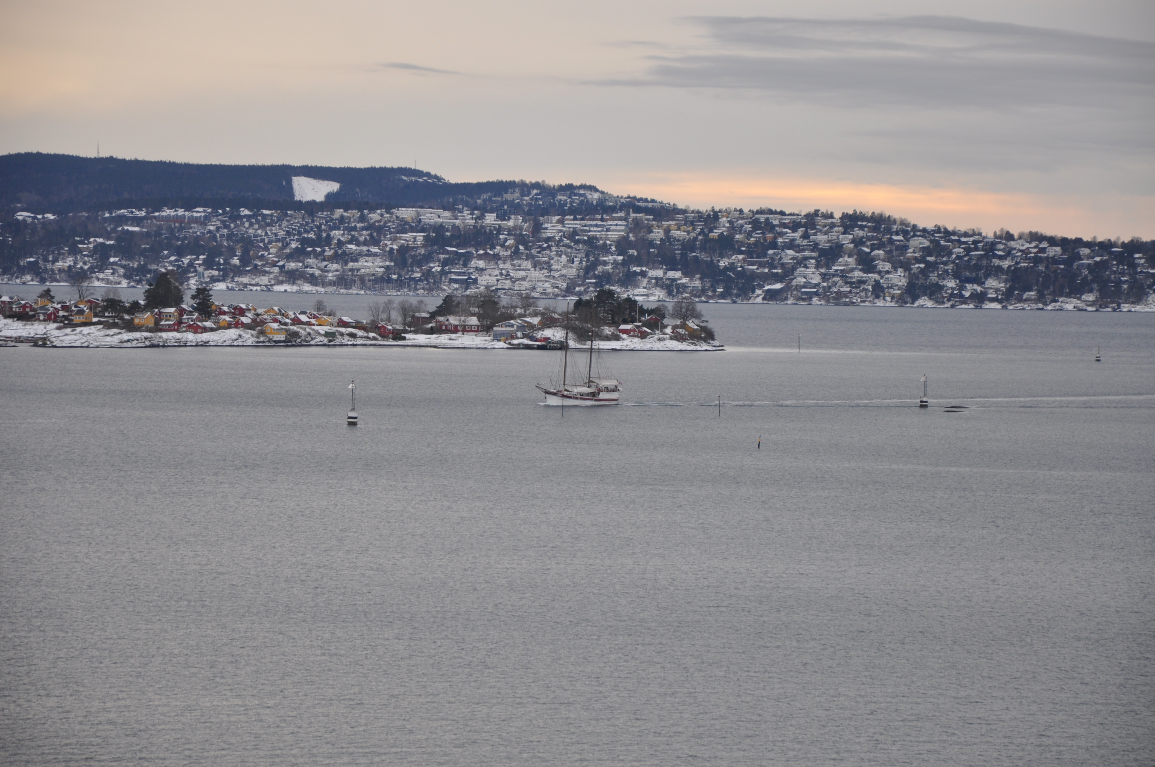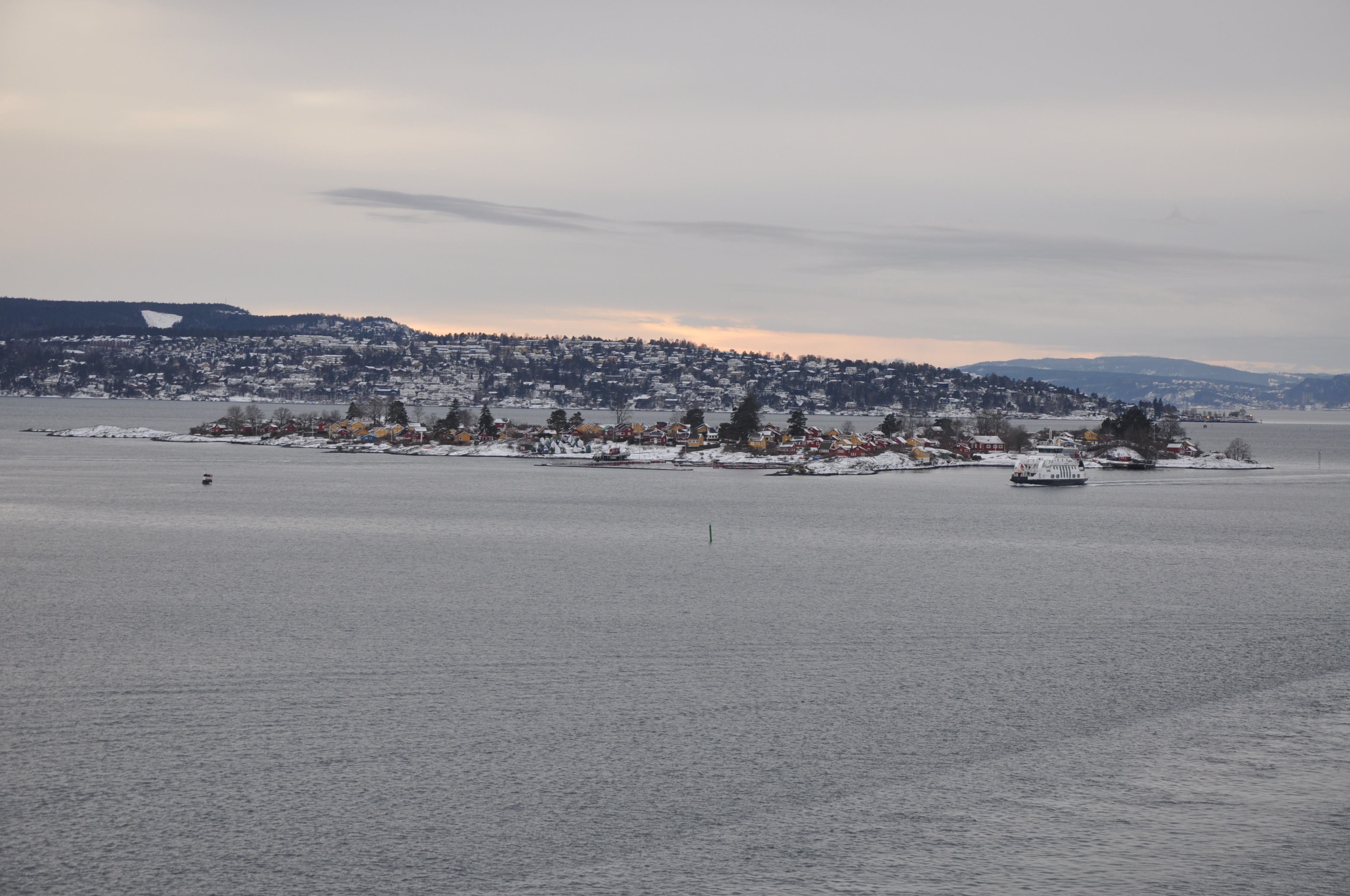 Es ist morgen, die Temperaturen liegen gerade bei -17° und der Himmel ist stahlblau. Der Blick auf den Oslofjord, den wir haben, kann auf keiner Postkarte schöner sein.