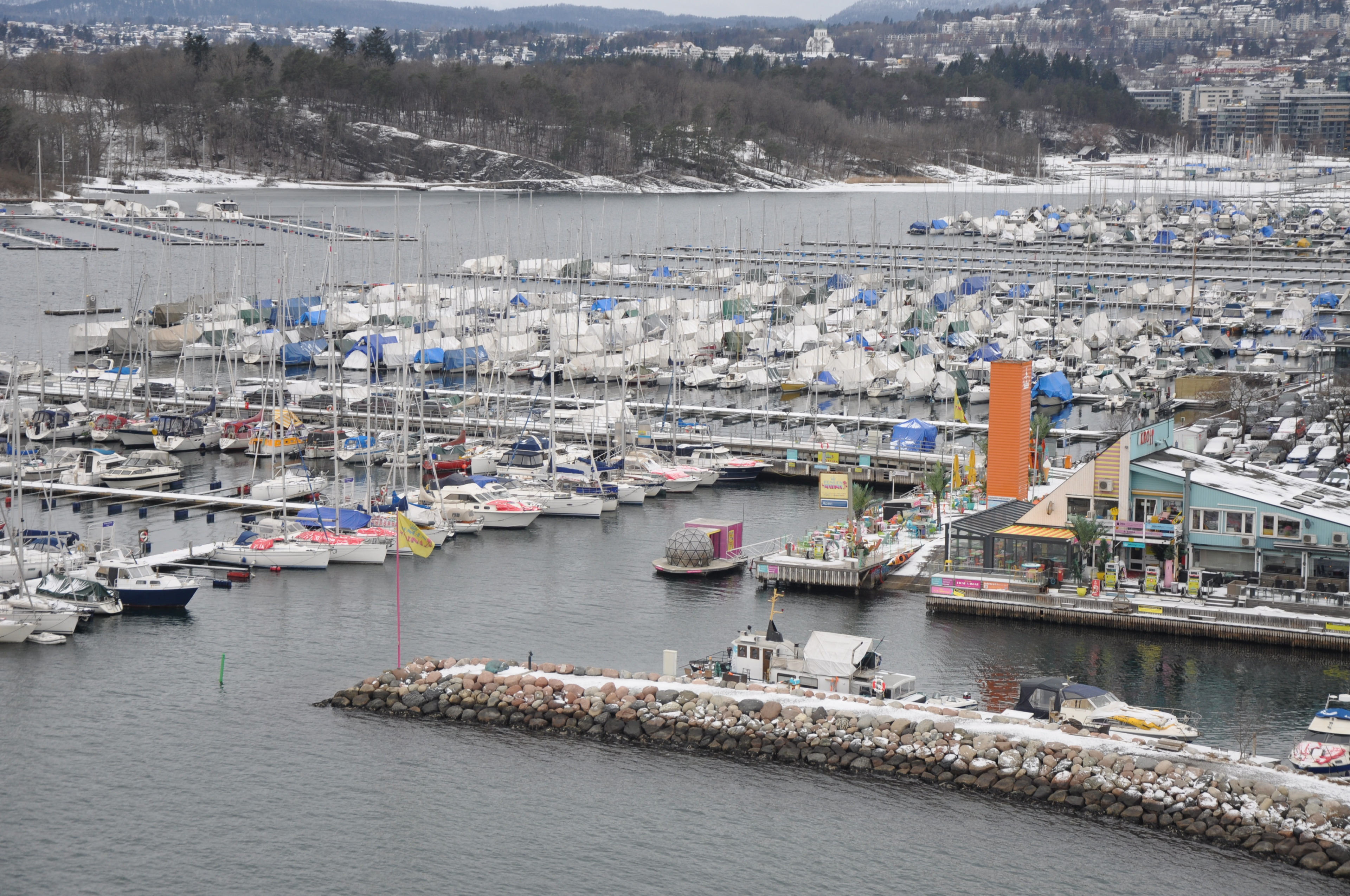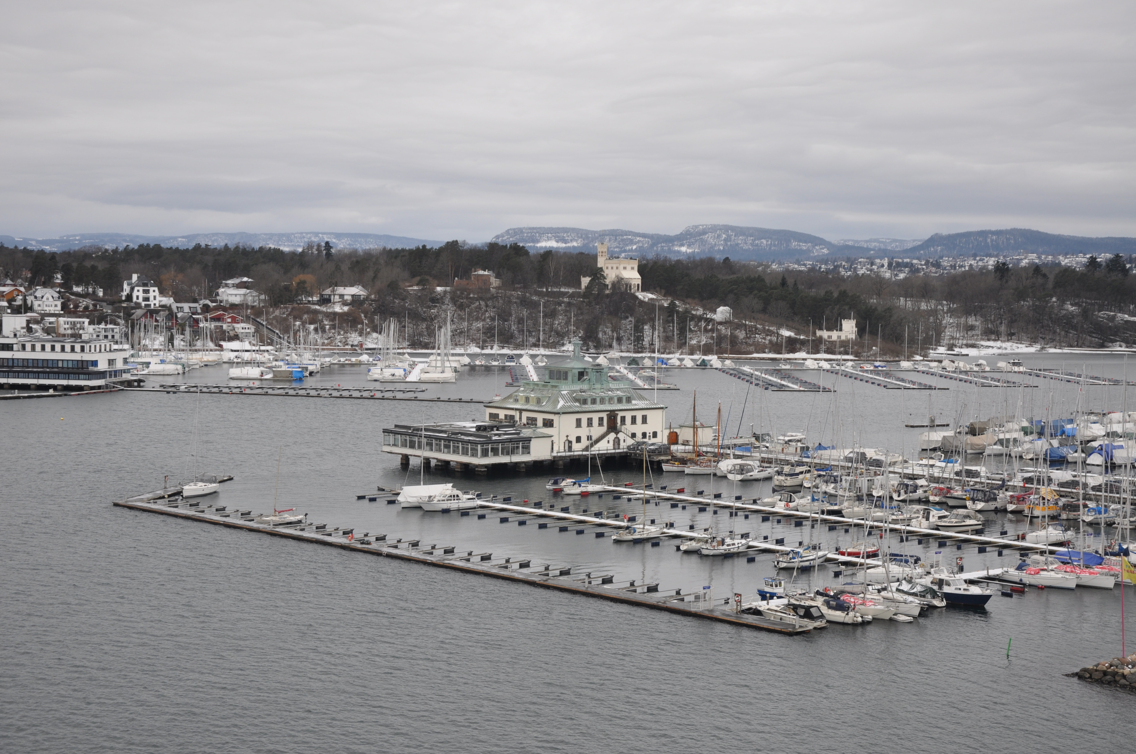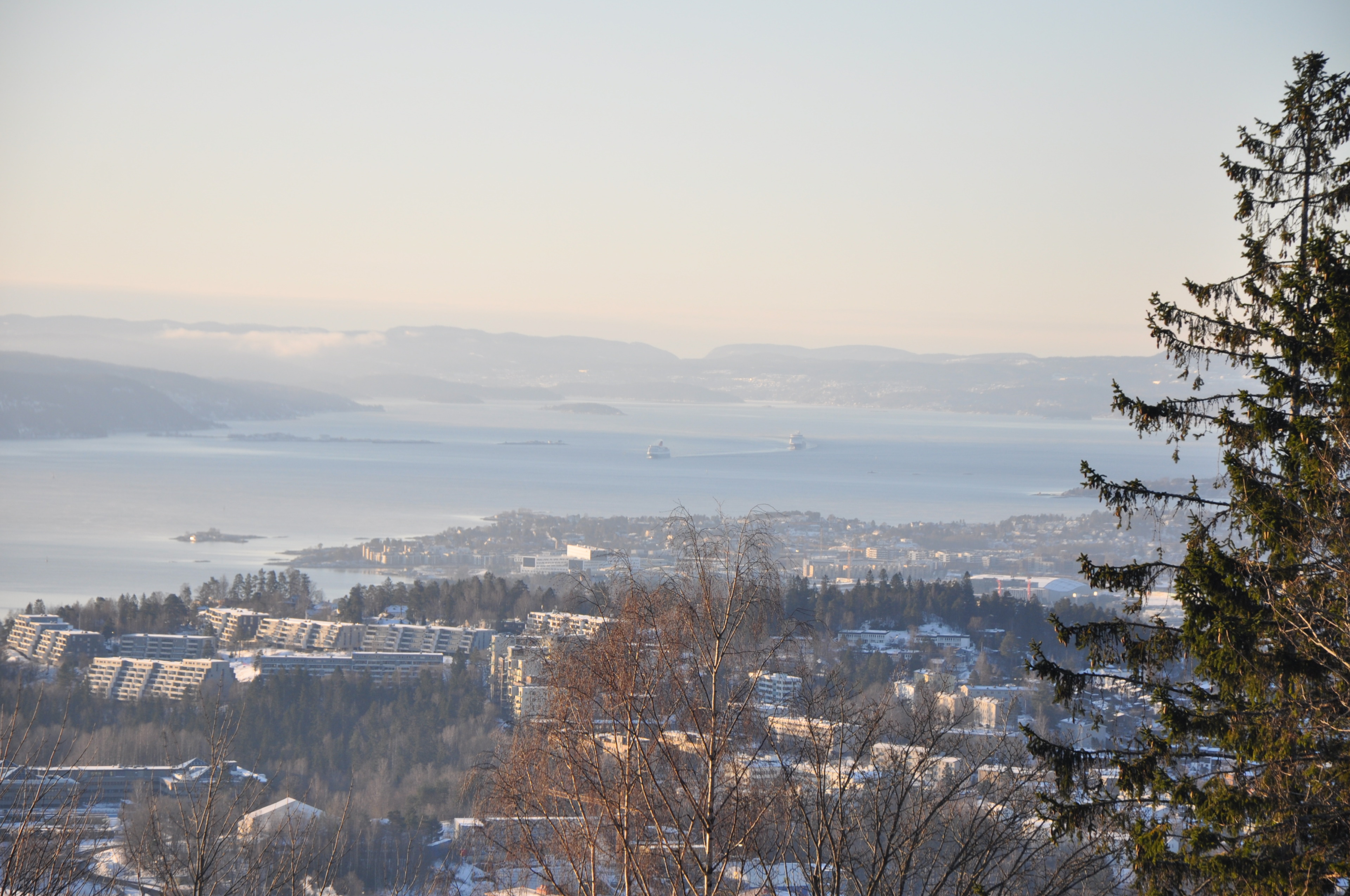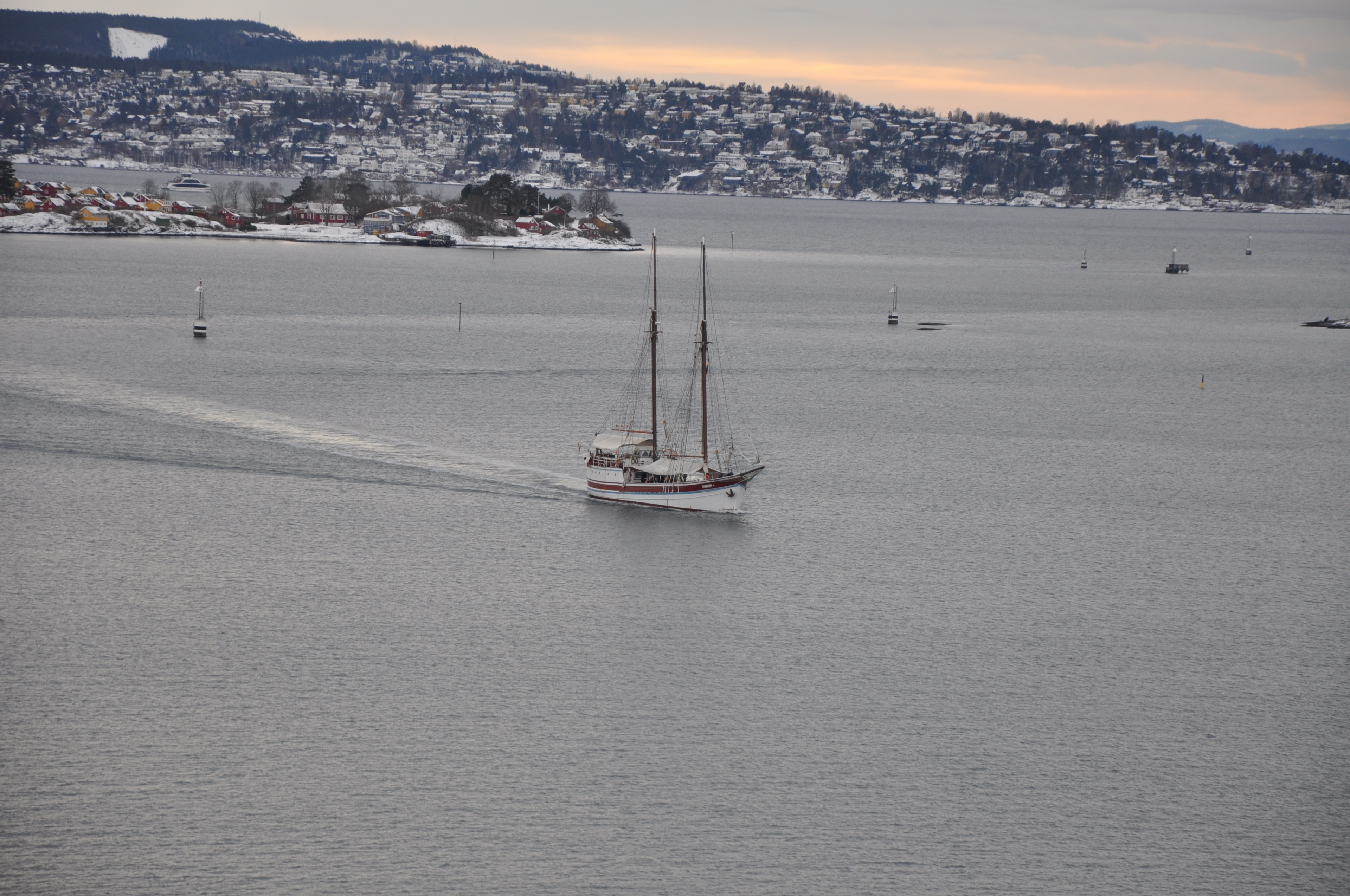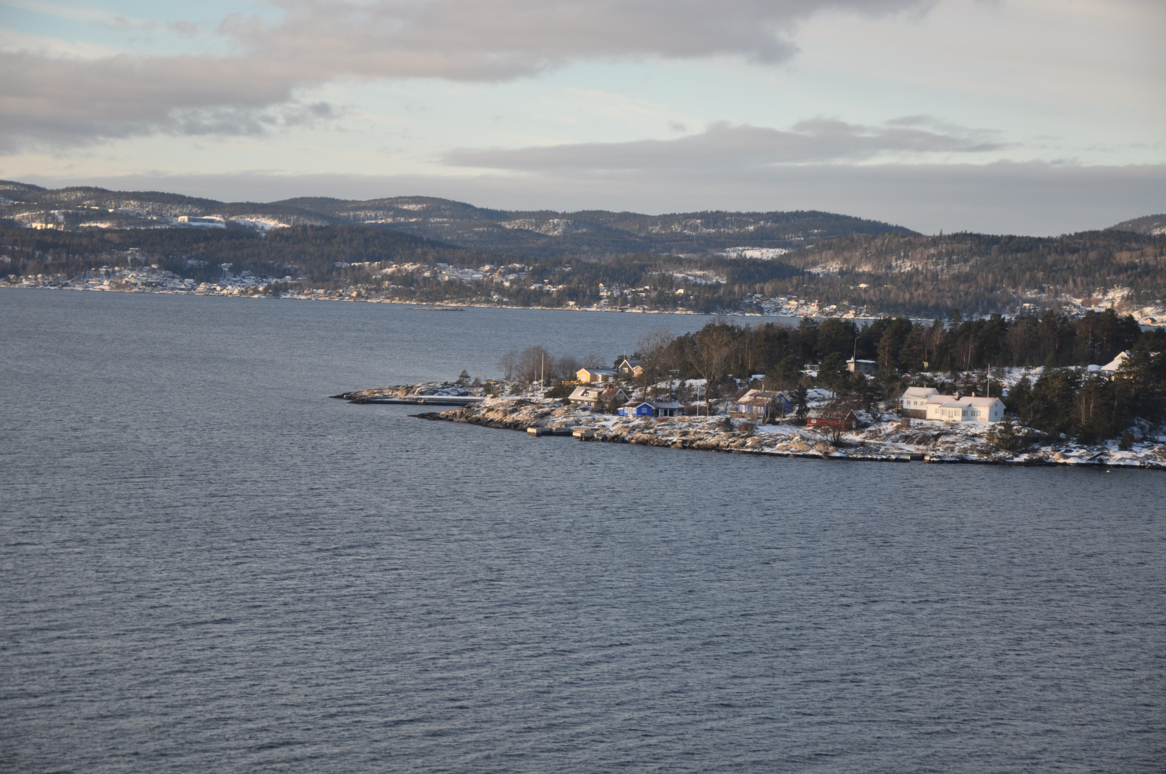 Es ist morgen, die Temperaturen liegen gerade bei -17° und der Himmel ist stahlblau. Der Blick auf den Oslofjord, den wir haben, kann auf keiner Postkarte schöner sein.
