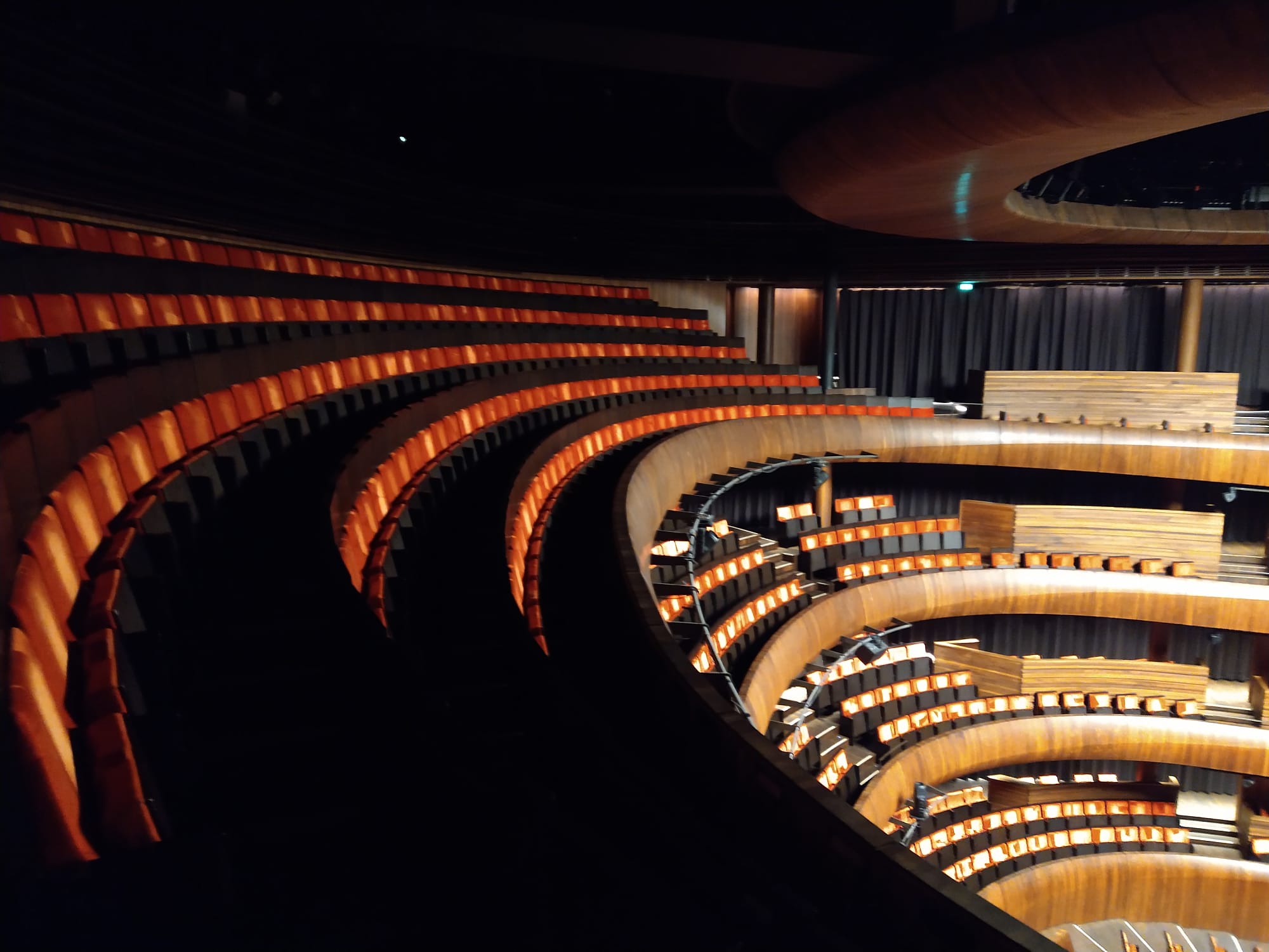 Danach unternahmen wir dann den Besuch in der Oper mit zwei deutschsprachigen Führungen. Ein Gebäude, das in ein ehemaliges Industriegebiet direkt ans Wasser des Hafens gebaut ist und in vielen Elementen aussieht, wie ein im Wasser versinkender Eisberg. Innen weiß aus Carrara-Marmor, ein Gebäude, das sich mit sehr vielen, sehr großen Fensterflächen sehr nach außen öffnet und als besonderen Akzent mit einer großen runde Sichtwand aus heller Eiche gegen den Theatersaal abgrenzt.
