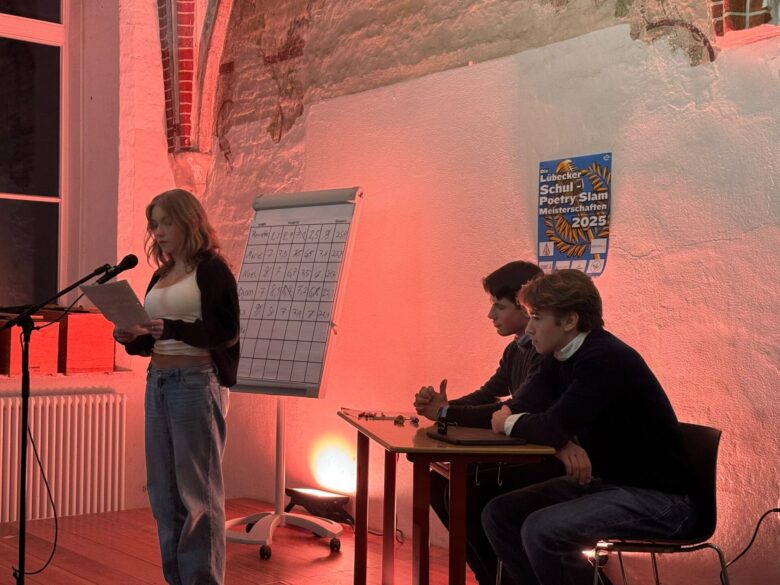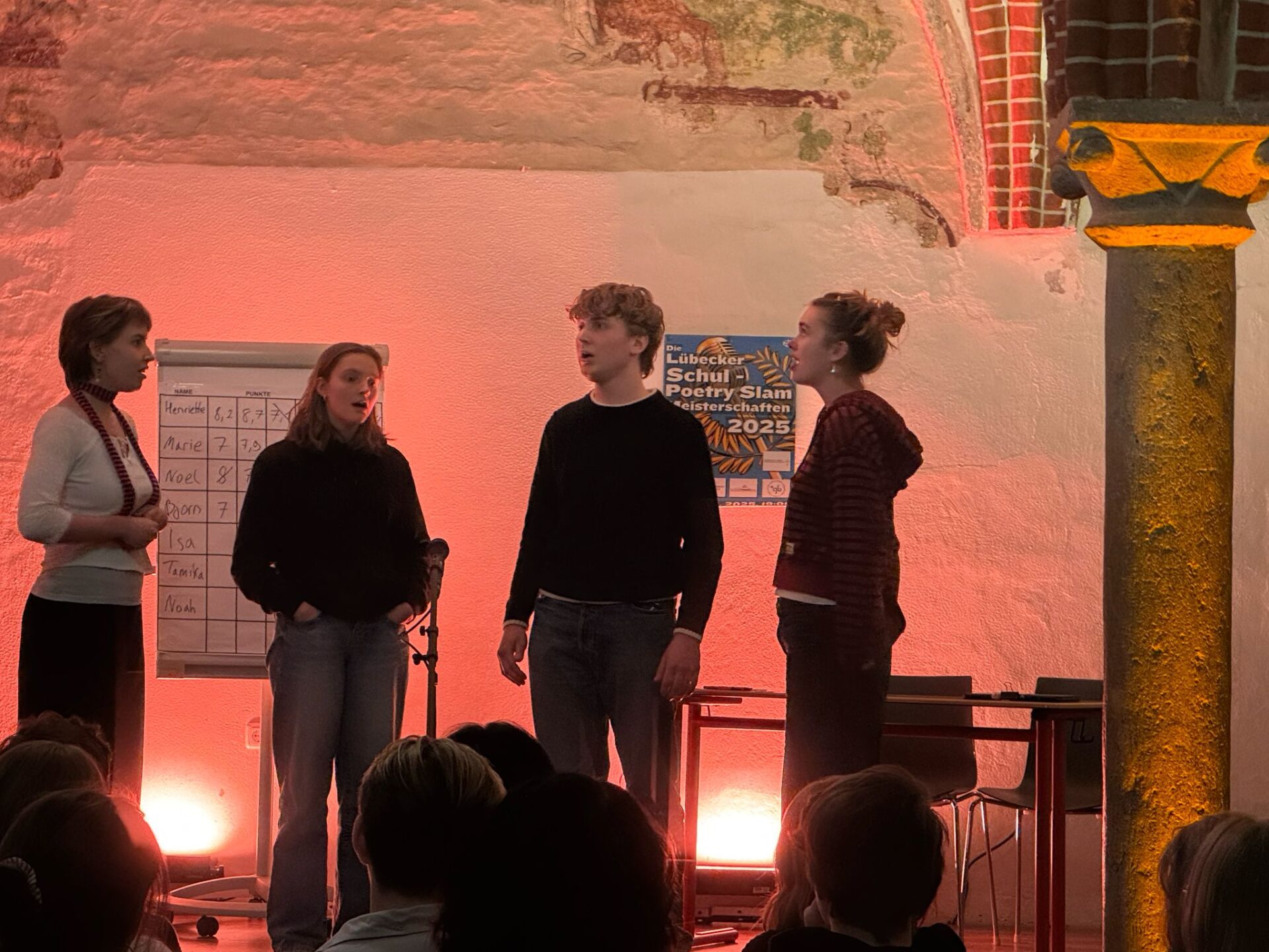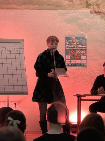 In der Zwischenrunde traten die drei besten Slamer:innen erneut gegeneinander an. Doch nur zwei von ihnen konnten sich für die Stadtrunde am 5. Juni 2025 im Schuppen 6 qualifizieren. Dort werden sie gegen die Gewinner:innen der anderen Lübecker Schulen antreten.