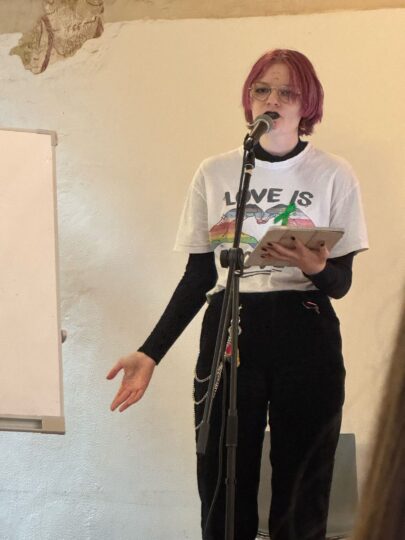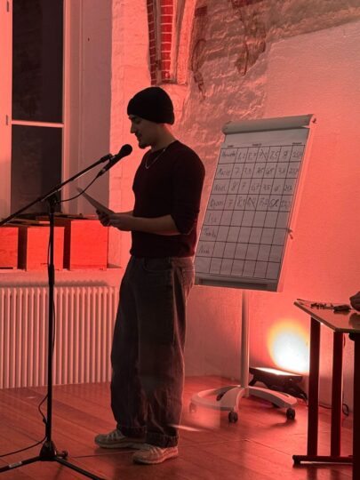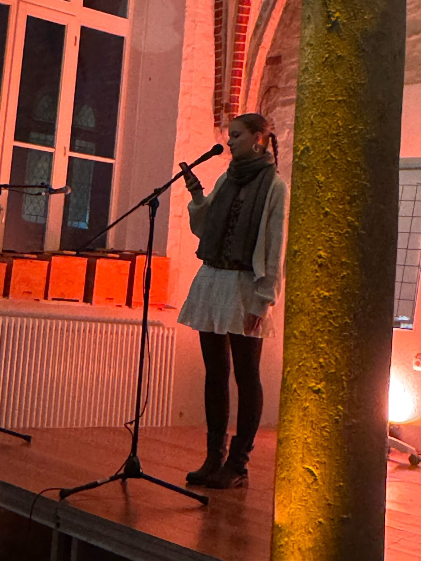 In diesem Jahr traten sieben Slamer:innen auf, die ihre selbst verfassten Texte präsentierten. Jeder Beitrag war auf seine eigene Weise besonders, denn sie behandelten ganz unterschiedliche Themen und waren allesamt selbst gedichtet. Zwischen Liebesgedichten und humorvollen Anekdoten aus dem Alltag war alles dabei. Das Campingerlebnis als Multikulti-Erlebnis von Isa oder die fast wissenschaftliche Analyse eines Sandwiches seien hier stellvertretend erwähnt.