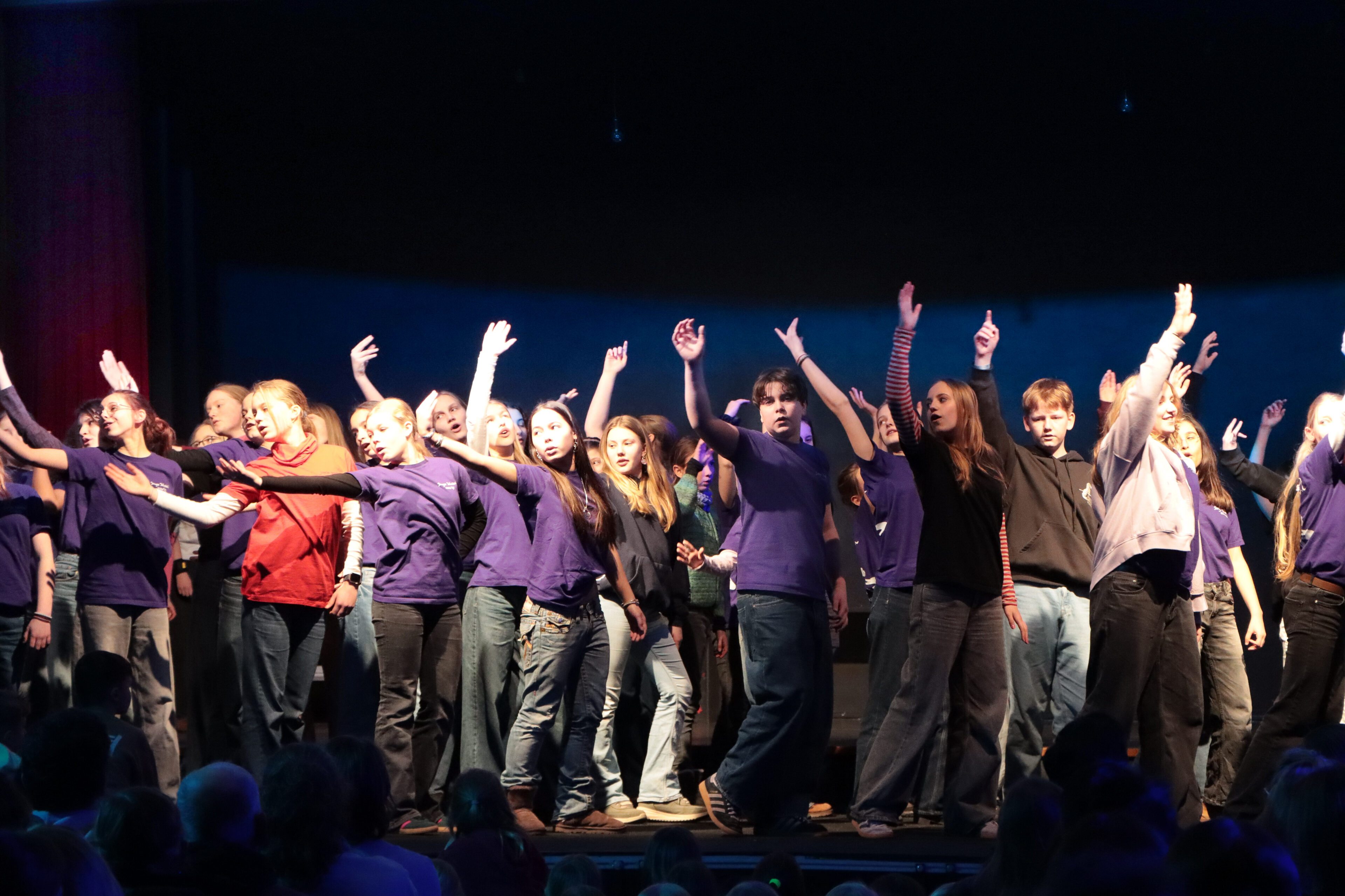 Dann öffnete sich der Vorhang für das Kleine Musical. Mit Gesang und Tanz wurde das Motto „Wir sind ein Team“ lebendig umgesetzt, und die Viertklässler/innen konnten sehen, wie viel Freude gemeinsames Arbeiten macht.