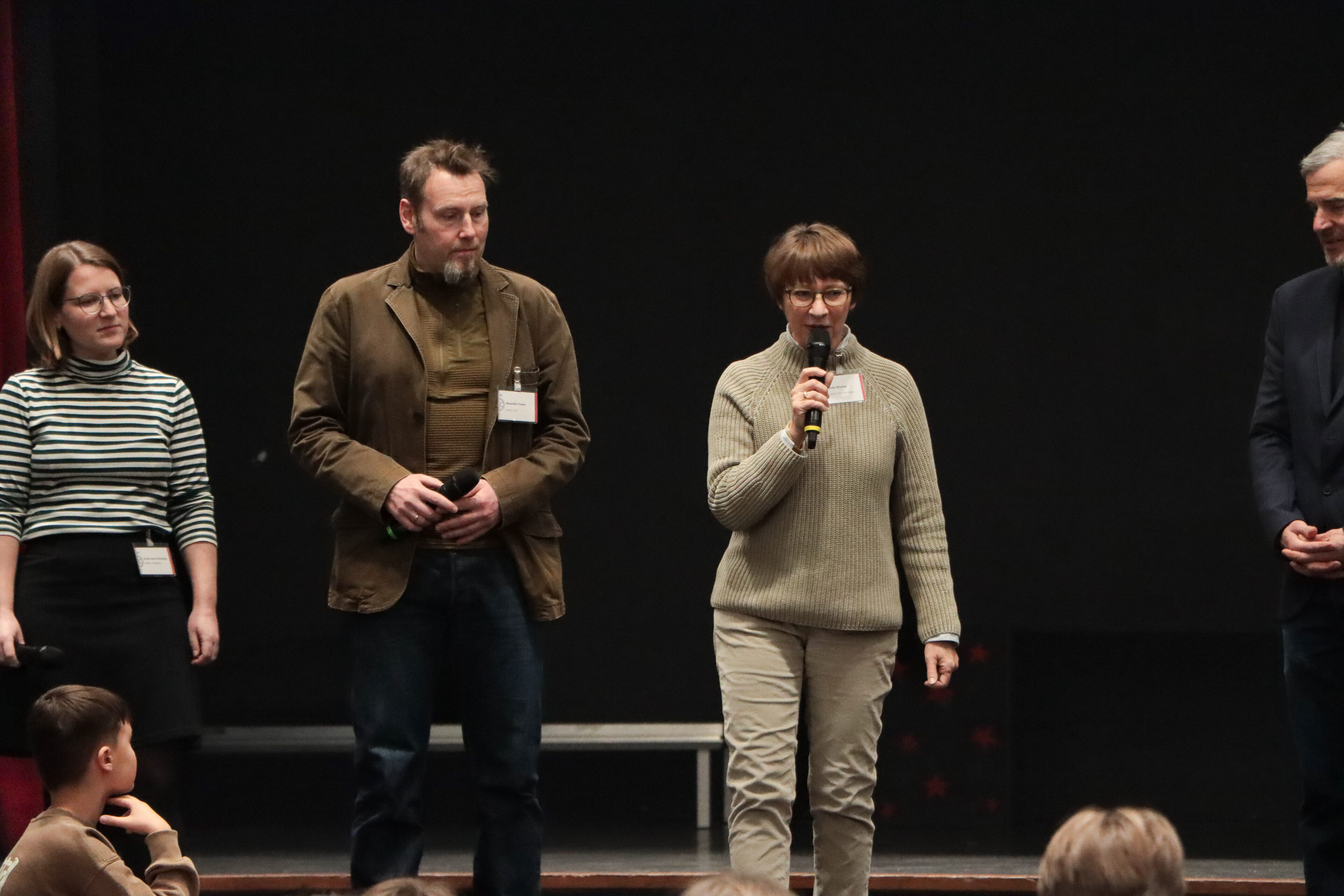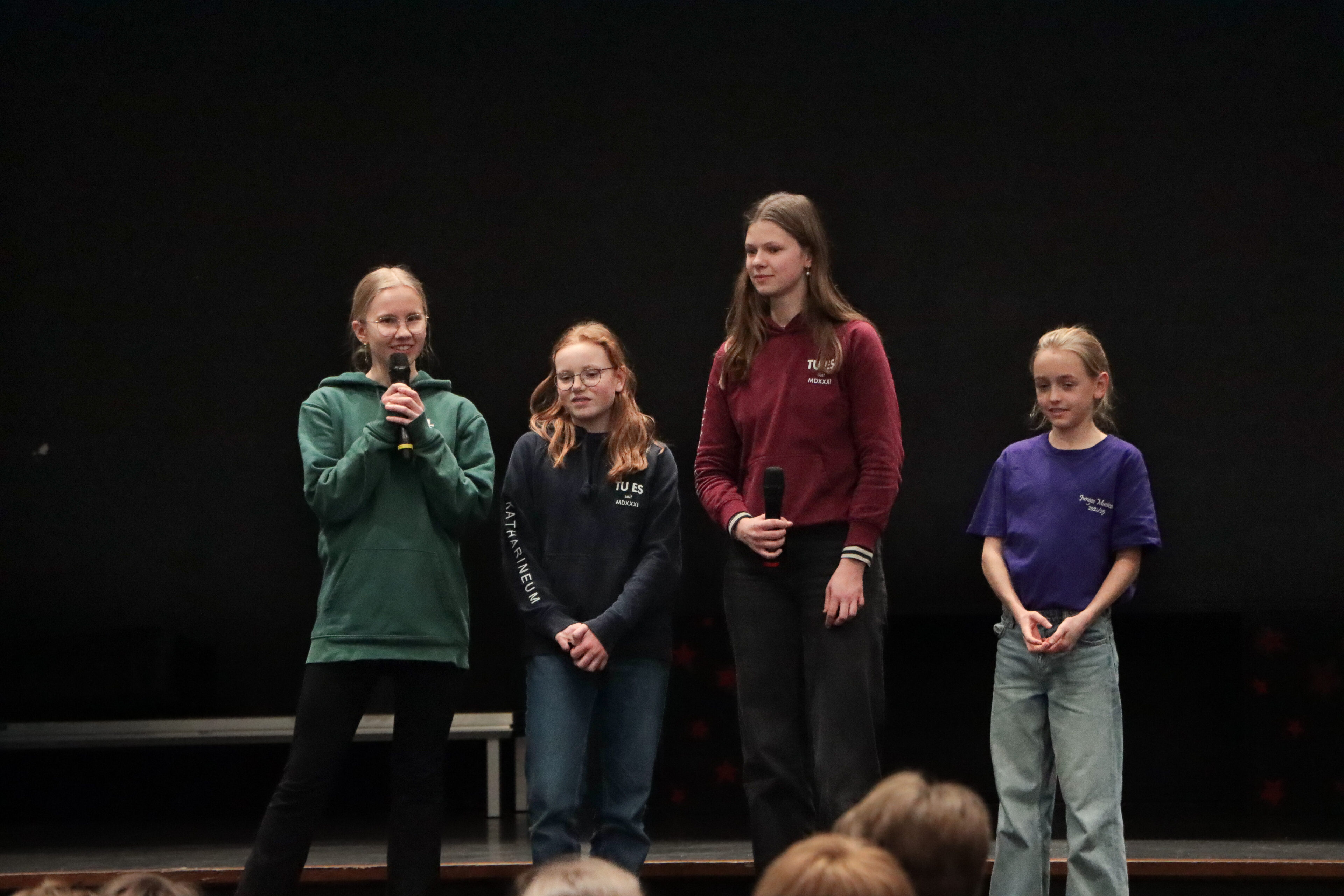 Einen besonders persönlichen Einblick in den Schulalltag gab anschließend die Schüler:innenvertretung. Mit ehrlichen Geschichten, Erfahrungen aus verschiedenen Jahrgängen und einem augenzwinkernden Hogwarts-Vergleich beschrieben die SV-Mitglieder Lovisa Christiansen (Schüler:innensprecherin), Suvi Brügge, Isabella Keck (Unterstufensprecherin), Luise Eggert (Mittelstufensprecherin) und Joud Nser Edin, dass die Schule anfangs vielleicht groß und etwas verwirrend wirkt, man sich aber schnell zurechtfindet und Anschluss findet.
