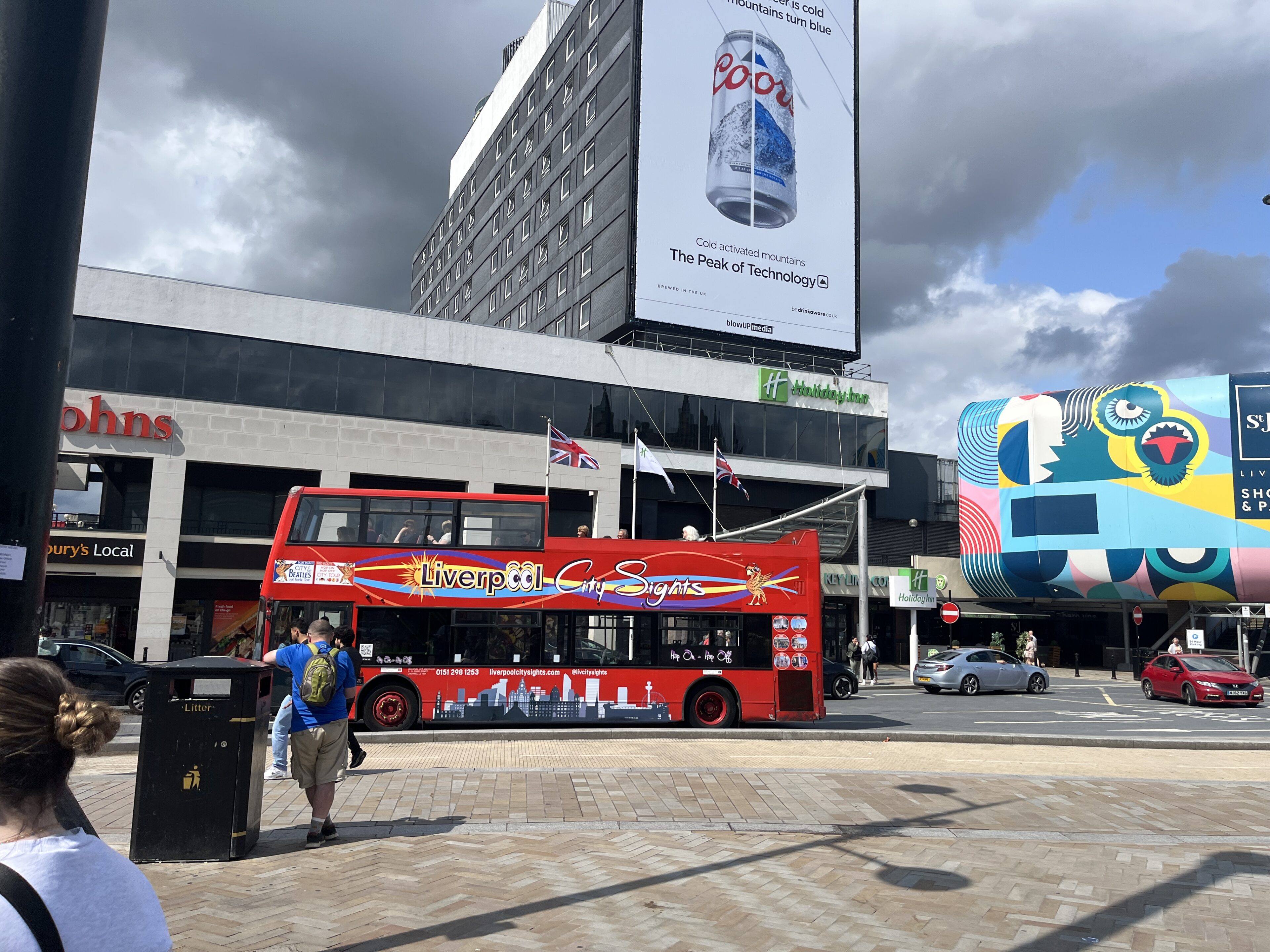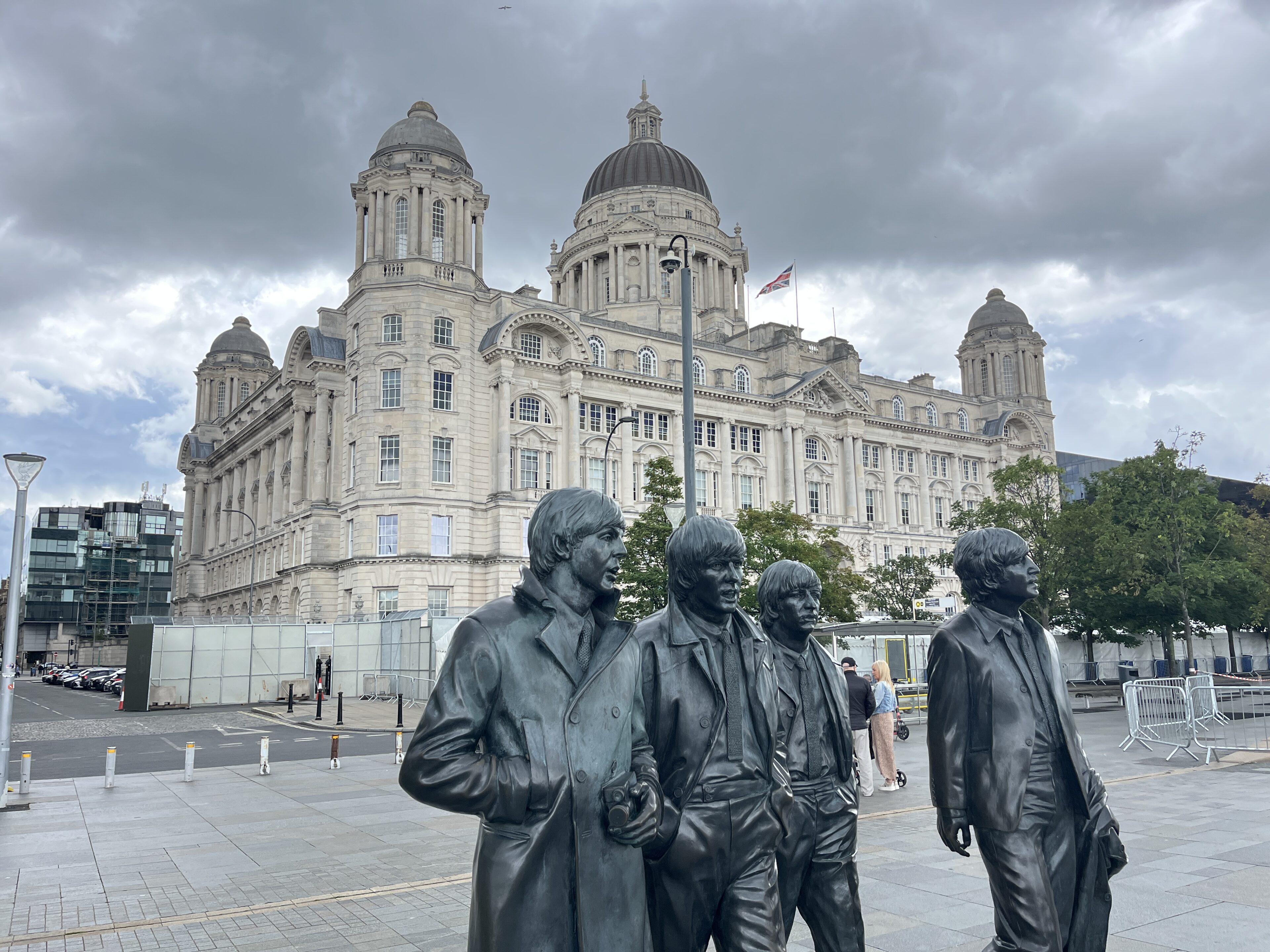 Ein weiteres Ziel führte uns nach Liverpool. Kaum angekommen, wurde das obligatorische Foto mit den Beatles-Statuen geschossen. Danach stiegen wir in einen offenen Doppeldeckerbus, der uns an Penny Lane, Chinatown, der Bibliothek, dem Theater und am Hafen vorbeibrachte. Anschließend blieb viel Zeit zur freien Gestaltung: Museen, Shopping oder einfach ein Spaziergang am Wasser. Zurück in Manchester klang der Abend bei einer Schülerin aus England mit Hummus, Chips und Musik im Park aus.