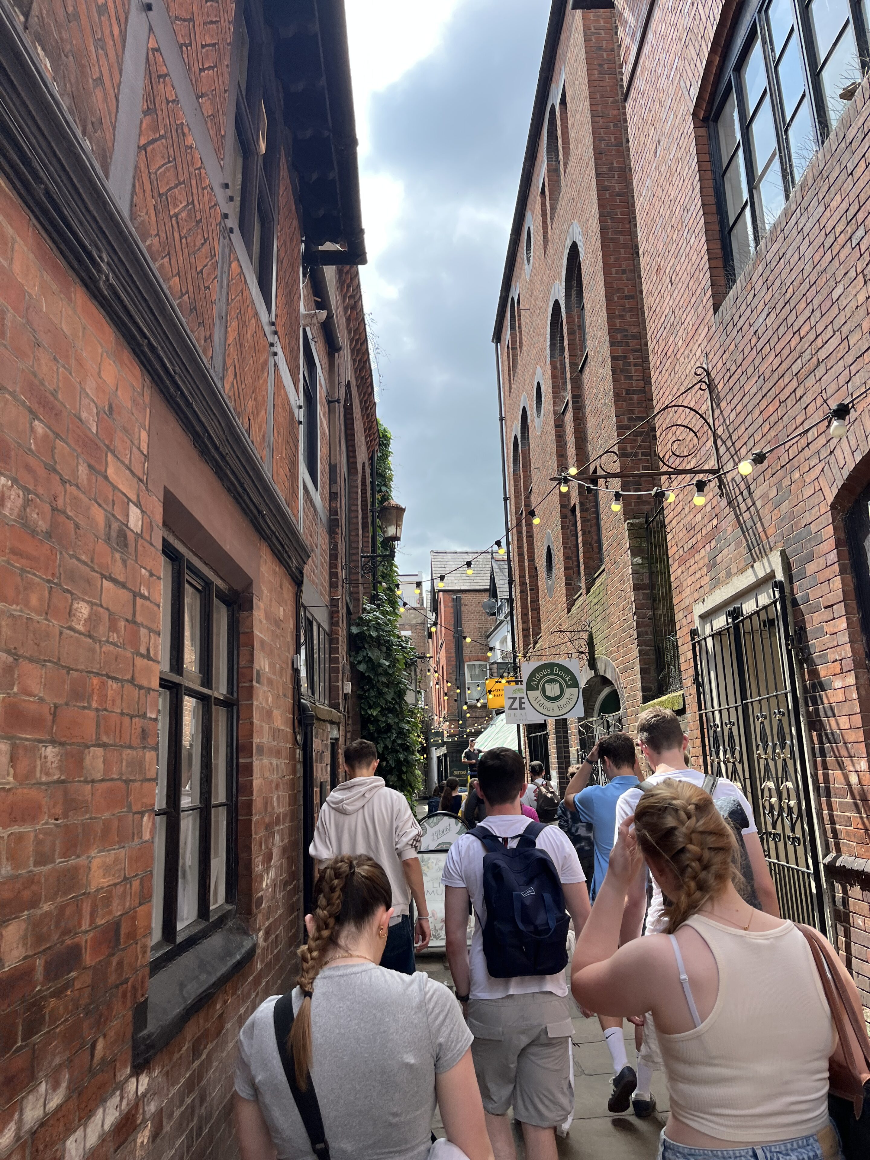 Historisch wurde es in Chester, einer Stadt voller römischer und mittelalterlicher Spuren. Eine Führung brachte uns zu Rathaus, Kathedralen, Arena und den berühmten Stadtmauern. Besonders charmant waren die schwarz-weißen Fachwerkhäuser, die der Stadt ein ganz eigenes Flair verleihen. In einer Foto-Challenge stellten wir anschließend historische Aufnahmen nach, eine kreative Möglichkeit, Geschichte mit Spaß zu verbinden.