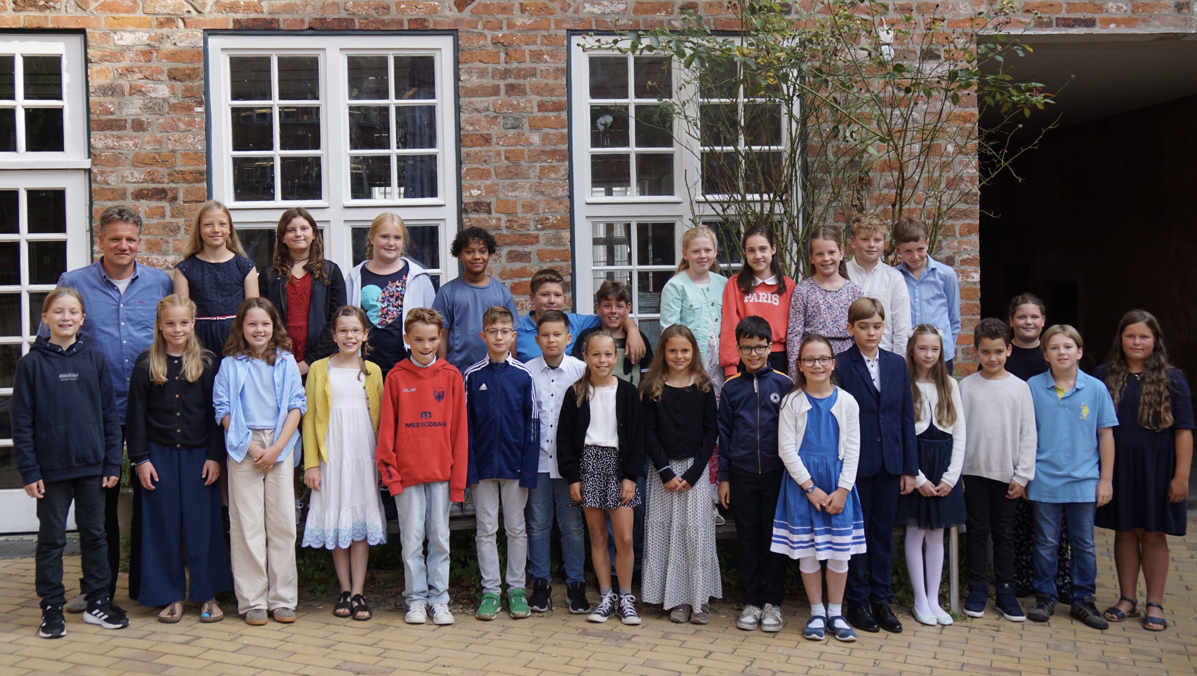 Im Anschluss sprach Herr Schrader, unser Unterstufenleiter, zu den neuen Sextaner:innen, ihren Familien und Freund:innen. Mit herzlichen Worten hieß auch er sie willkommen und bestätigte ihnen: „Mit dem Katharineum habt ihr die richtige Wahl getroffen.“. In seiner Rede verglich er die kommende Schulzeit mit einem „Staffelmarathonlauf“. Dieser sei manchmal anstrengend und verlange Ausdauer, doch dank eines starken „Trainerteams“ – den engagierten Klassenlehrerteams – sei niemand allein unterwegs. Für die 5a werden Herr Scheel und Frau Dreiling da sein, für die 5b Frau Ritter und Herr Winands, für die 5c Frau Fox und Herr Kaffka, für die 5d Herr Bendixen und Frau Hoffmann sowie für die 5e Herr Welge und Frau Bünger. Am Ende erinnerte Herr Schrader daran, dass jede:r erfolgreiche Sportler:in auch Fans braucht – und diese seien Eltern, Familie und Freund:innen, die die Sextaner:innen auf ihrem Weg begleiten.