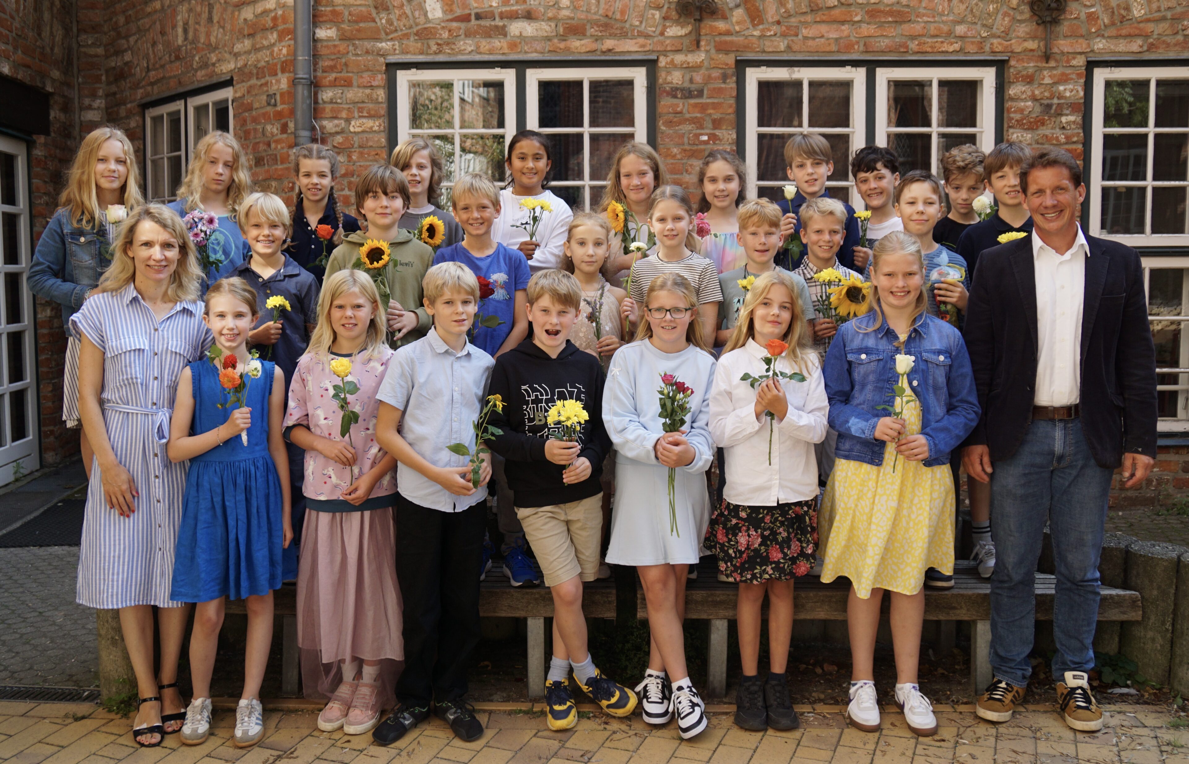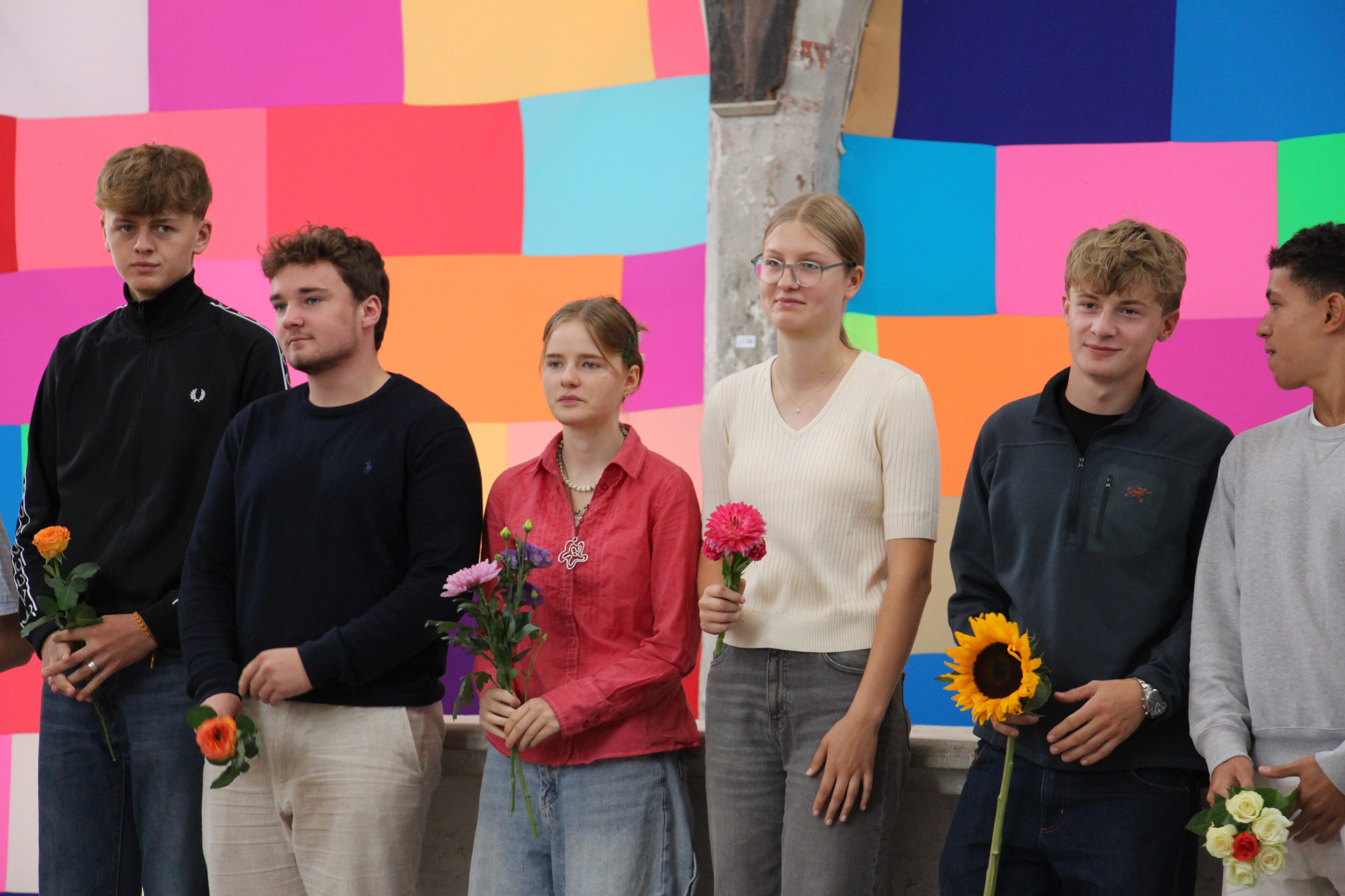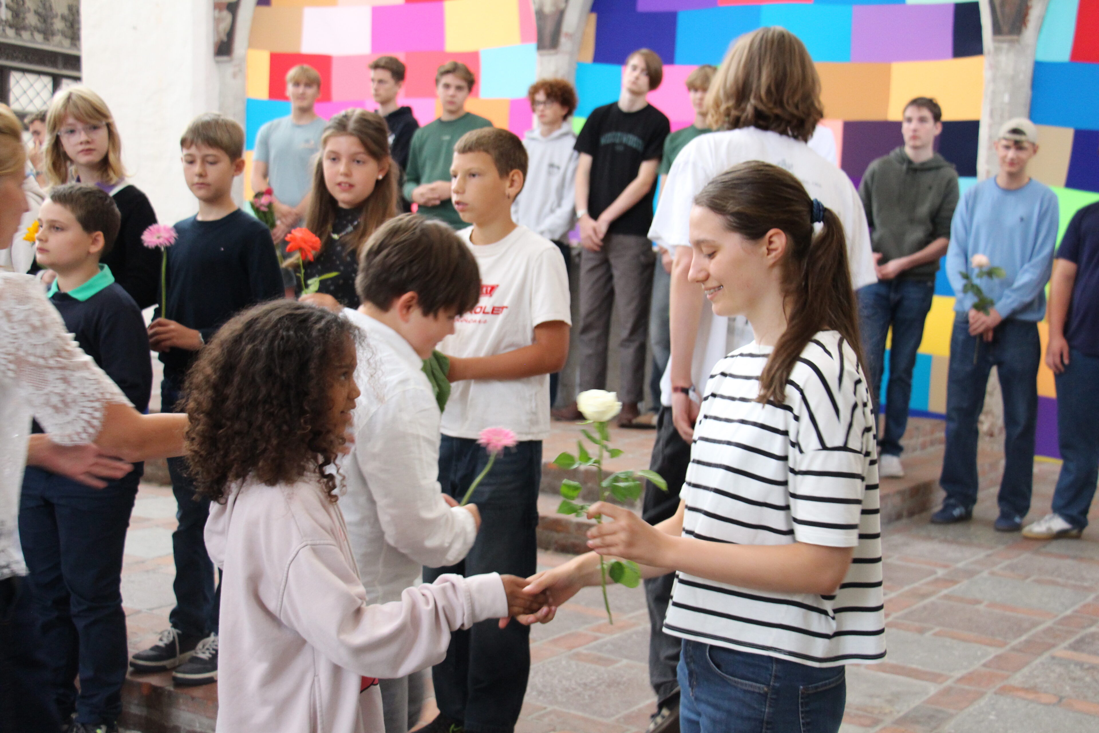 Ein besonders schöner Moment der Feier war die traditionelle Blumenübergabe: Seit vielen Jahren überreichen die ältesten Schüler:innen des Katharineums den jüngsten eine Blume als Zeichen des Willkommens und als symbolischen Staffelstab für den bevorstehenden „Marathonlauf“.