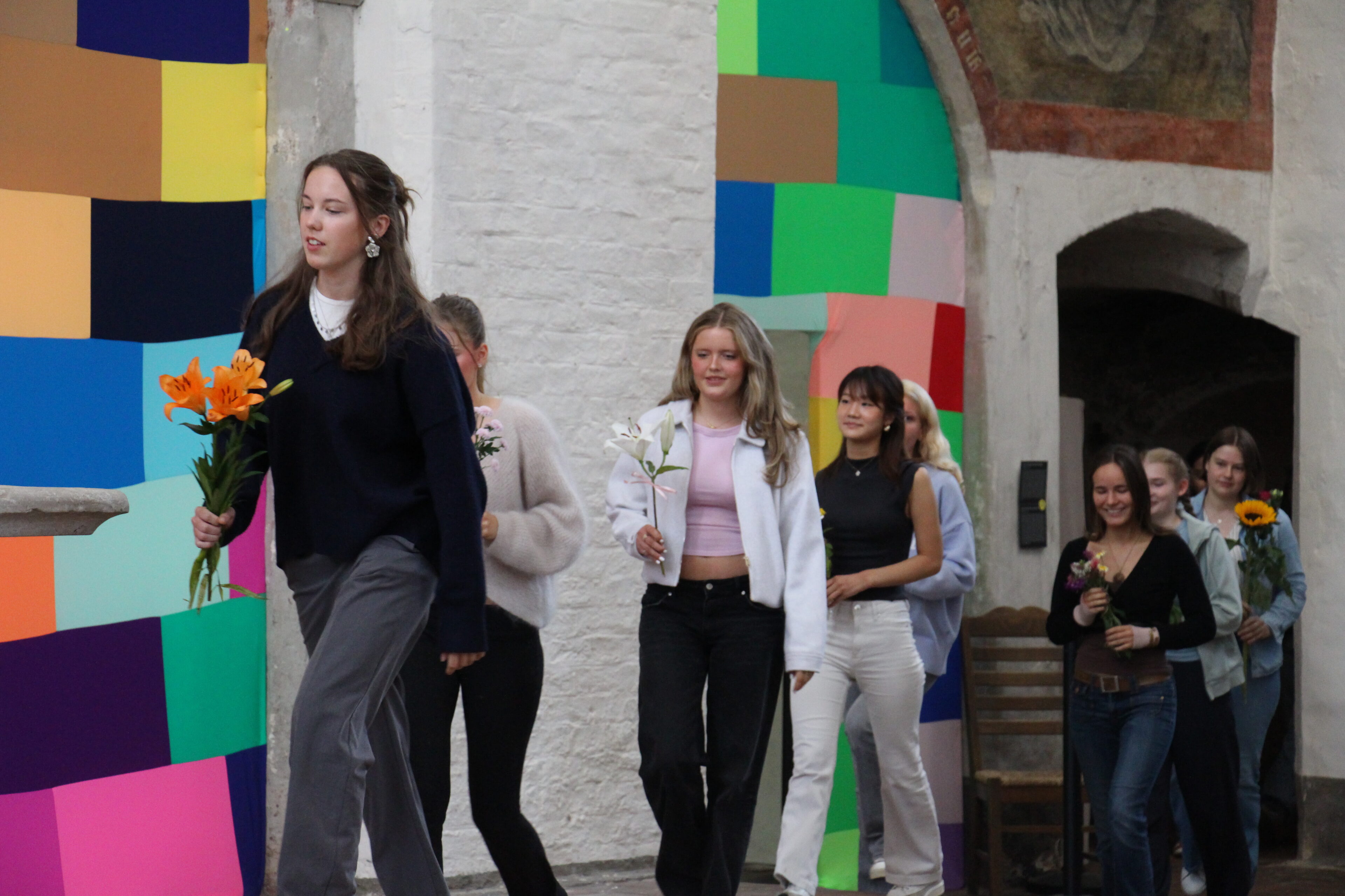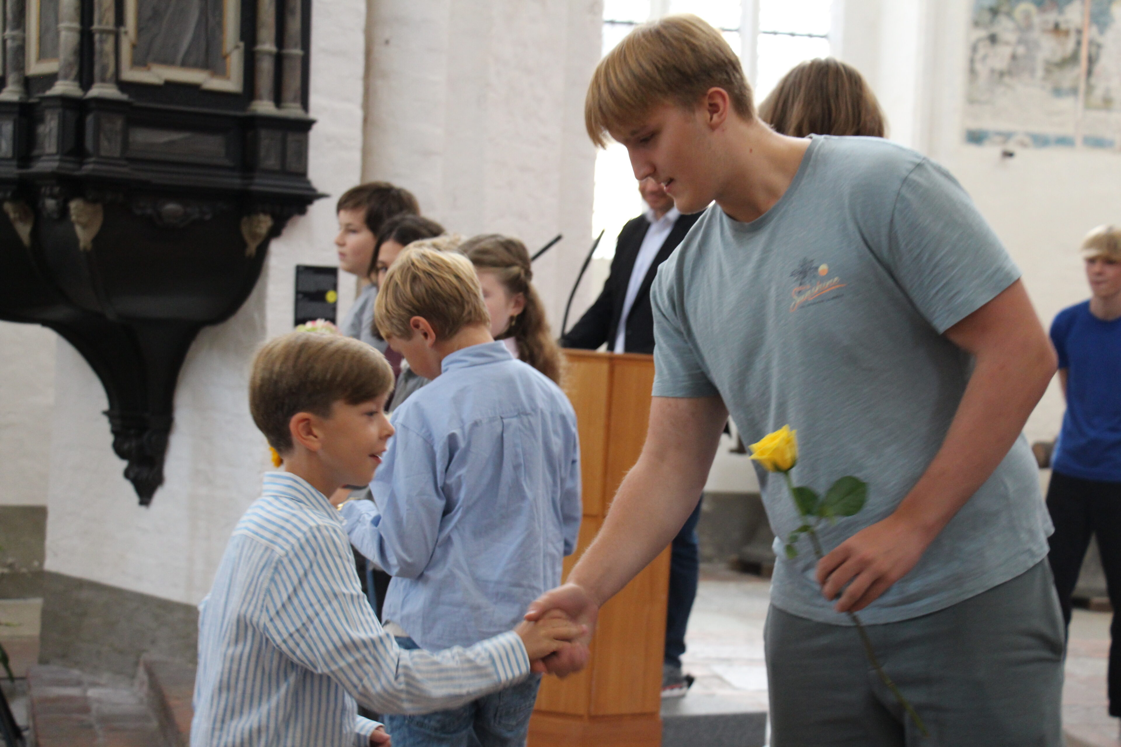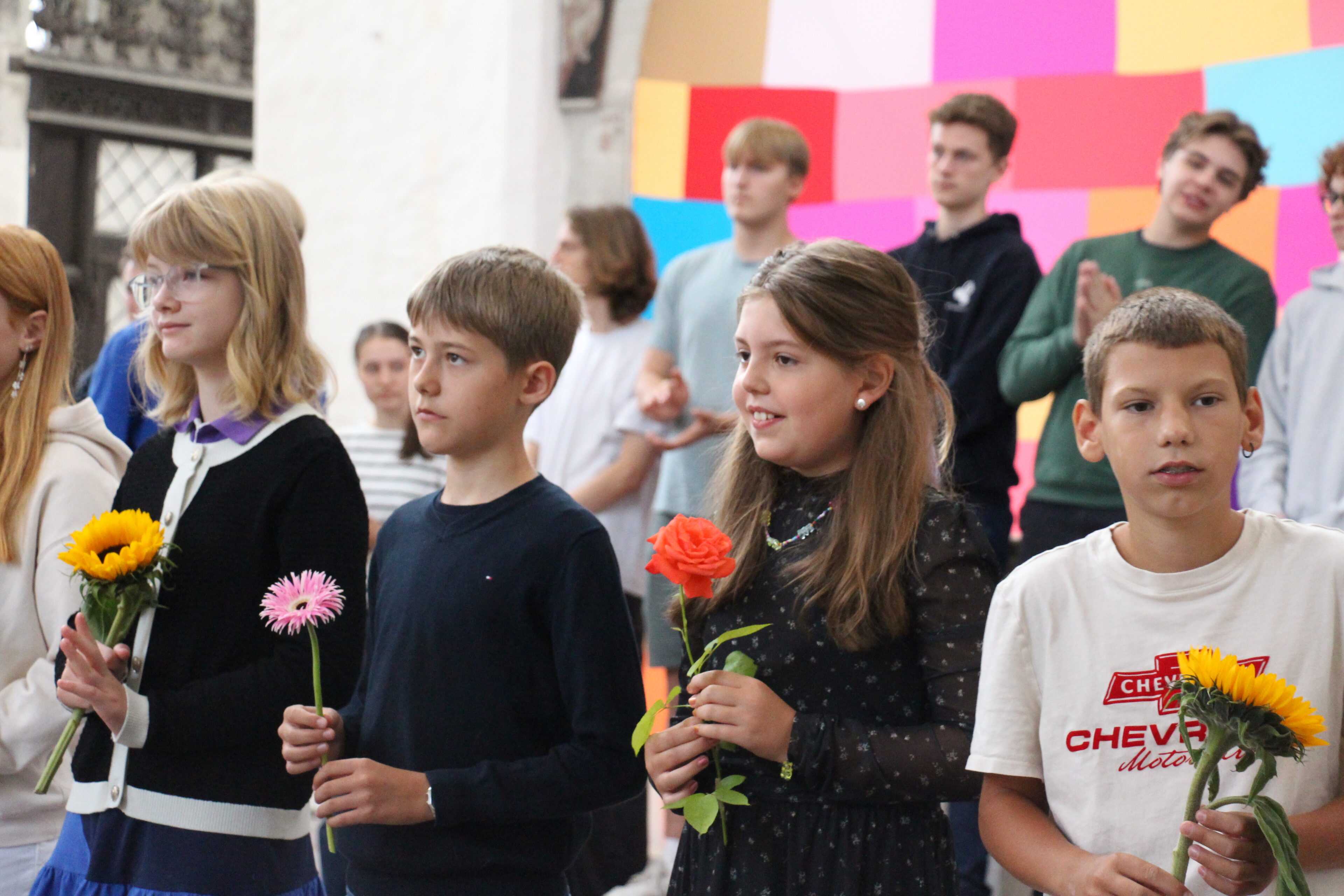 Ein besonders schöner Moment der Feier war die traditionelle Blumenübergabe: Seit vielen Jahren überreichen die ältesten Schüler:innen des Katharineums den jüngsten eine Blume als Zeichen des Willkommens und als symbolischen Staffelstab für den bevorstehenden „Marathonlauf“.