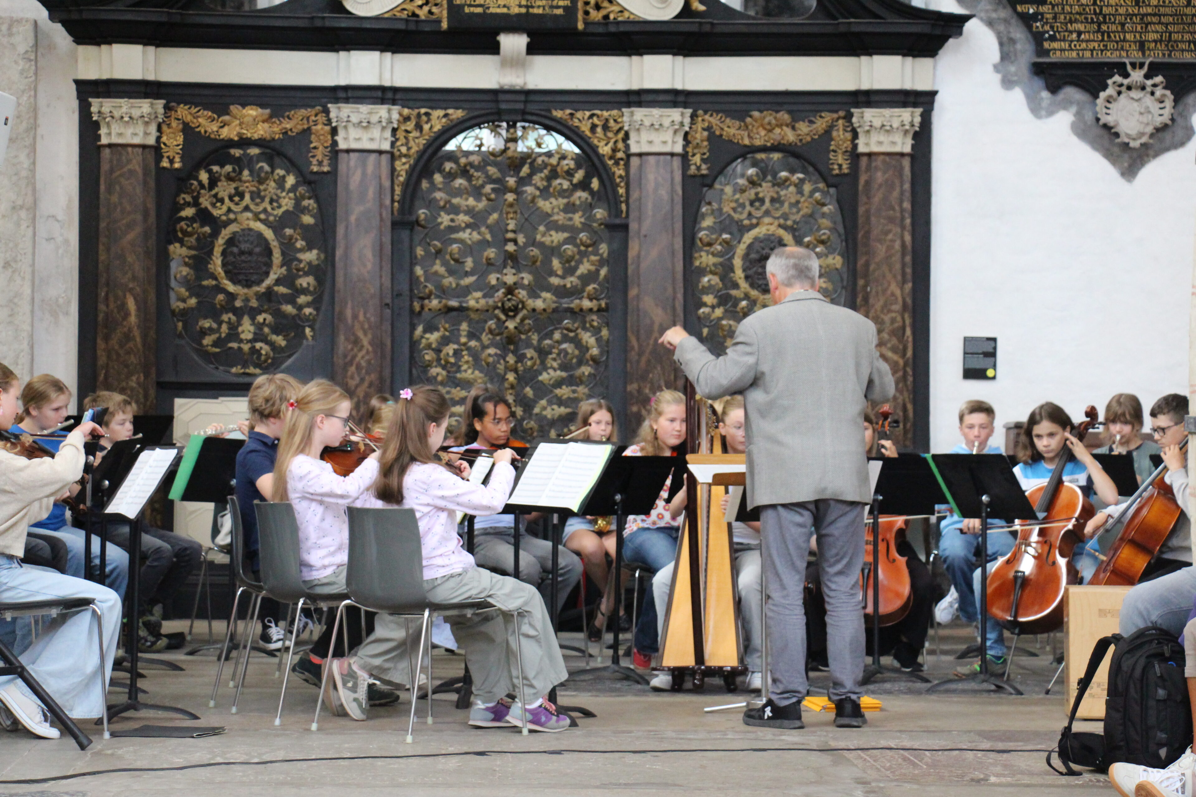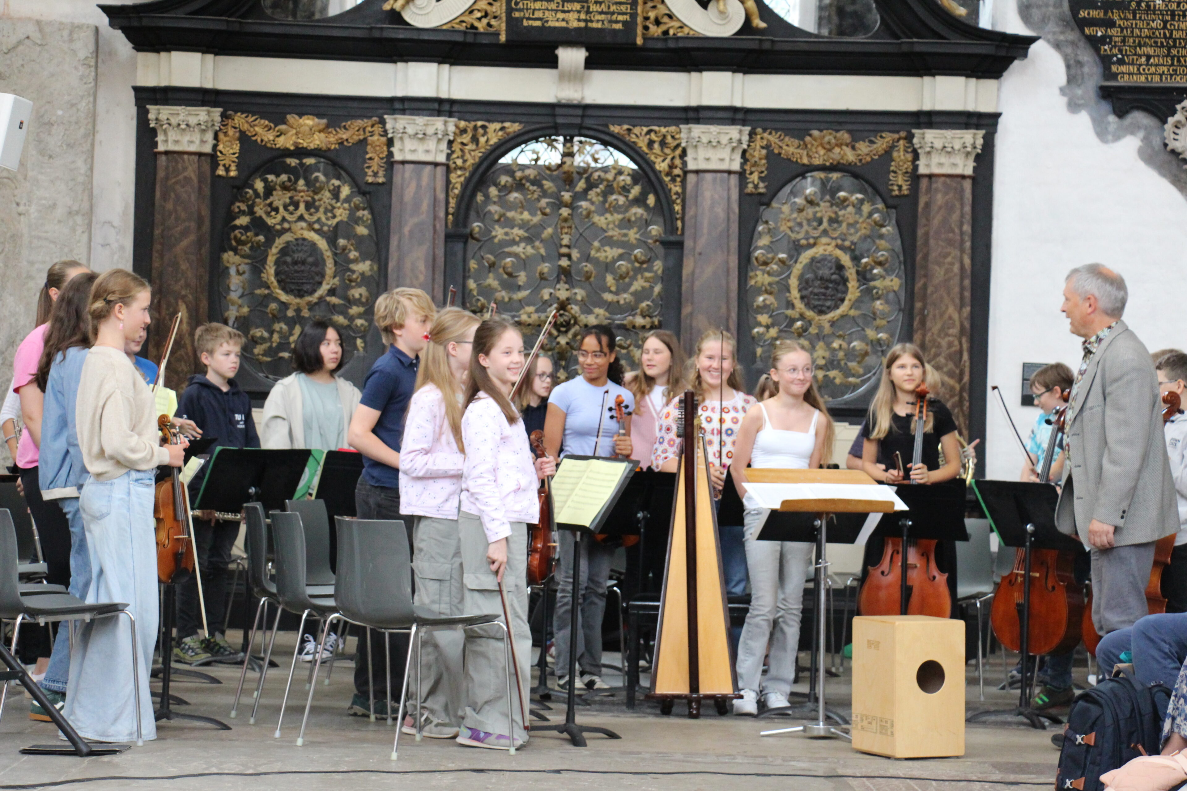 In seiner Rede betonte Herr Philippi, dass die Schulgemeinschaft ein Netz bildet, das trägt und auffängt. Gleichzeitig lud er die Sextaner:innen ein, mutig zu sein, offen aufeinander zuzugehen und die vielen Angebote, die unsere Schule bereithält, neugierig auszuprobieren. Besonders hob er das Juniororchester hervor, das während der Feier musikalisch zeigte, wie viel unsere Schüler:innen schon in den ersten Jahren lernen und gestalten können. Vor wenigen Jahren noch saßen auch sie selbst aufgeregt auf den Bänken und warten auf ihre Einschulung – nun gaben sie ihren neuen Mitschüler:innen ein beeindruckendes Beispiel dafür, welche Möglichkeiten das Katharineum eröffnet.